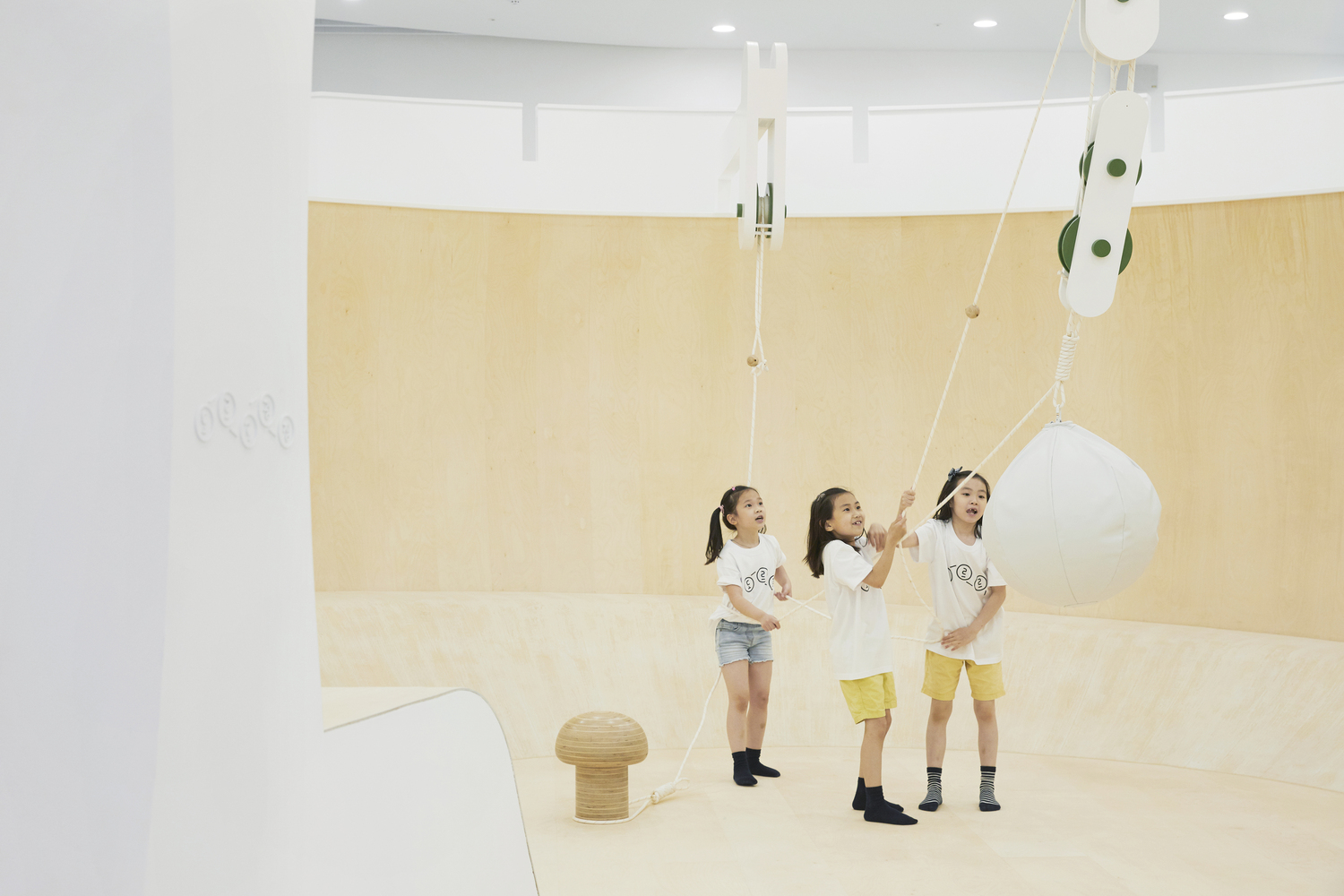 The motif of Geojunggi wanted to show children who were faithful to the natural process of play rather than educational stories through Dorre. To this end, the overall spatial color is also made of white and wood. It's not space, it's for children to be the subject.