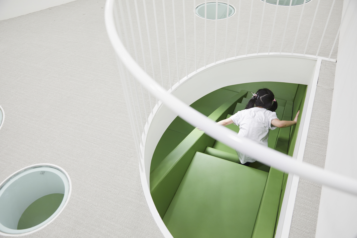 This is because they believe that children can make their own paths as much as they want, and in the end, great spirit of challenge. Inside the wall, there is a circular slide that induces natural flow. Tired of the slides that had to be ridden according to the rules, I wanted to give a positive side to active play.