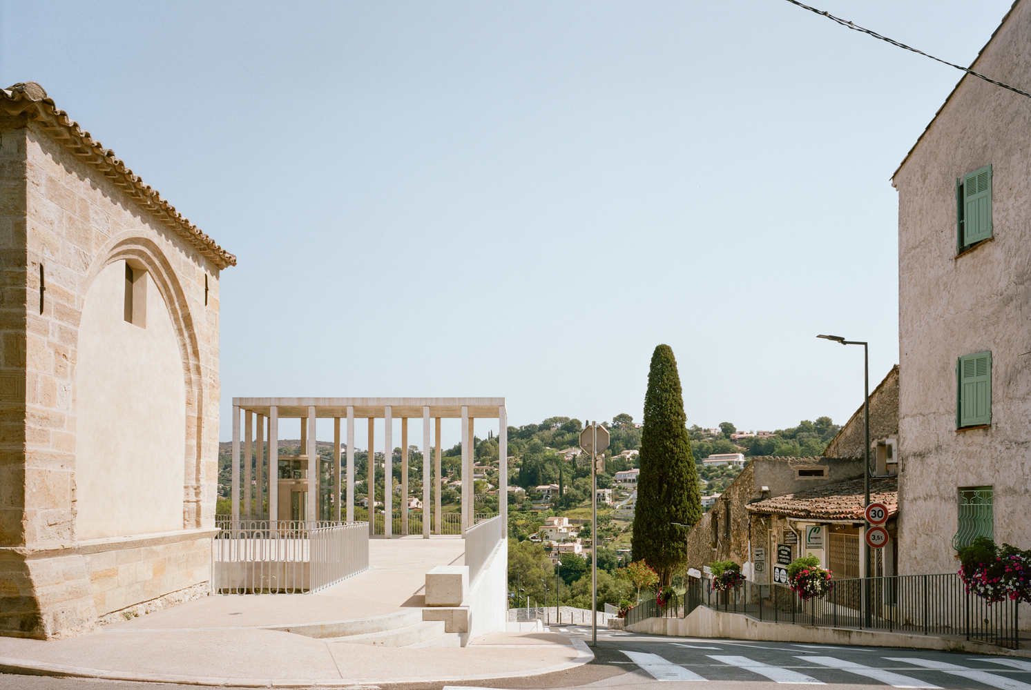 This continuity of ground will take the view towards the valleys, towards the great landscape. This belvedere will find at its end an elevator visible as a campanile, a unique emergence on the square with the chapel, which will allow the level of the historic center to be linked with the level of the Bâchettes car park.