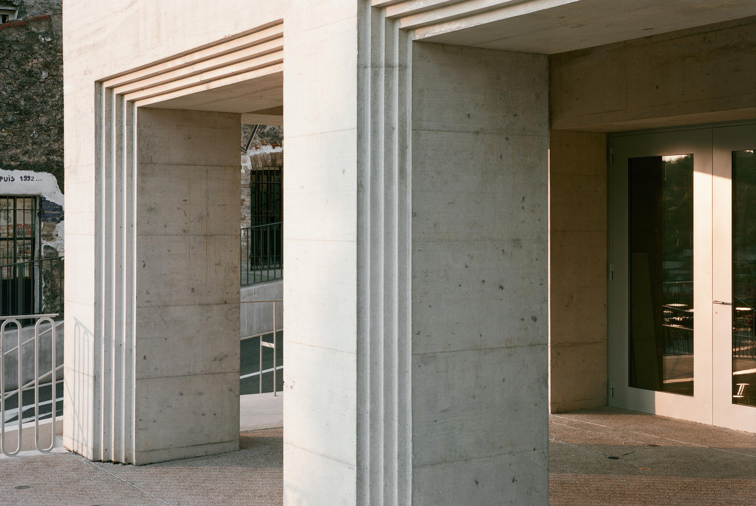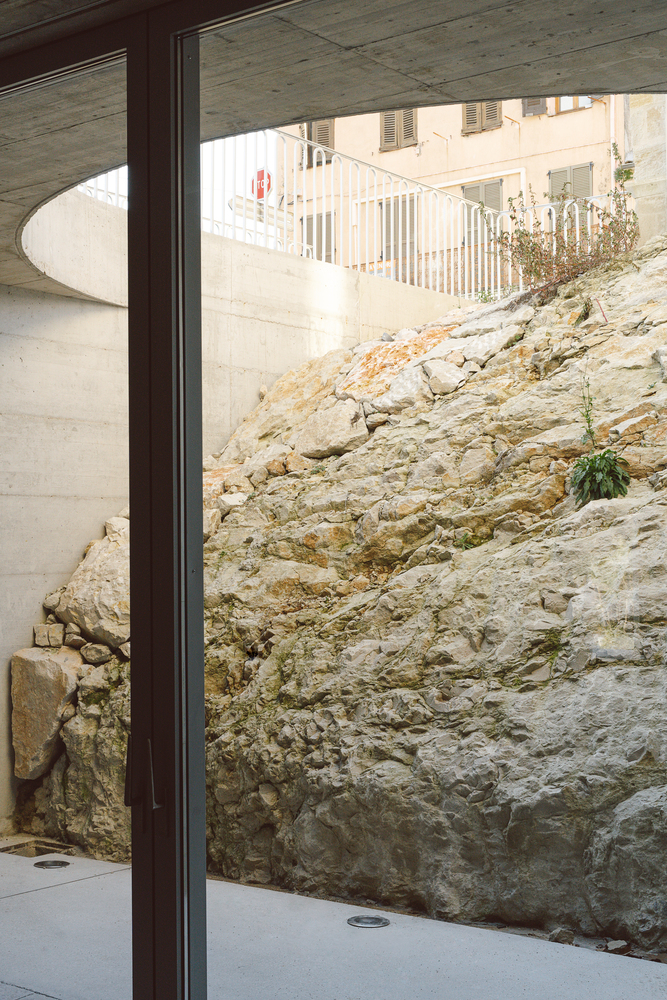 The extension develops below the level of the public square. The roof constitutes a new floor in the continuity of the public square. It highlights, in perspective, the Saint-Roch chapel as a link and historical heritage.