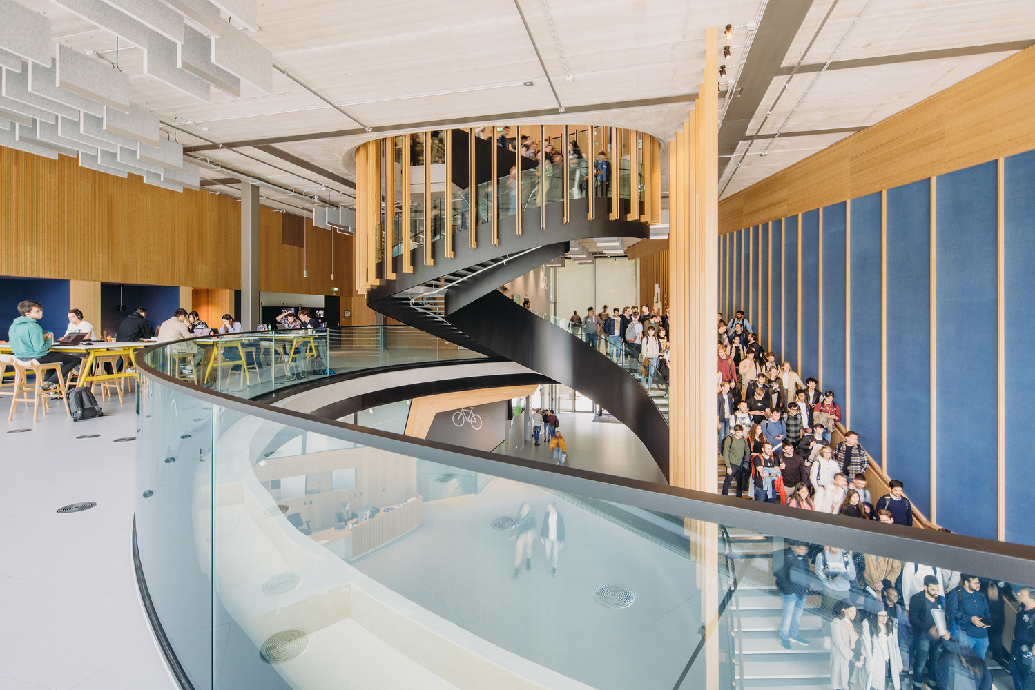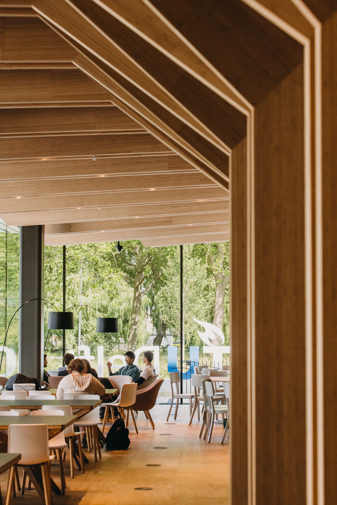 A healthy campus building for people and the planet. 1200 solar panels, smart installations, good insulation, and a heat and cold storage system ensure that Echo will be able to provide more energy than it requires for its daily operations. This includes user-related energy, such as electricity consumption for laptops, lighting, and catering. 90% of the furniture used in the building has also been reused.