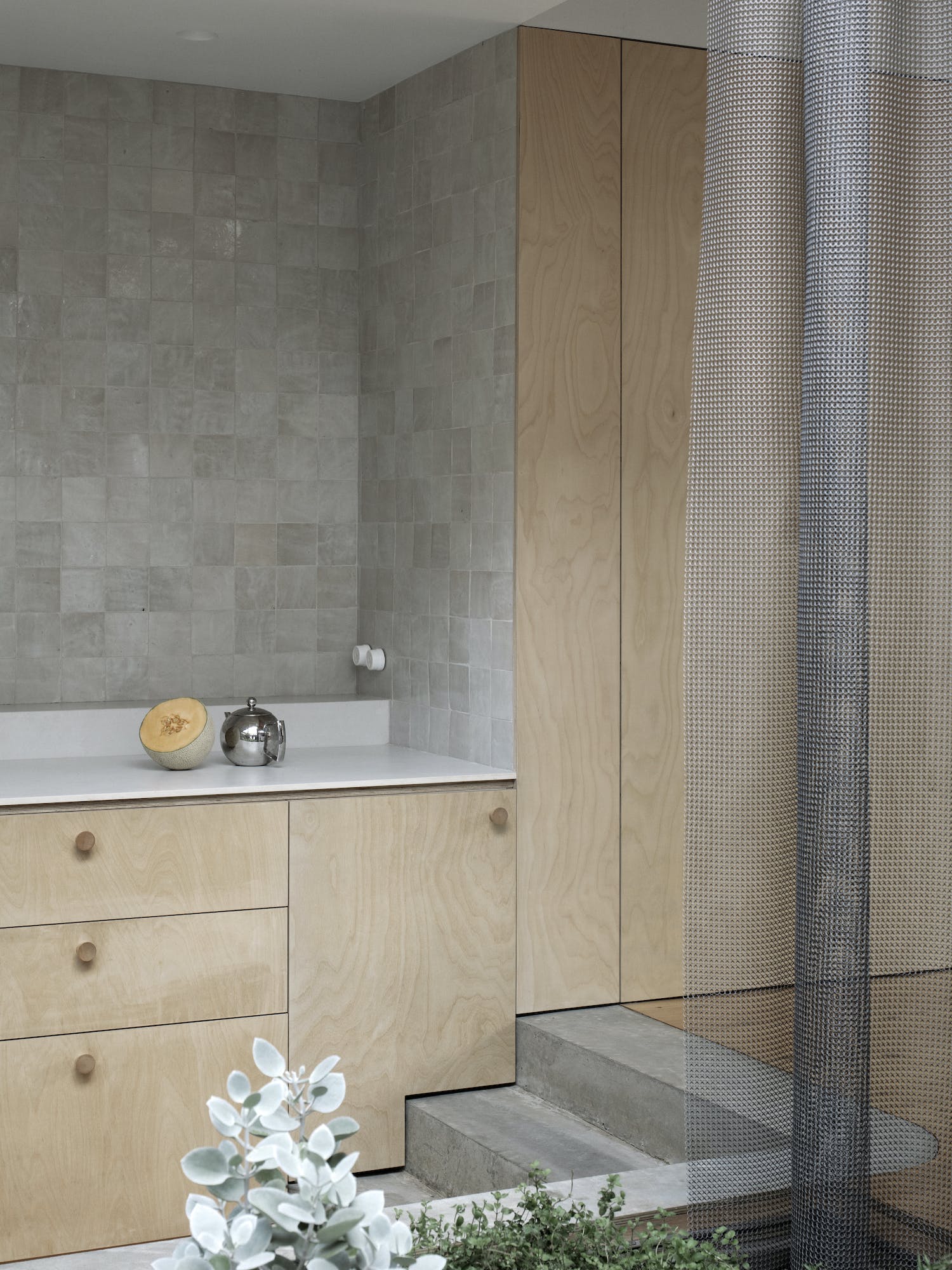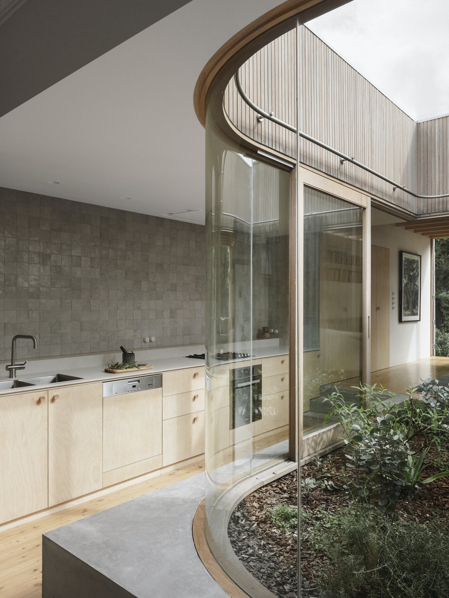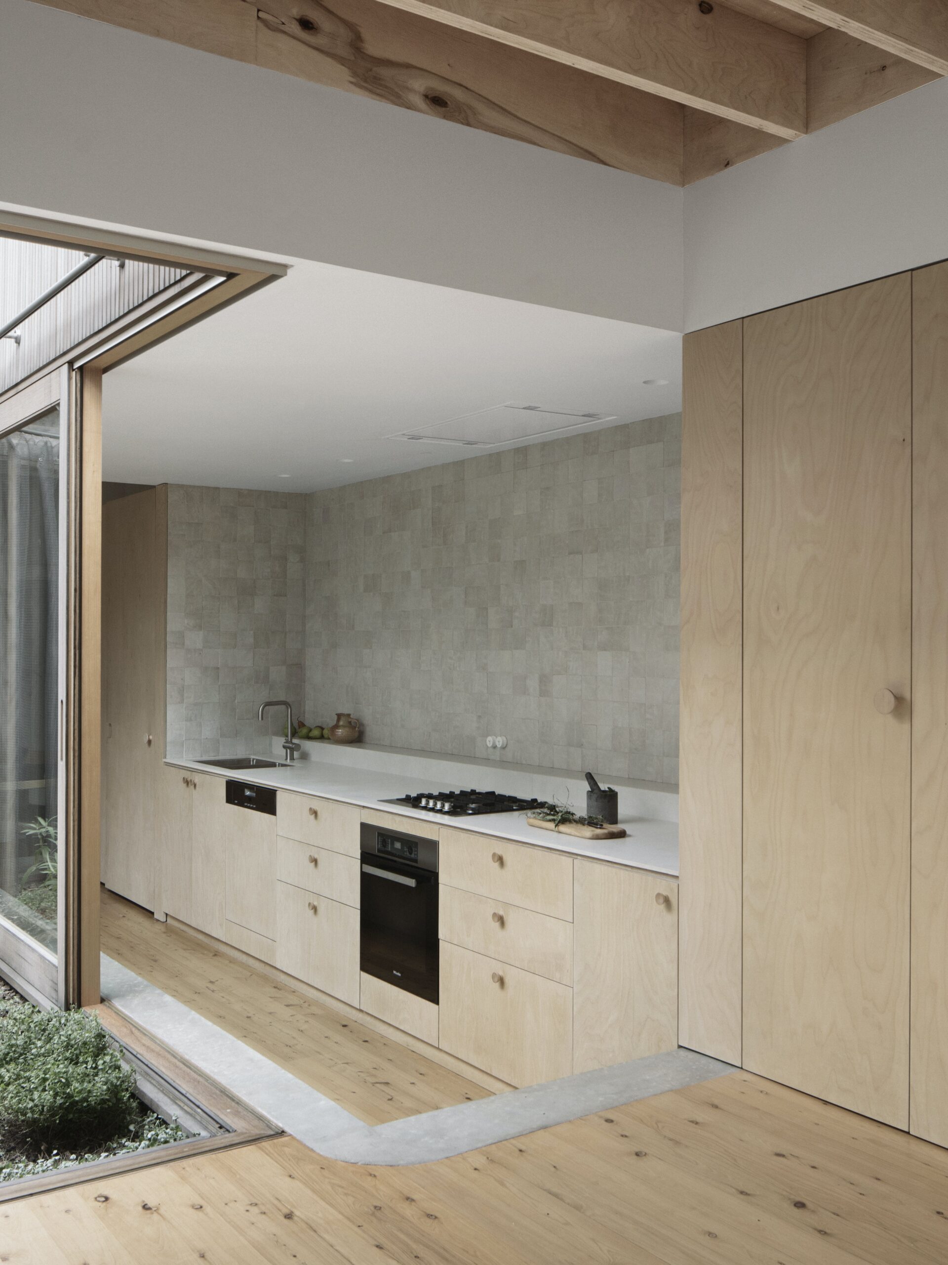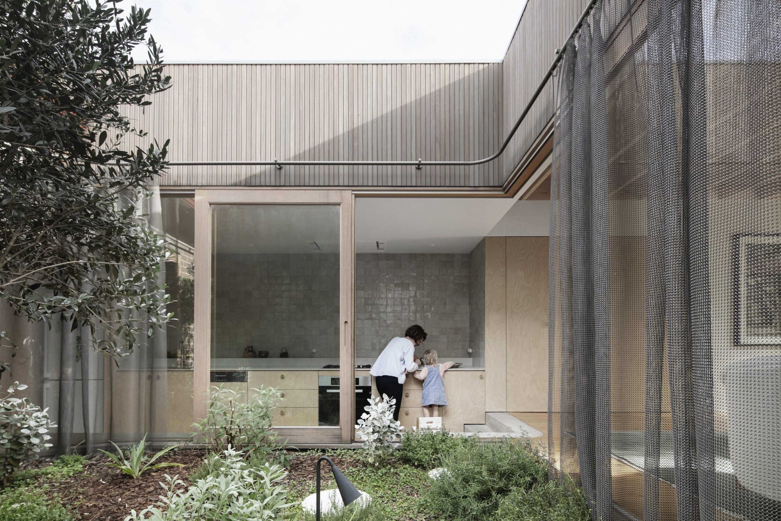 House for a Garden is a minimal home located in Lilyfield, Australia, designed by Retallack Thompson. With a brief to provide a home to create a Garden, House for a Garden removes the rear of a Federation era semi detached bungalow and provides a new courtyard around which the new living areas are oriented. The project takes the approach of providing less house, more garden. Each room is provided with a connection to a garden of varying character; Australian native bird watching garden to the front, a productive garden to the courtyard adjacent to the kitchen and shaped paving and lawn for entertaining at the rear. The actual internal floorspace was only marginally increased with the design focusing on the rearrangement of rooms rather than the provision of additional “area”. Spatially, the requirements were simple; a place to sleep, to cook, to eat, to read and listen to music.