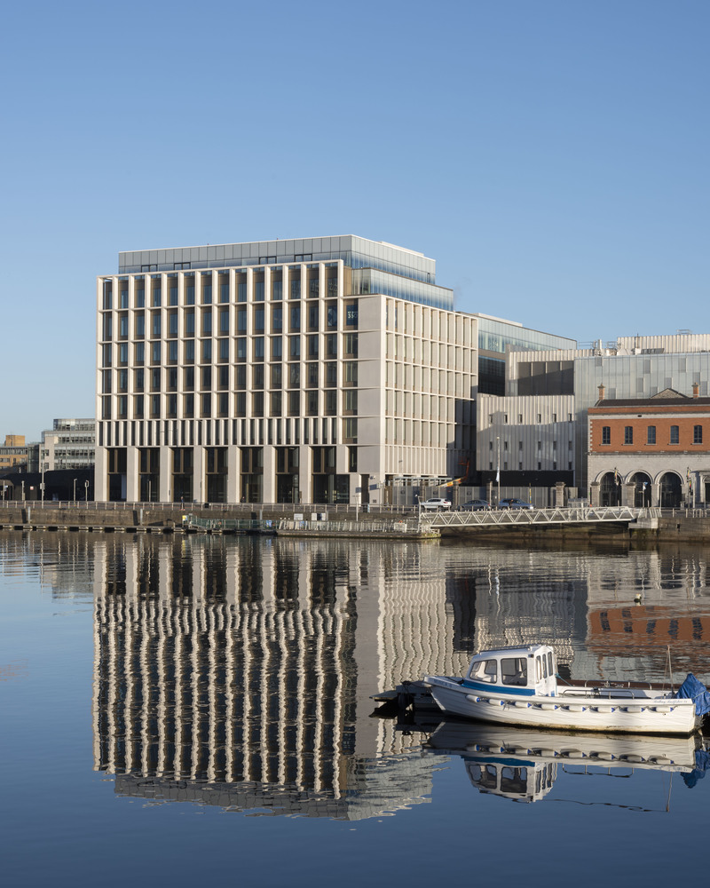 Facing onto the Liffey and adjacent to the East Link bridge, the primary arterial route connecting Northside to South, the project looks to provide a singular, monolithic architectural form in the tradition of great European riverfront buildings as a contrast to the more ephemeral developments ubiquitous in this part of the city. While fulfilling its brief to provide large column-free floor plates for the commercial office market the project offers a robust presence that embeds itself into the city.