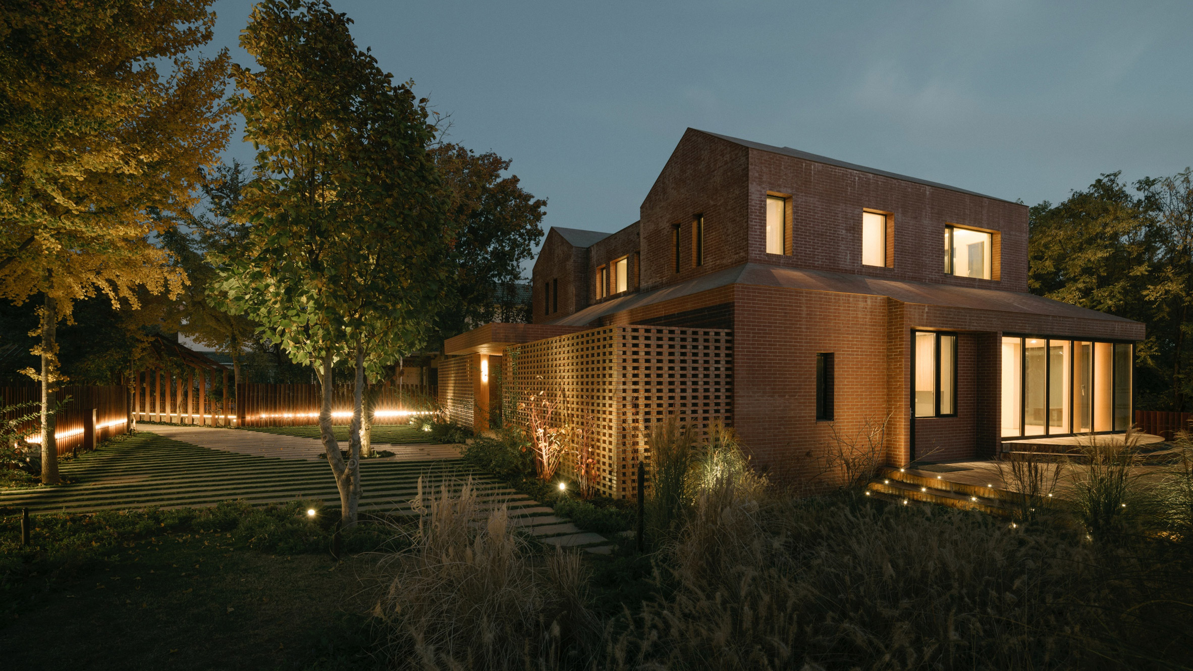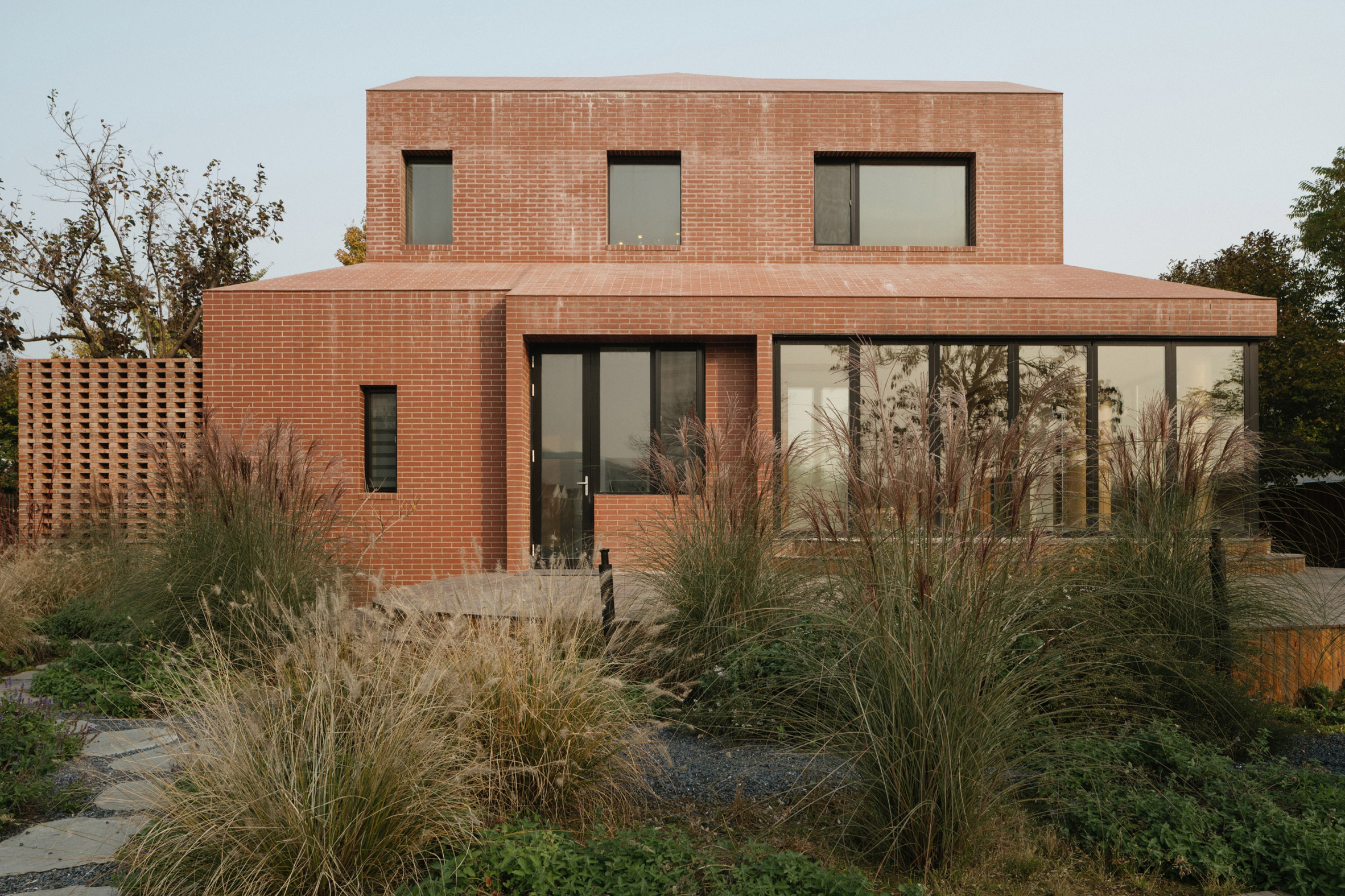 Japanese studio Kiki Archi has redesigned an existing home in Changping District, China, with pared back volumes clad in red brick and a landscaped garden.