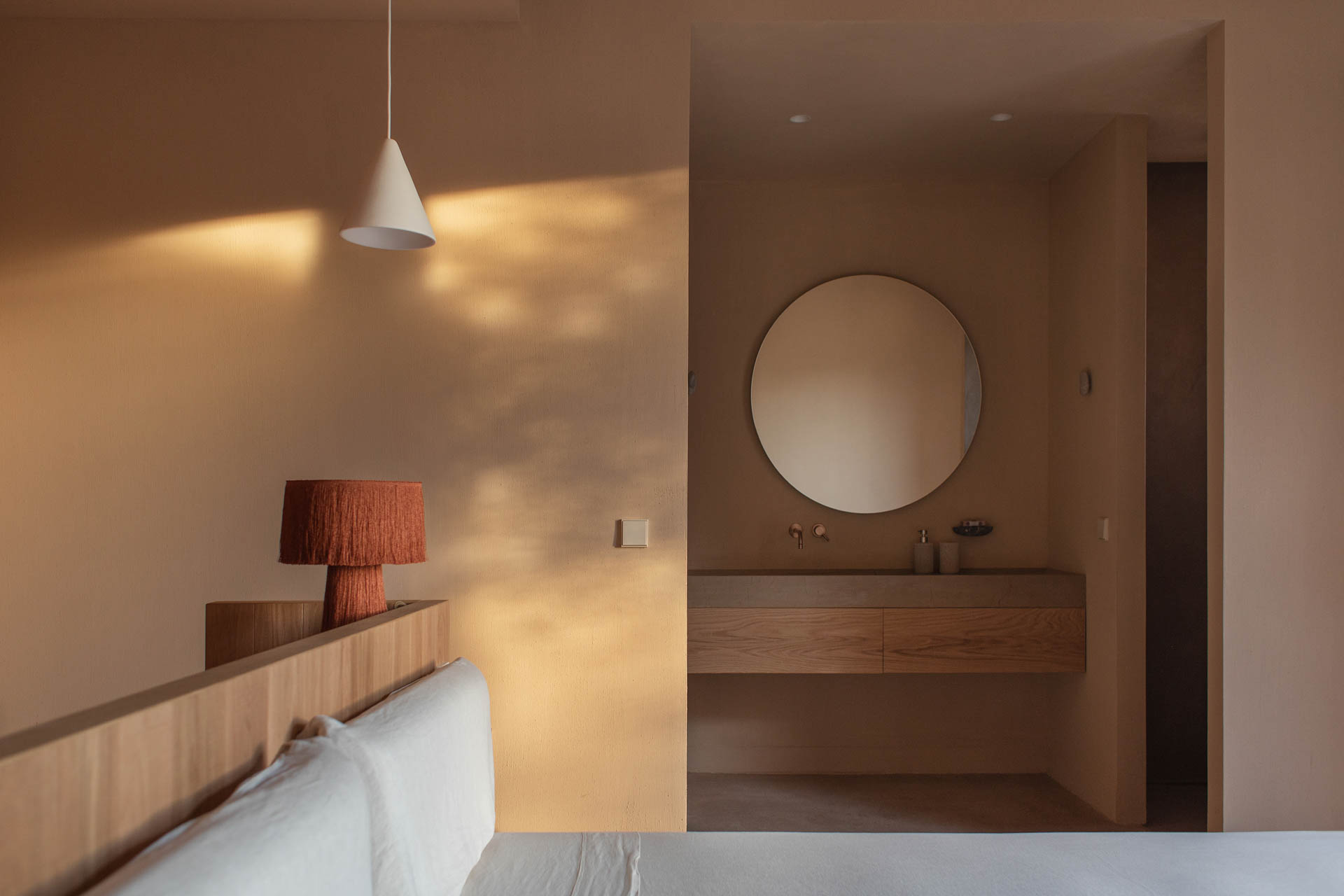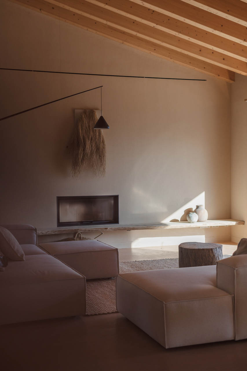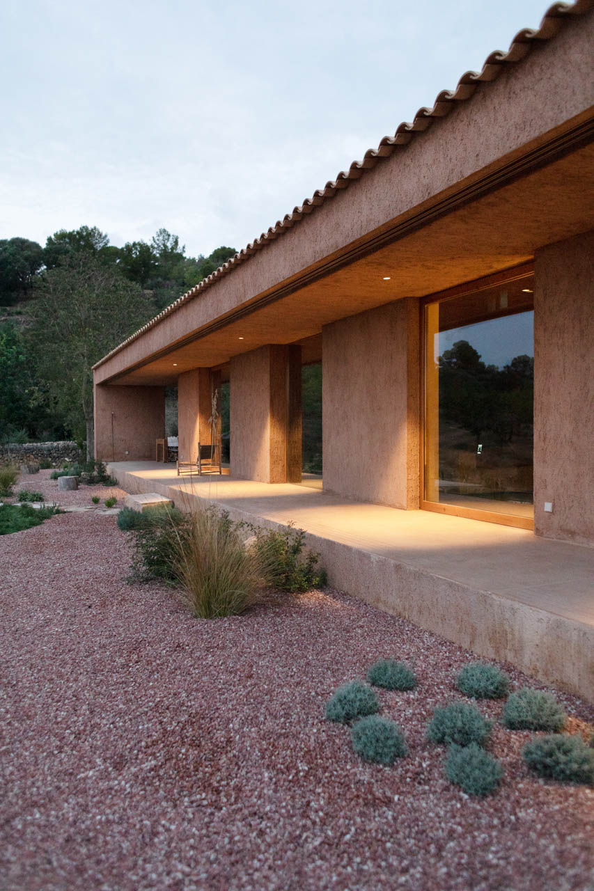 Ca S’Alou is a minimal residence located in Mallorca, Spain, designed by munarq. It is the name given to the blonde land on the island of Mallorca. It’s a clayey, reddish soil, often mixed with gravel. It is a house designed from the materiality, to use the earth of the excavation to make the facades but also the materials of the structure such as the terracotta blocks or the interior painting that is made of earth. A unique design was inspired by Mediterranean nostalgia and simple, minimalist aesthetics. Earthy tones, simple forms free from distraction foster relaxation and enhance the idyllic atmosphere of this magical rustic place. The two volumes are symmetrical and reminiscent of those old buildings typical of Mallorca called Sestadors used for animals, cows and sheep. The materials are noble only because they are natural, not processed. They calcify over time, are affected by lichens and the wood returns to the color it really is. The approach to architecture traditional and knowledge of the place moves from the picturesque to the local, understood as affordable and known.