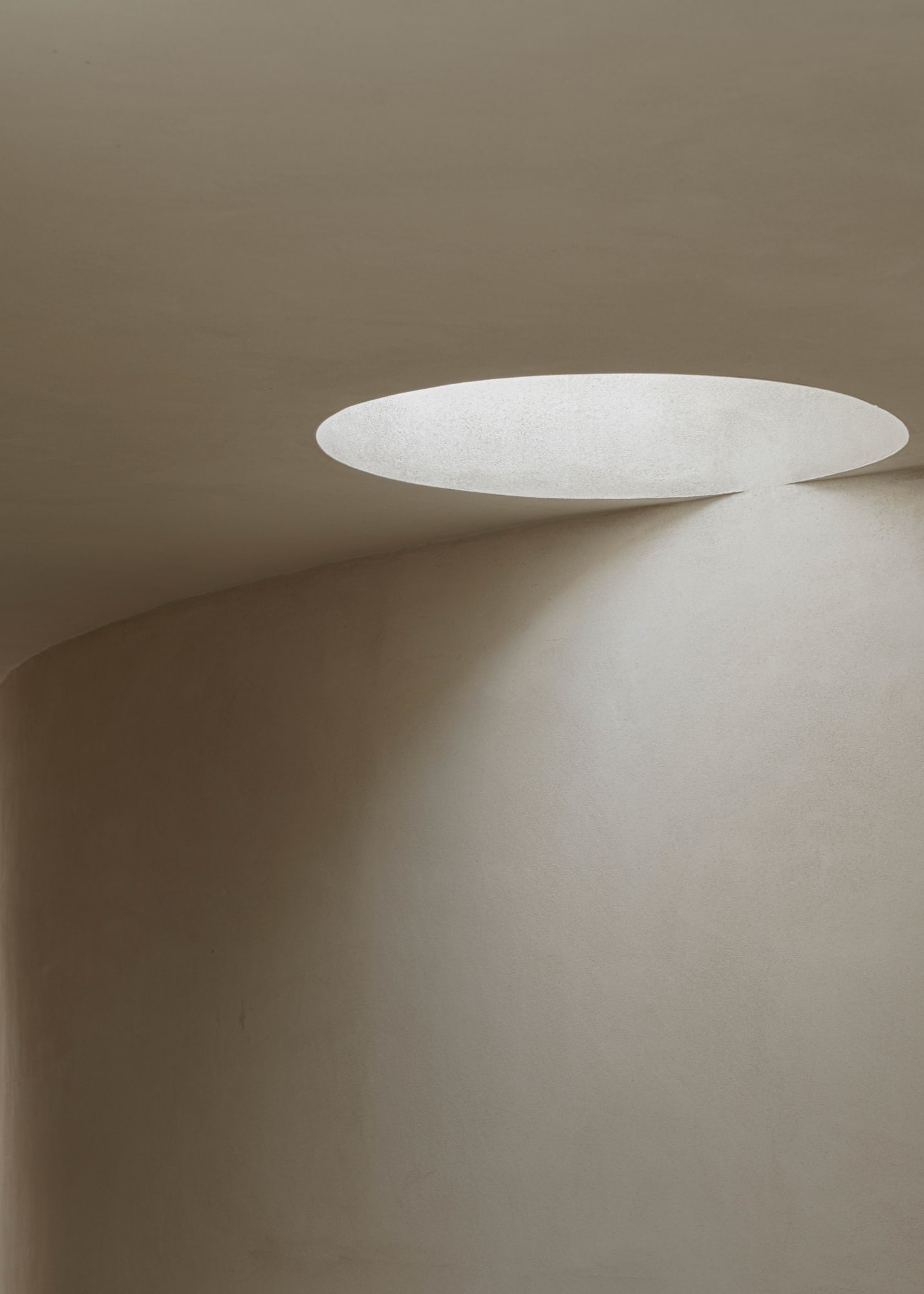 아무것도 없는 것을 원칙으로 한다. 공간을 비워내고, 그 자리에 빛을 가득 채운다. 하늘로 열린 천창은 원형으로 막힌 공간에 숨통 역활을 한다. 음악 스튜디오로 사용하기 위해, 부드러우면서 단정한 내부를 디자인 한다.