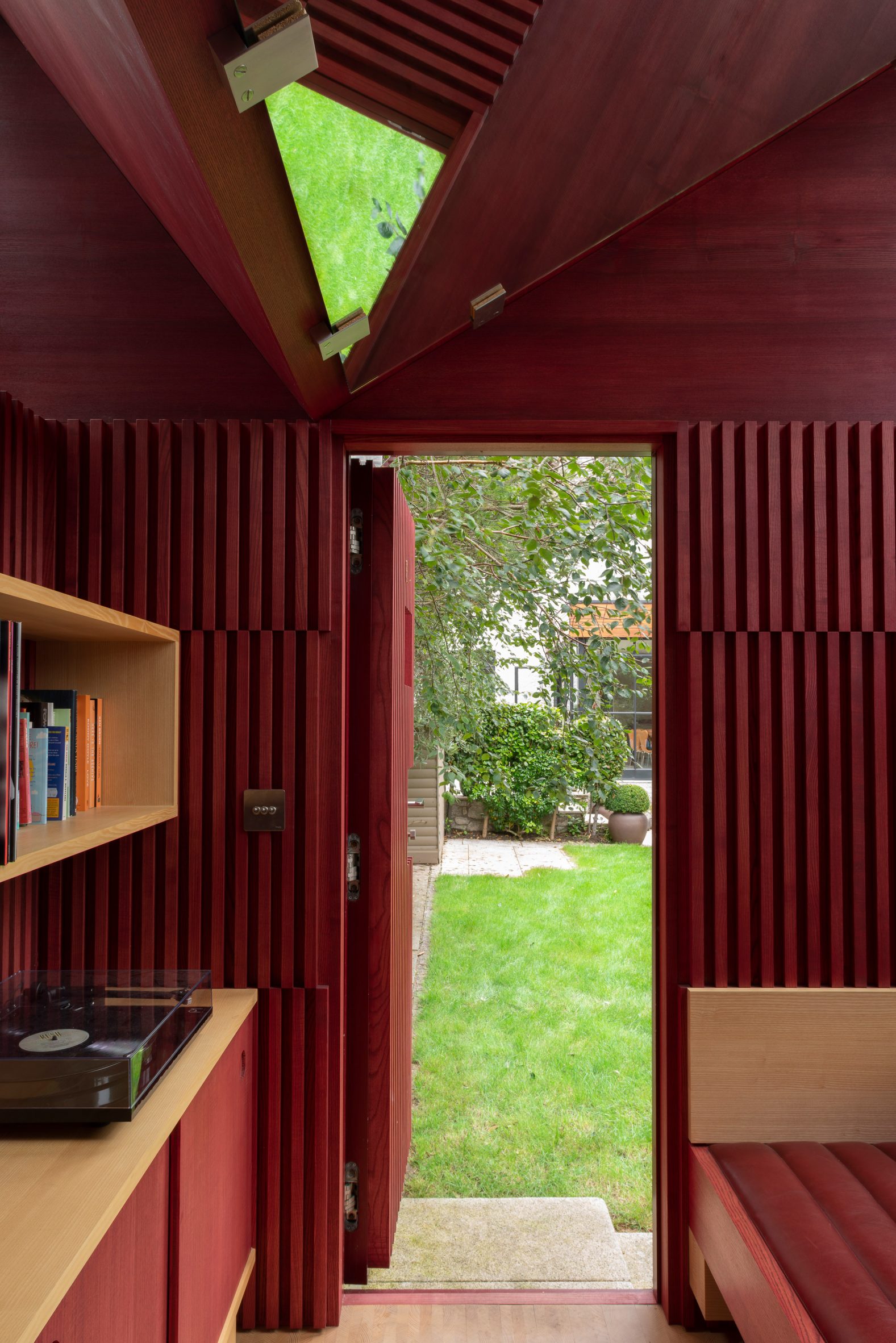 Irish studio Clancy Moore Architects has created The Writing Room in the garden of a Dublin home from recycled aluminium and red-stained beech.