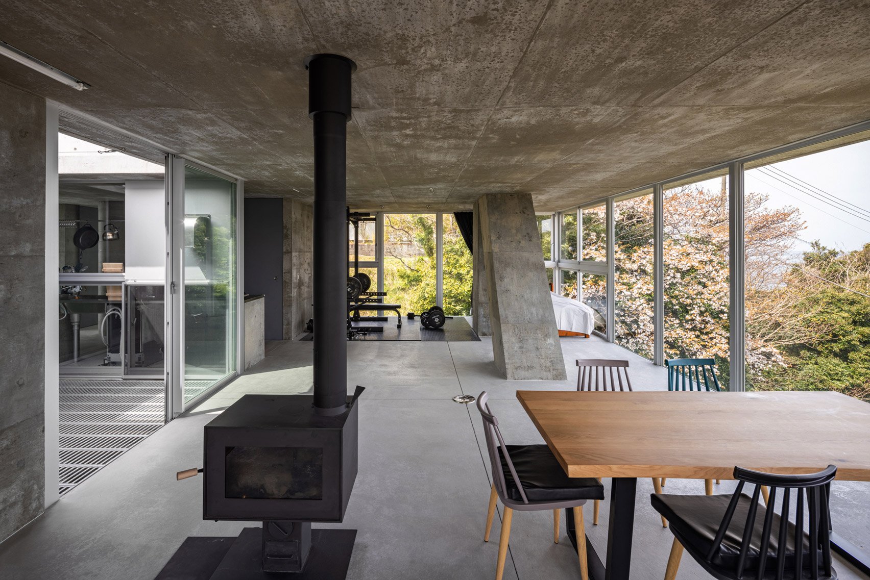 A void punctures the centre of this compact concrete home, which Japanese studio Noriaki Hanaoka Architecture has elevated over a sloping site in Chiba Prefecture.