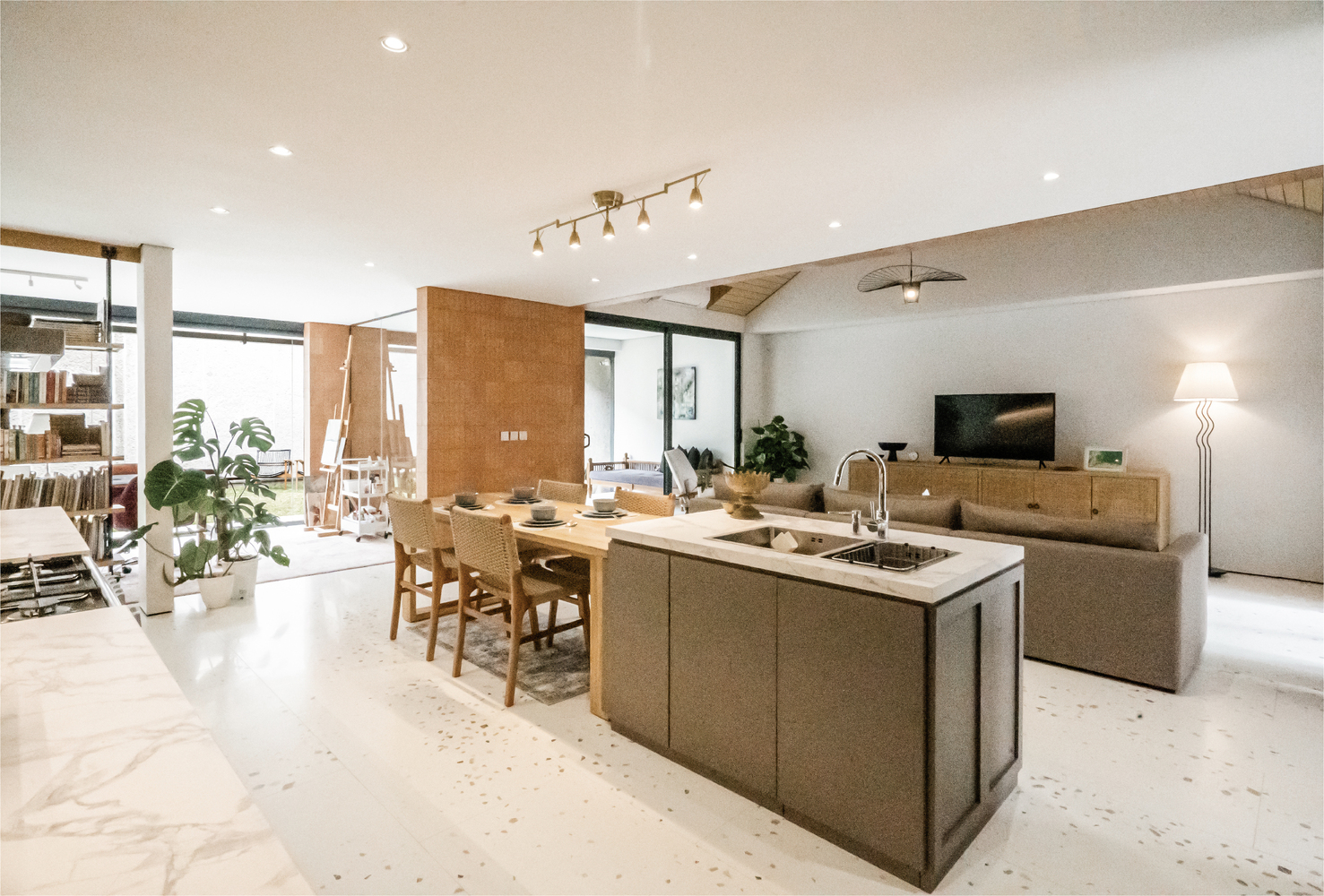 In the building configuration and space program, we try to make a wide house with large openings and minimize bulkhead walls. This is a response to how to create a healthy space, given the number of residential areas with houses attached to each other with neighbors, especially in Indonesia. In addition to forming an effective and spacious space, the building is also shaped so that each side has an open area. Even on the upper floors, all four sides of the building have window openings.