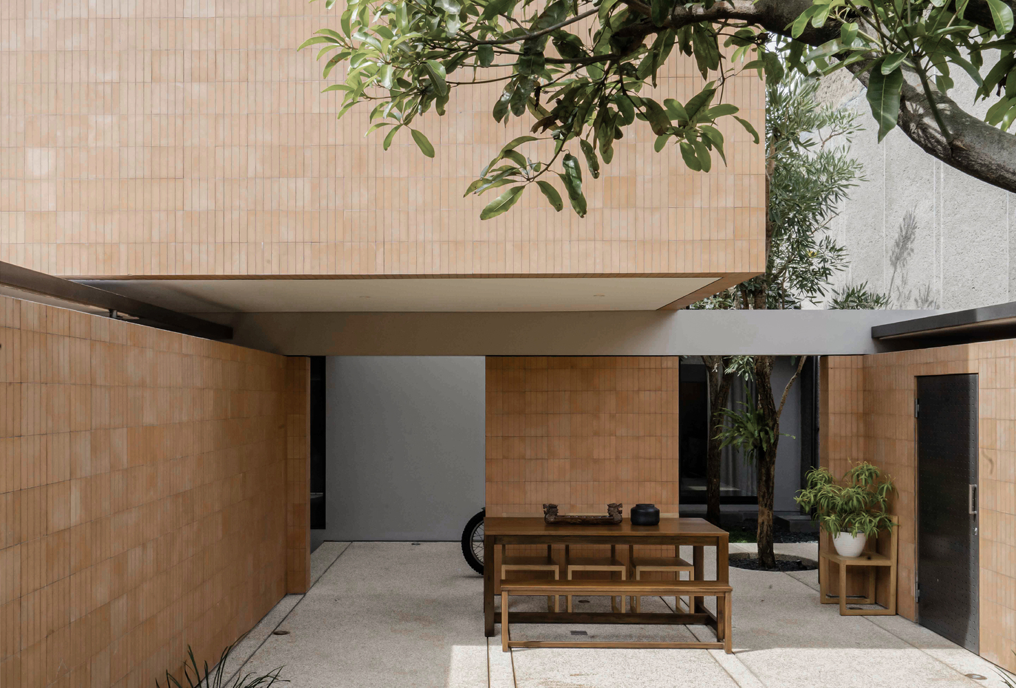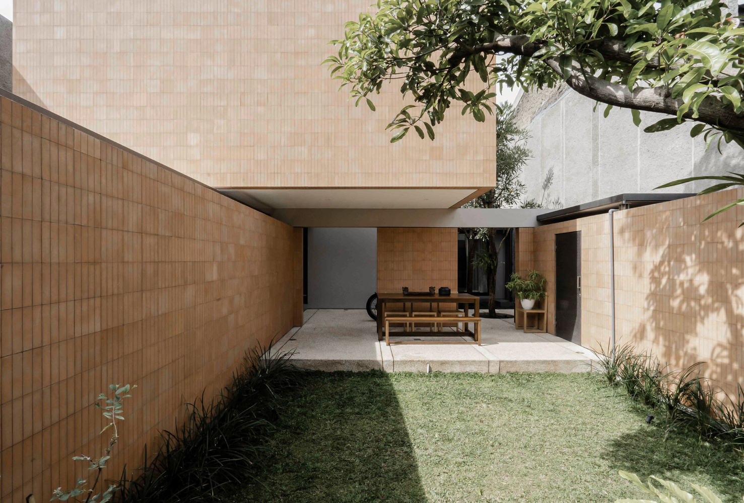 Material exploration that is present in this project is the material that wraps the building's facade. Tile material commonly used for floors or building interiors is used as a facade material with terracotta color shades. This custom product has a print size that corresponds to how the size of the building is made. To get the right pieces on each side covered by this tile, the construction of the building must be really precise so that the tiles and grout are installed properly. Considering the craftsmanship in this country which still does not use many tools and special construction technology in every particle of the building, the work of carpentry here should be appreciated because it still upholds the shrewdness of the hands in crafting buildings.