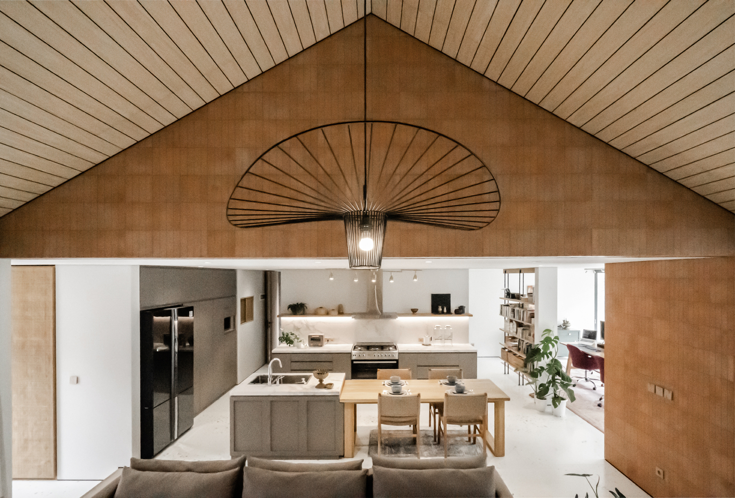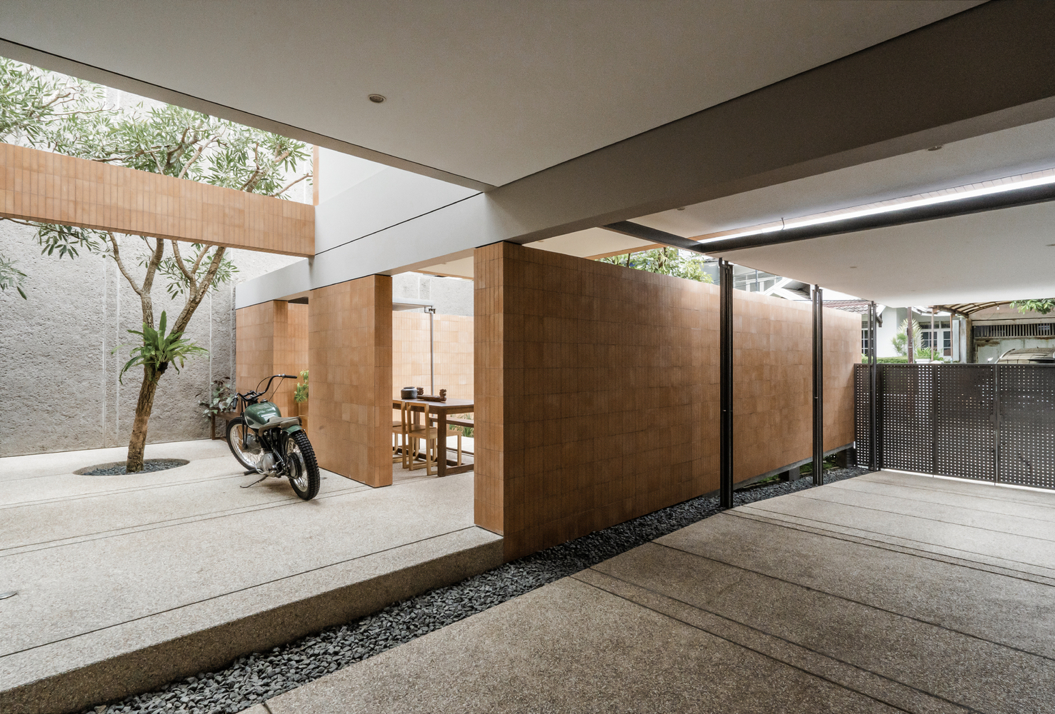 In the building configuration and space program, we try to make a wide house with large openings and minimize bulkhead walls. This is a response to how to create a healthy space, given the number of residential areas with houses attached to each other with neighbors, especially in Indonesia. In addition to forming an effective and spacious space, the building is also shaped so that each side has an open area. Even on the upper floors, all four sides of the building have window openings.