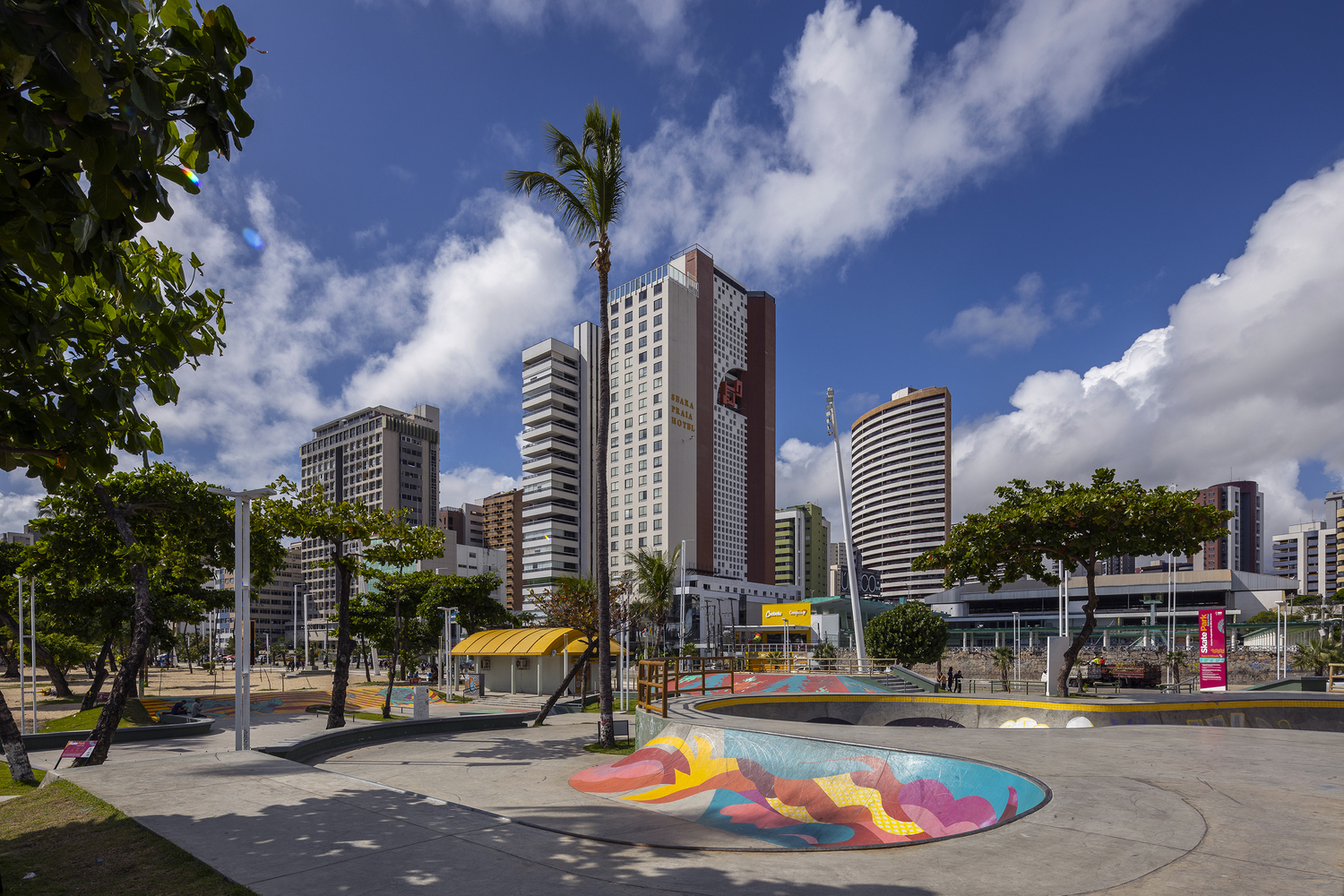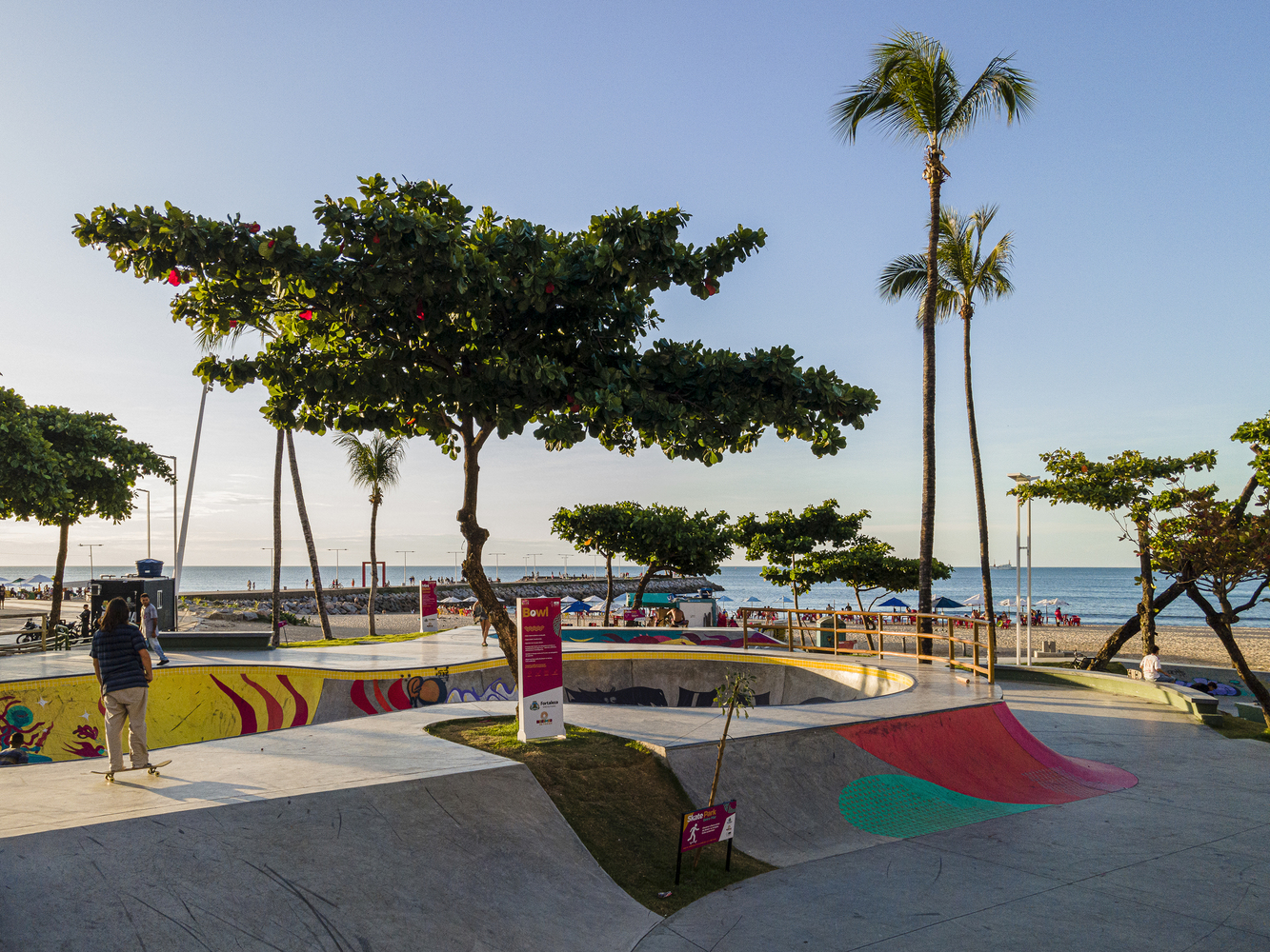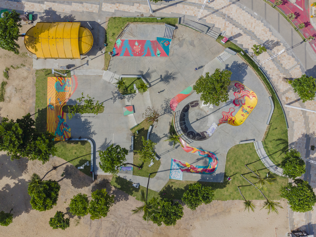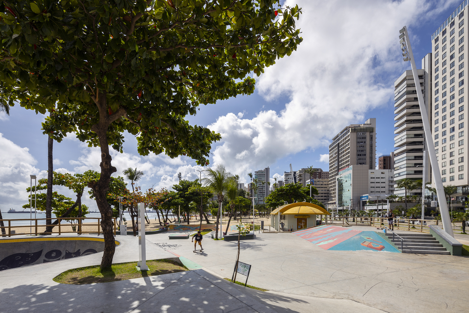 Av. Beira Mar is the main tourist area of the city of Fortaleza and is considered its main postcard. Recently, this waterfront has undergone a process of urban and architectural reorganization where, in this context, an old track was removed and a new, more modern, and the updated track was created for skateboarding. Skateboarding is a sport on the rise in Brazil and has great athletes who stand out on the international scene. This scene has expanded with the recent inclusion of the sport in the 2021 Tokyo Olympics and the beautiful participation of the Brazilian team. The Skatepark project on Av. Beira Mar is located on Náutico beach, in a strategic location due to its easy access to urban mobility. The land has great landscape potential as well as good native vegetation. One of the main premises adopted in the equipment was to preserve the most relevant trees in order to conserve, as well as provide shade for the practice of the sport throughout the day.