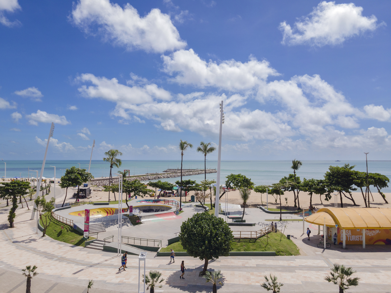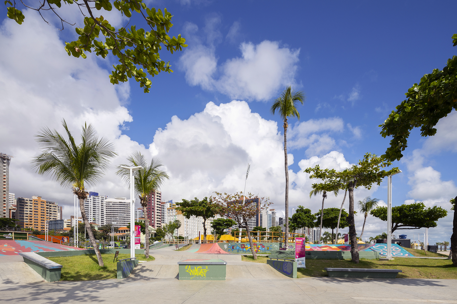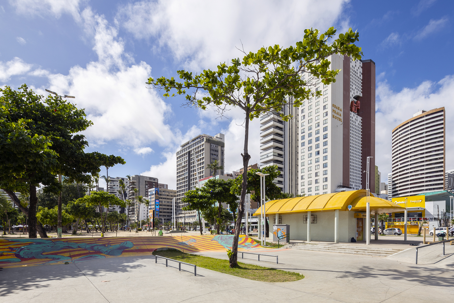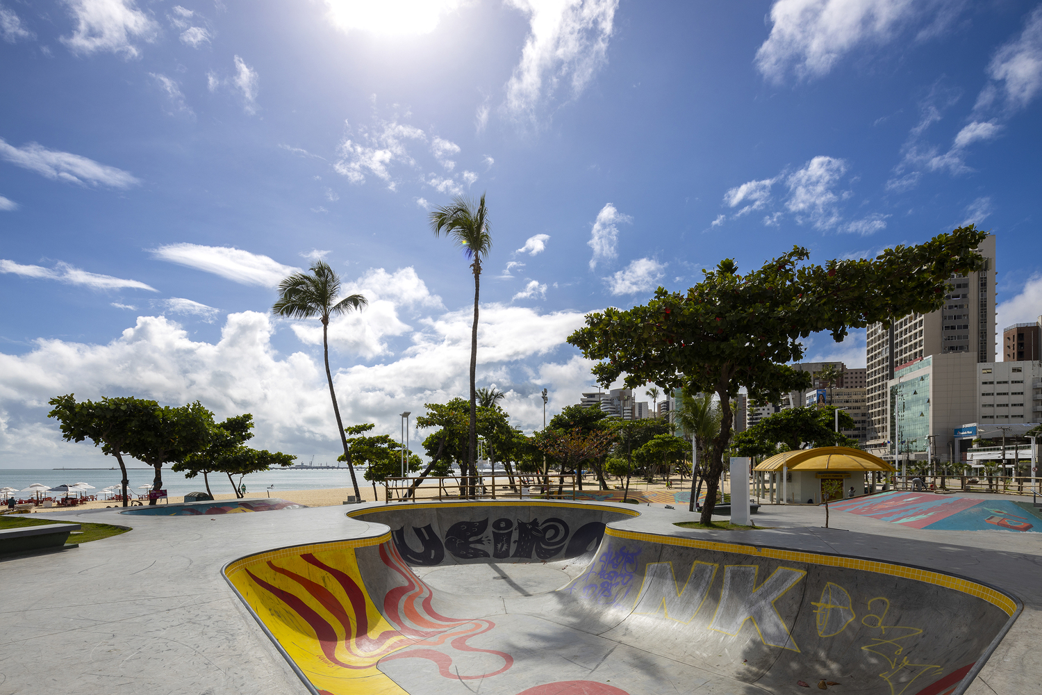 Av. Beira Mar is the main tourist area of the city of Fortaleza and is considered its main postcard. Recently, this waterfront has undergone a process of urban and architectural reorganization where, in this context, an old track was removed and a new, more modern, and the updated track was created for skateboarding. Skateboarding is a sport on the rise in Brazil and has great athletes who stand out on the international scene. This scene has expanded with the recent inclusion of the sport in the 2021 Tokyo Olympics and the beautiful participation of the Brazilian team. The Skatepark project on Av. Beira Mar is located on Náutico beach, in a strategic location due to its easy access to urban mobility. The land has great landscape potential as well as good native vegetation. One of the main premises adopted in the equipment was to preserve the most relevant trees in order to conserve, as well as provide shade for the practice of the sport throughout the day.