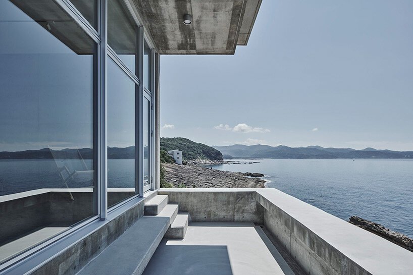 The water facing facades with their enlarged apertures encourage residents to interact with the rich ocean and rock surroundings.‘From the site, you can see both the sunrise and the sunset, and at night, the starry sky spreads out before you. Large ships come and go quietly on the distant horizon, and sea turtles swim gently nearby on lucky days, but in stormy weather they are mercilessly exposed to wind and rain.’ the team at Ninkipen! shares.