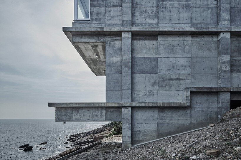 해안가 절벽위에 위치한 이번 작업은 보이는 것만이 전부는 아니다. 눈으로 보기에 먼가 드라마틱하고, 액설런트한 풍경과 건축의 모습이 먼저 보인다. 그보다 우리가 봐야 하는 것은 최소한의 건축을 하기 위해, 많은 어휘들이 과감하게 생략되었고, 이렇게 민낮을 보여주는 건축이 주변 자연환경과 하나로 동기화 되는 모습을 일 것이다. 거친 바닷바람을 맞고 있는 돌무더기처럼 보인다. 아마도 의도는 인공적일 수밖에 없는 건축을 인공적이지 않게 보이게 만들려는 자기모순의 극복이라고 생각된다.