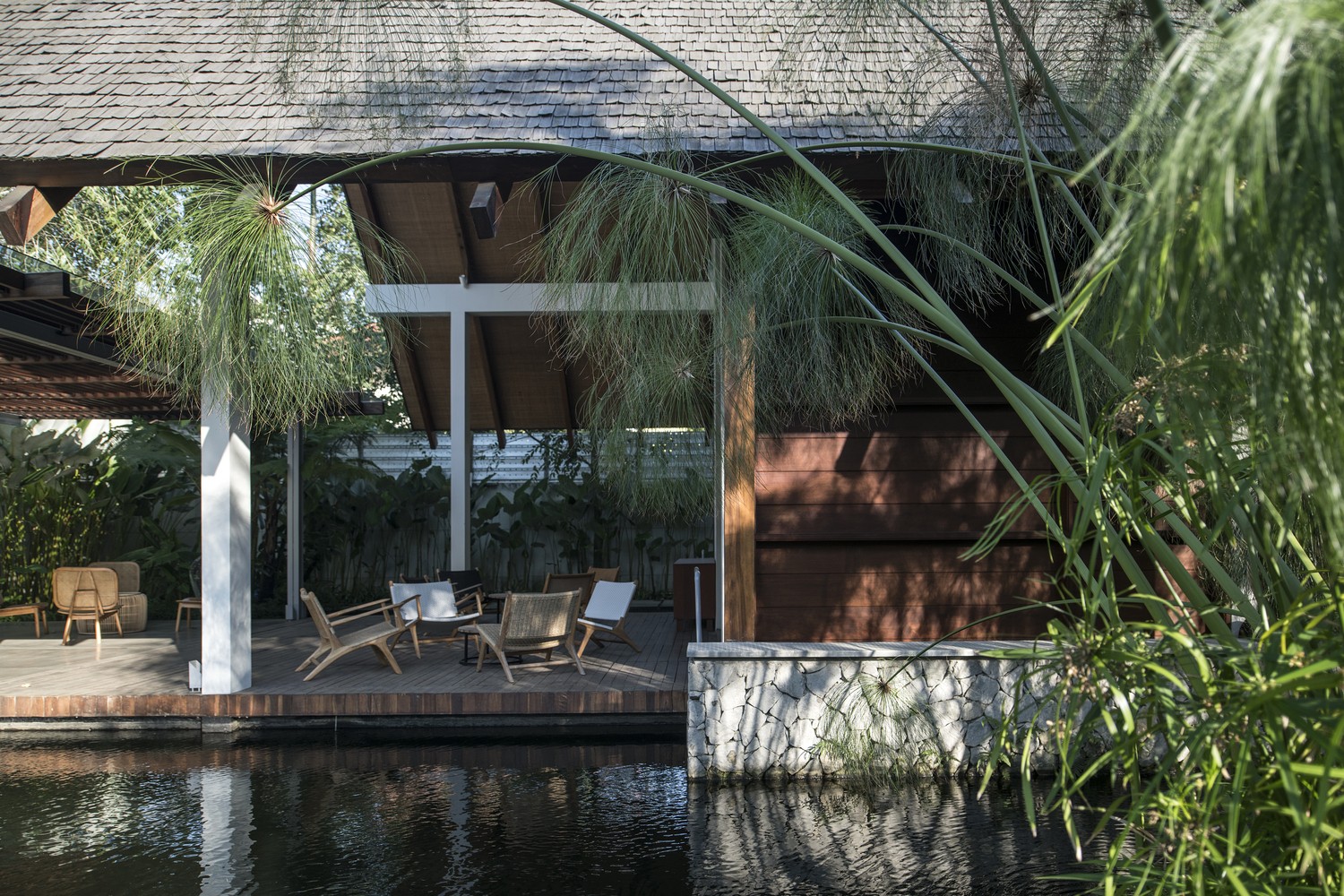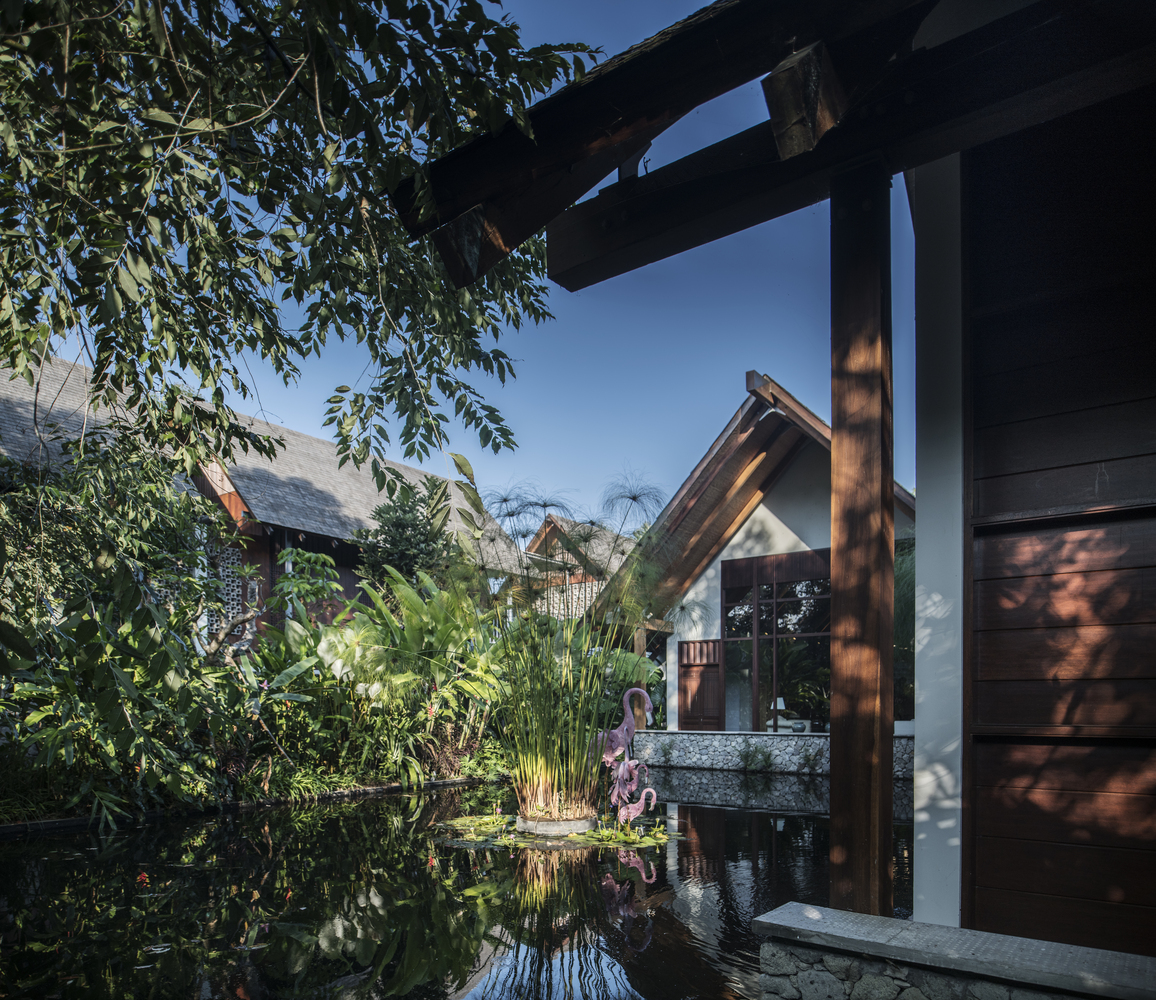 Featuring four guest houses and two spacious meeting halls overlooking a giant fishpond, the Ton Villas were designed for a client who likes to entertain large groups of people. The 3,500sqm property also features a large dining area and a lounge where guests can get together and mingle through games and music.