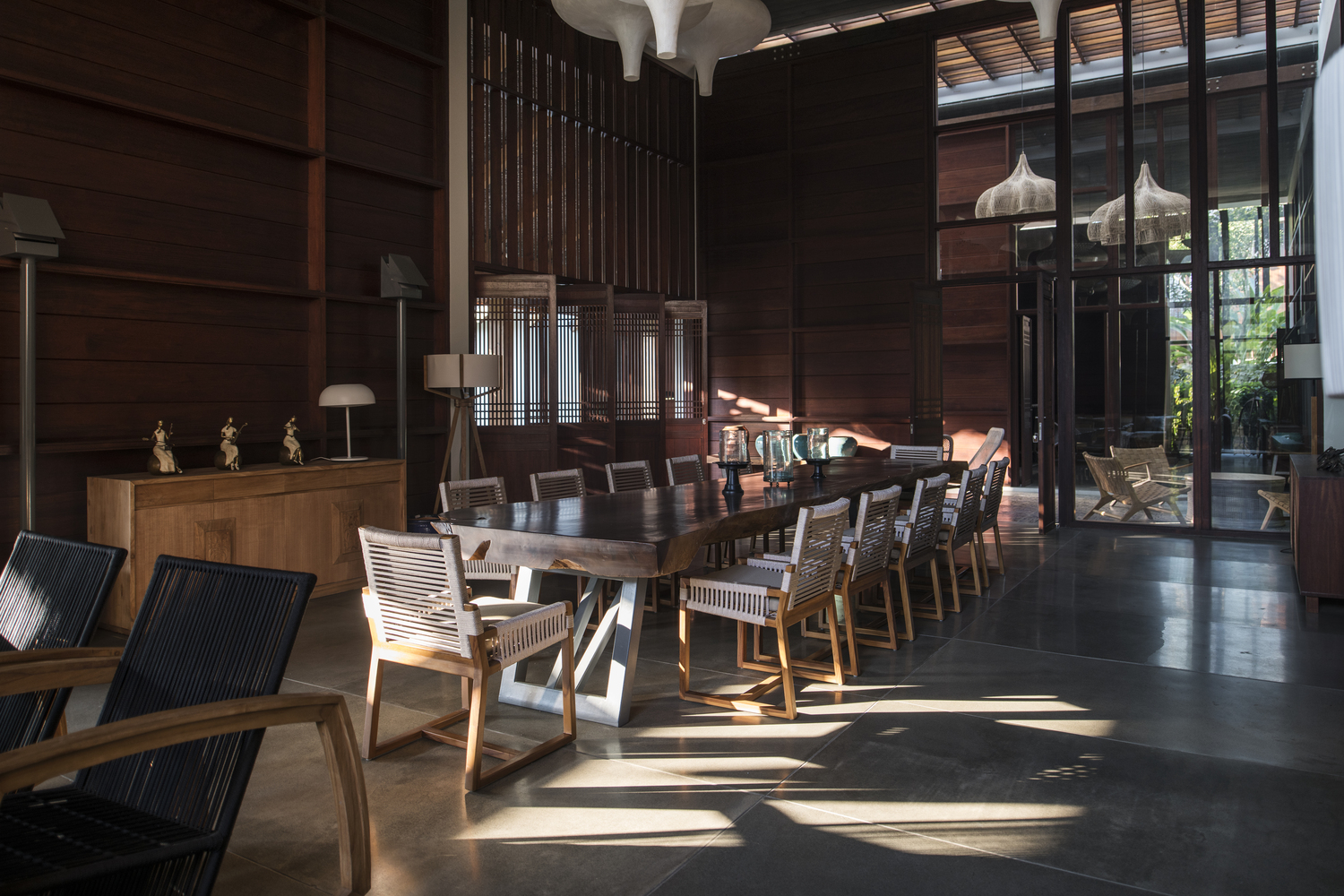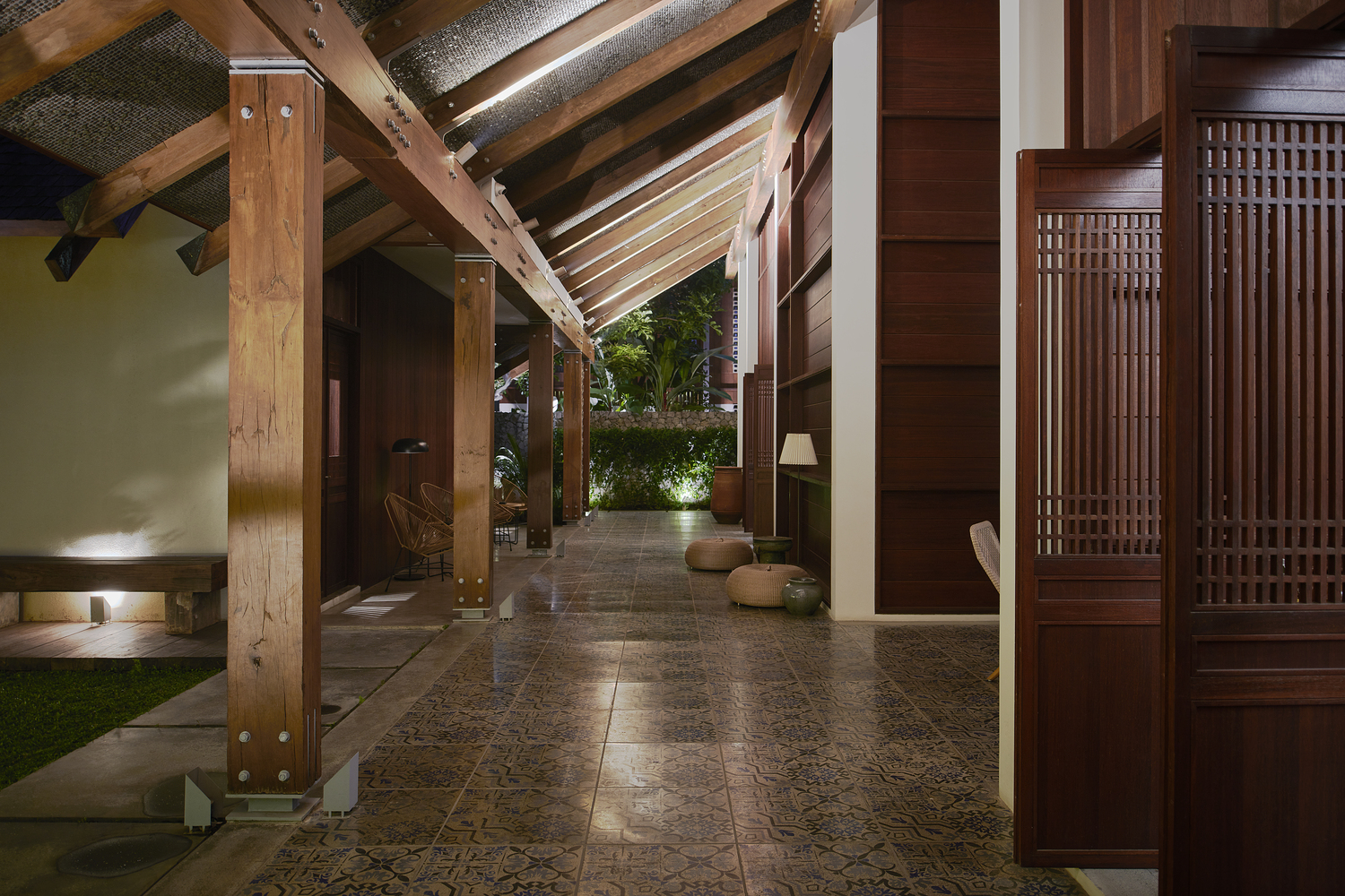 공간의 고즈넉함과 오픈플랜이 읽혀진다. 열대기후의 특성을 고려한 건축환경은 통기를 위한 연속된 오픈구간을 구성한다. 무엇보다 이를 구축하는 목재와 돌담, 콘크리트 블록이 전달하는 친자연적인 요소는 공간의 깊이를 배가 시킨다.