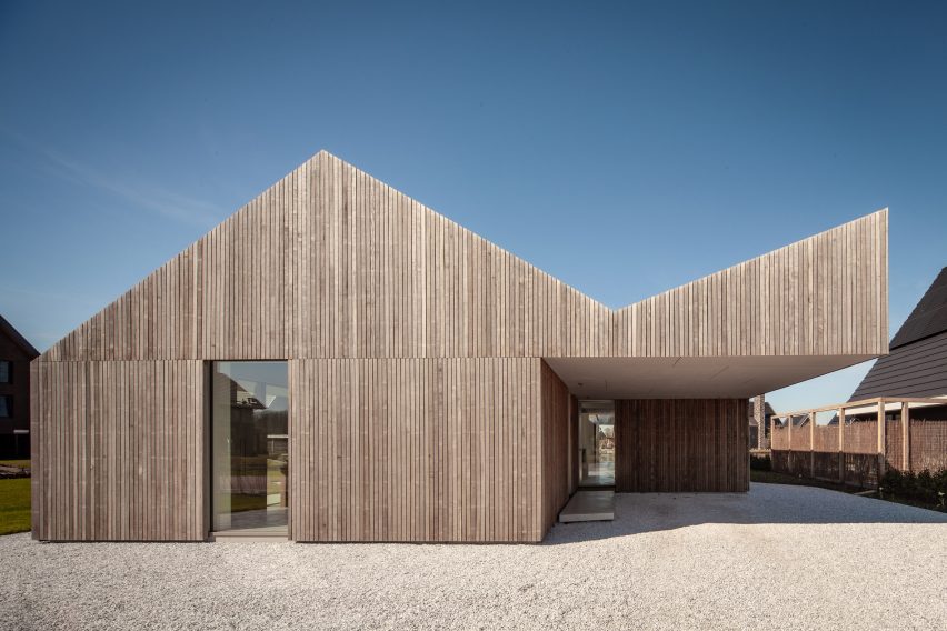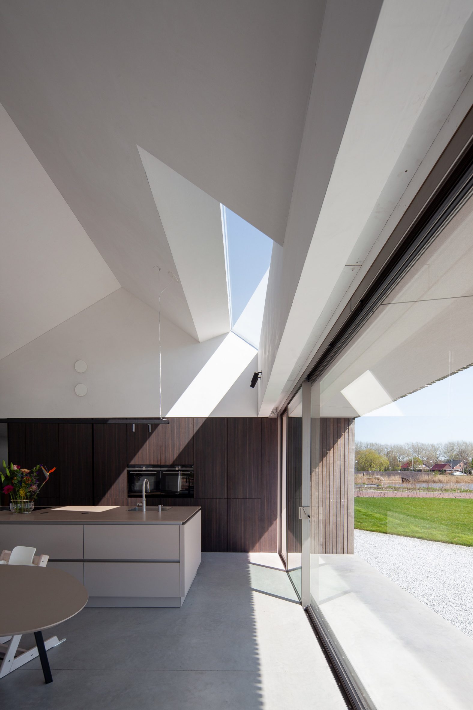 Francois Verhoeven Architects has completed a house in a Dutch village featuring a roof with three sloping sections that incorporate skylights, sedum and concealed solar panels.
