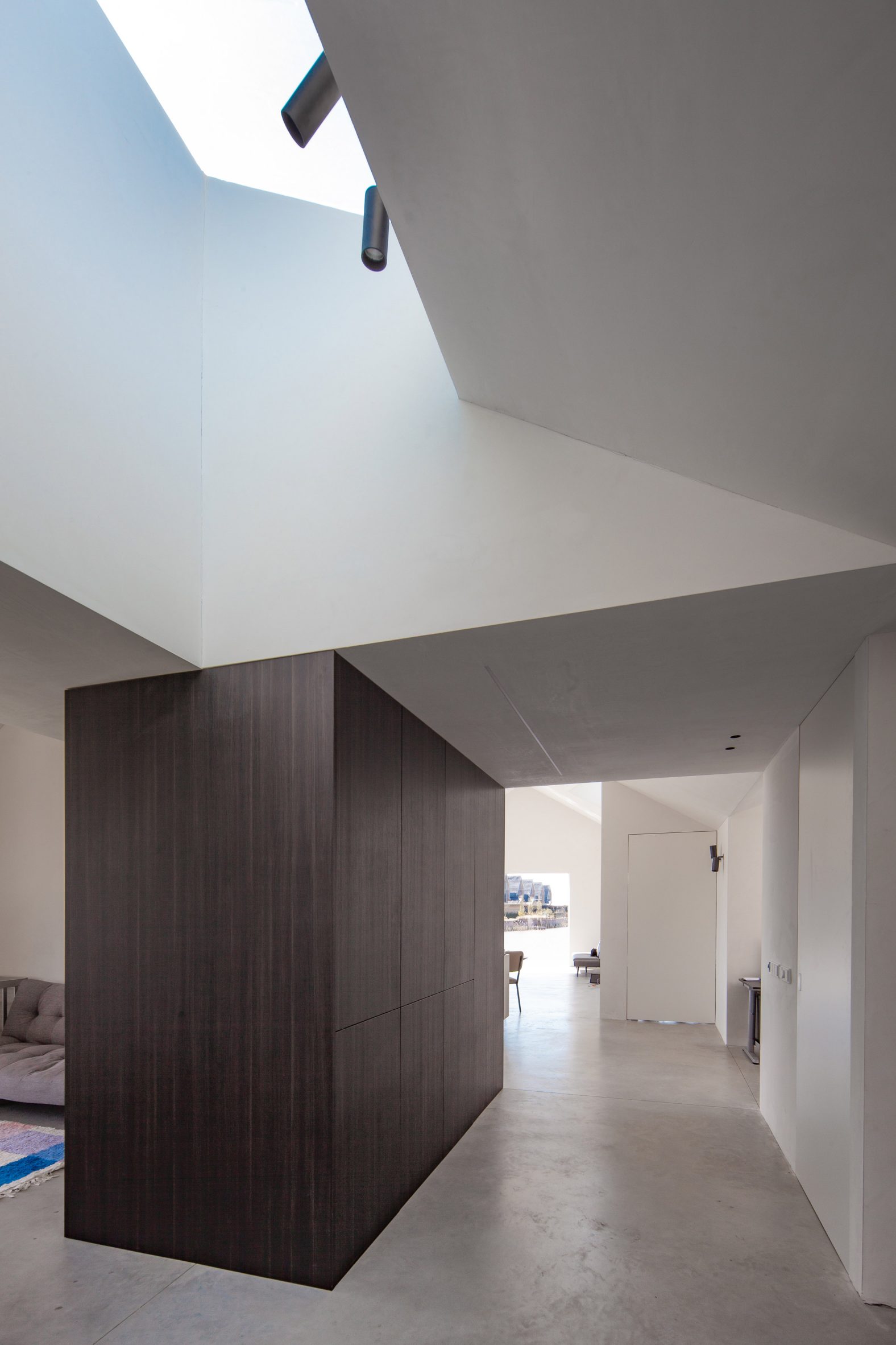 The villa is designed to accommodate a family of five and includes a large open-plan living space lined with a glazed south-facing opening.