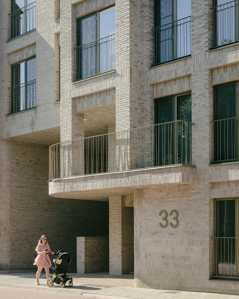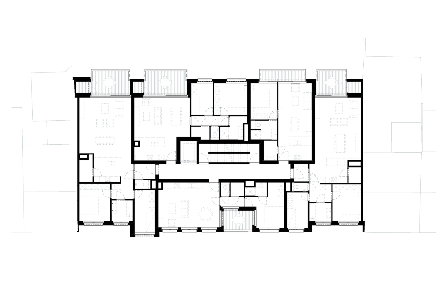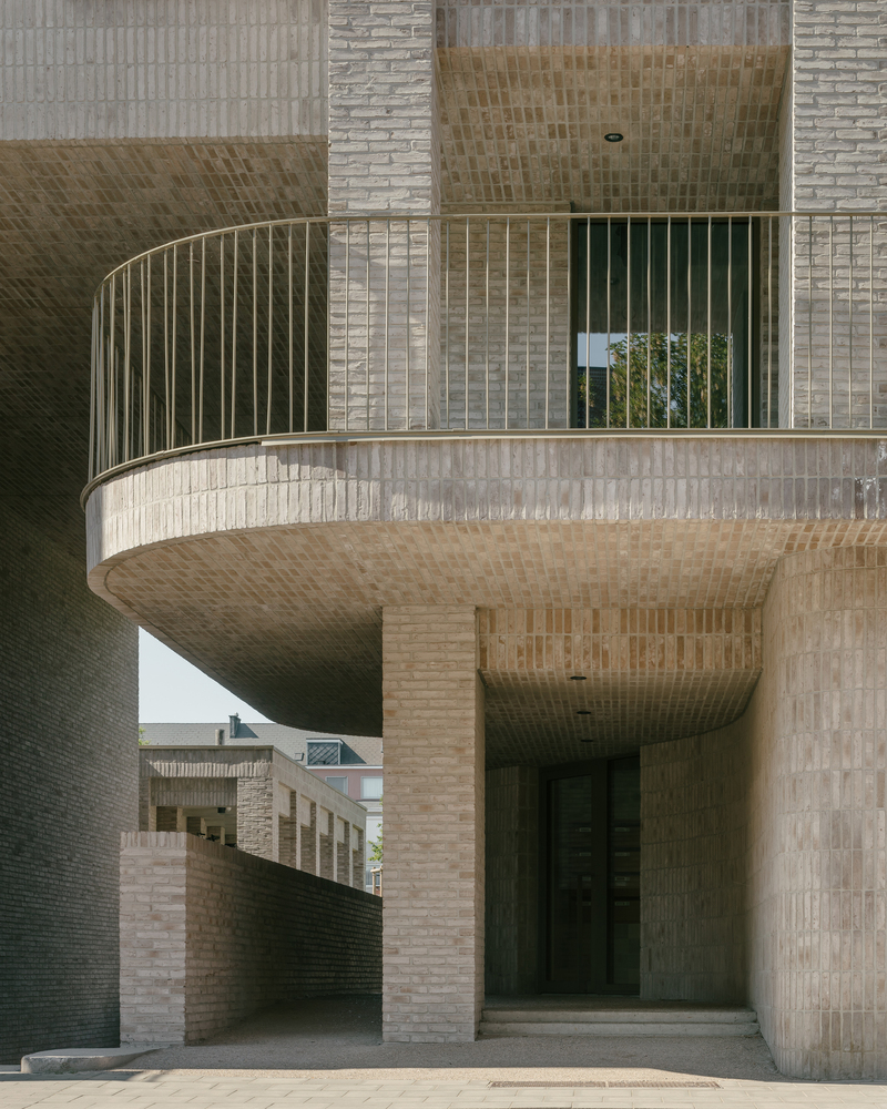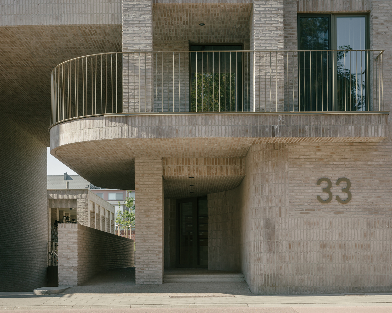 Three outdated terraced houses were demolished and replaced by a residential complex with 21 flats and an underground car park. In the design, particular attention was paid to the architecture of the street frontage, aiming for 'the size of the street'. Many large scale projects have already been built in Maastrichtersteenweg, whereby several plots have been joined together. In response, we searched for a vertical articulation that of more narrow dimensions, similar to those of a classic townhouse. For this reason, the façade is composed of six bays, each with a different width. Staggered sections between the bays, both to the front and the back create a façade with a clear fragmentation. In this way, the project seeks to connect to the grain of the existing streetscape.