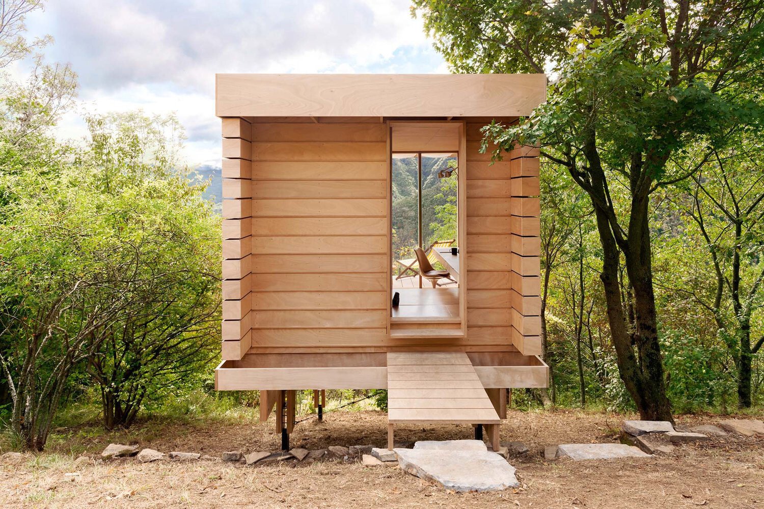 The design of llabb’s Hermitage was based on a process of experimentation with a simple and modular system, made entirely of wood. With this project, the Italian studio seeks to address current environmental and social needs, starting from minimalist living and a close relationship with nature.