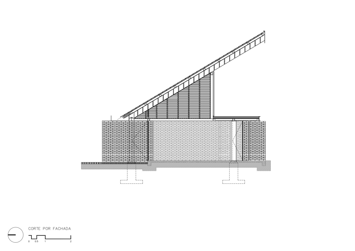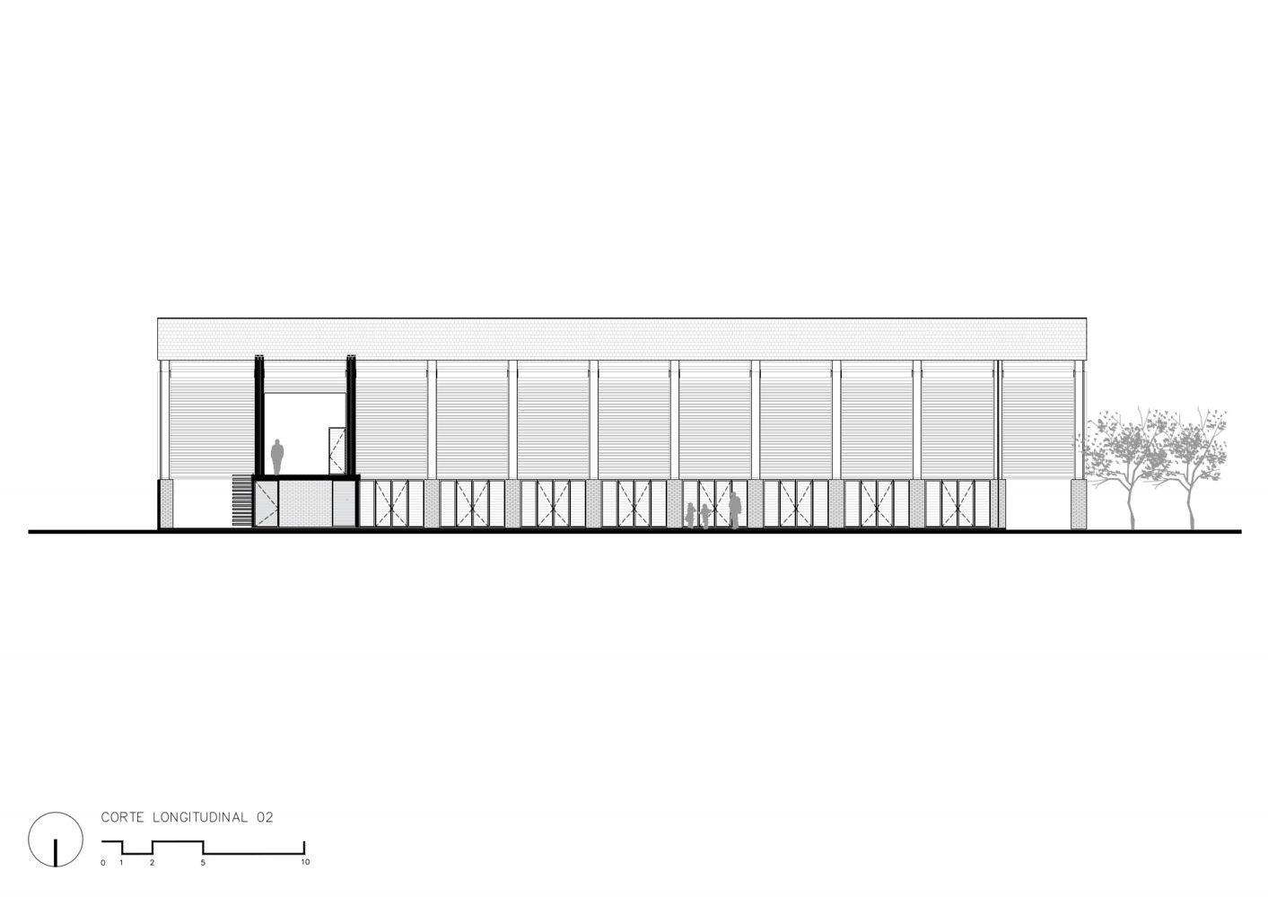 The new Community Center reuses the foundations of the pre existed building and provides space for social gatherings, with an open floor plan of 32x24 meters, and a core of services with cellars, restrooms, and a kitchen for special events, the upper floor works as a mezzanine for workshops or as a stage for local musicians.