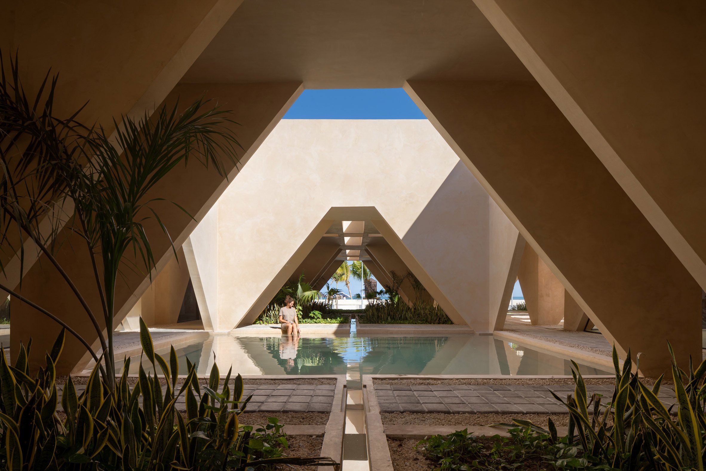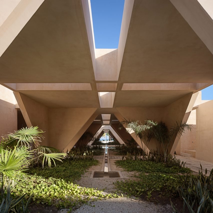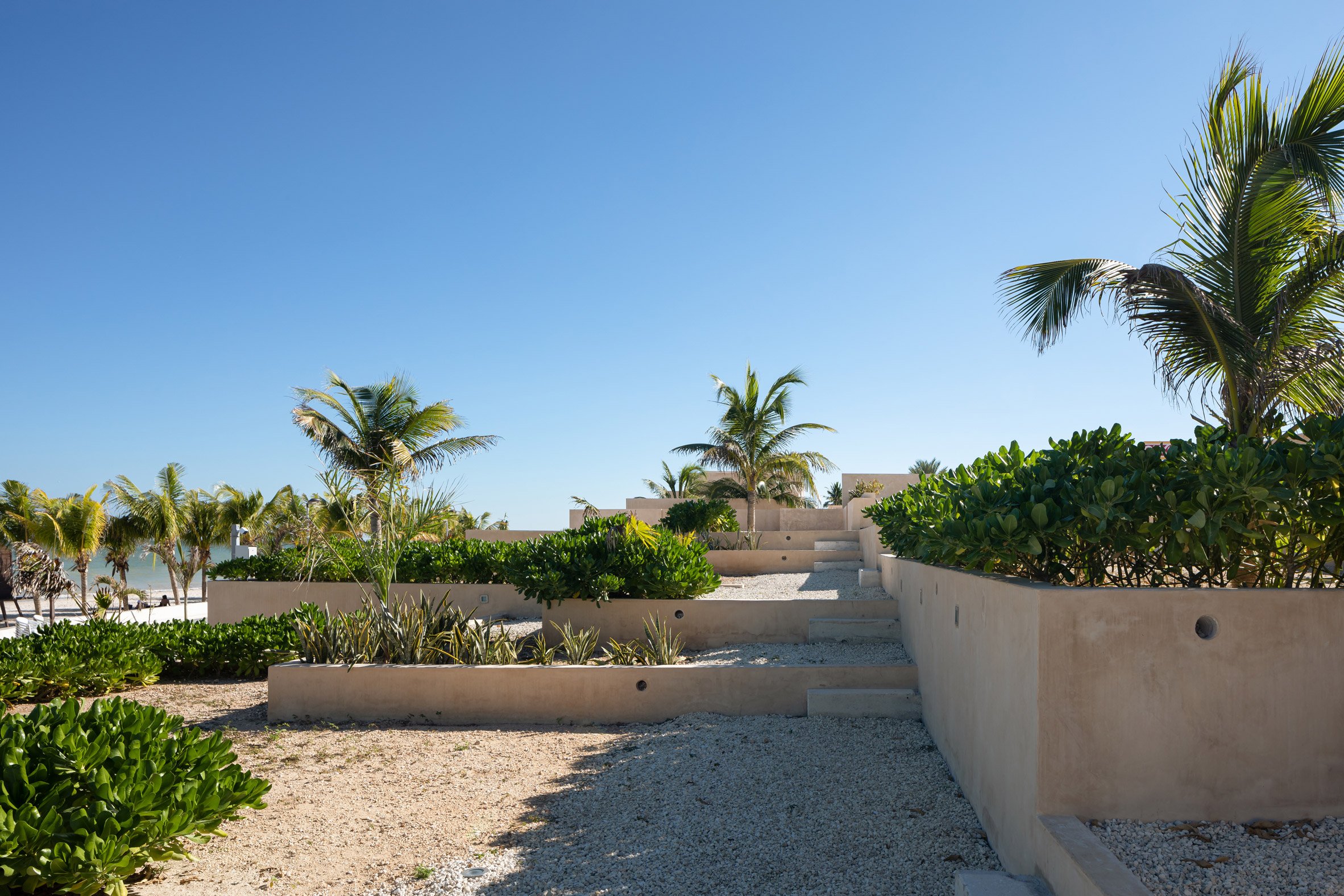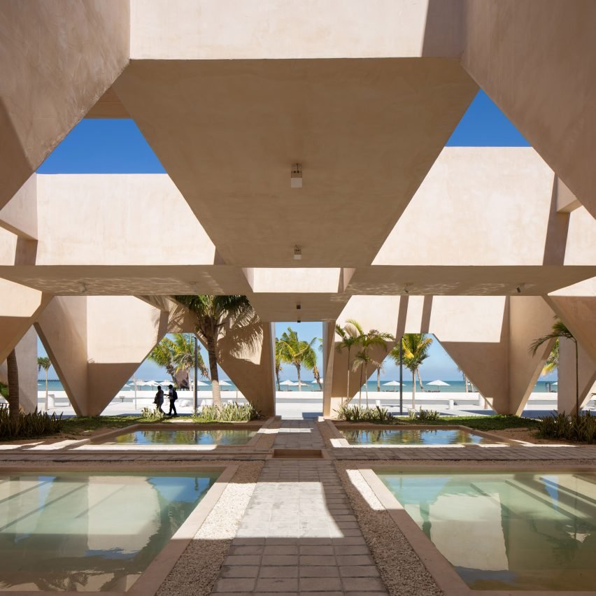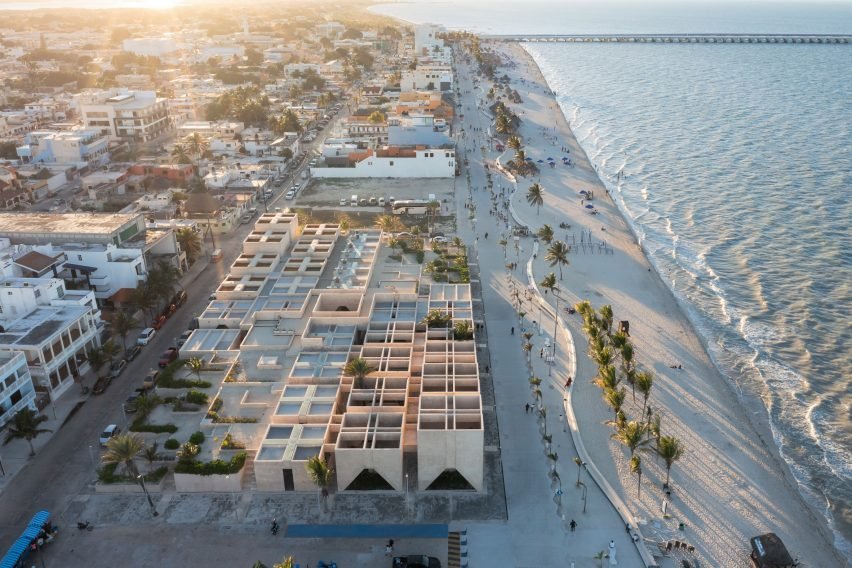Mexico City-based Estudio MMX created the museum based on a gridded pattern for the beach-side site in Progreso – a town near Mérida that sits on a slip of land on the coast of the Yucatán Penisula in Mexico.