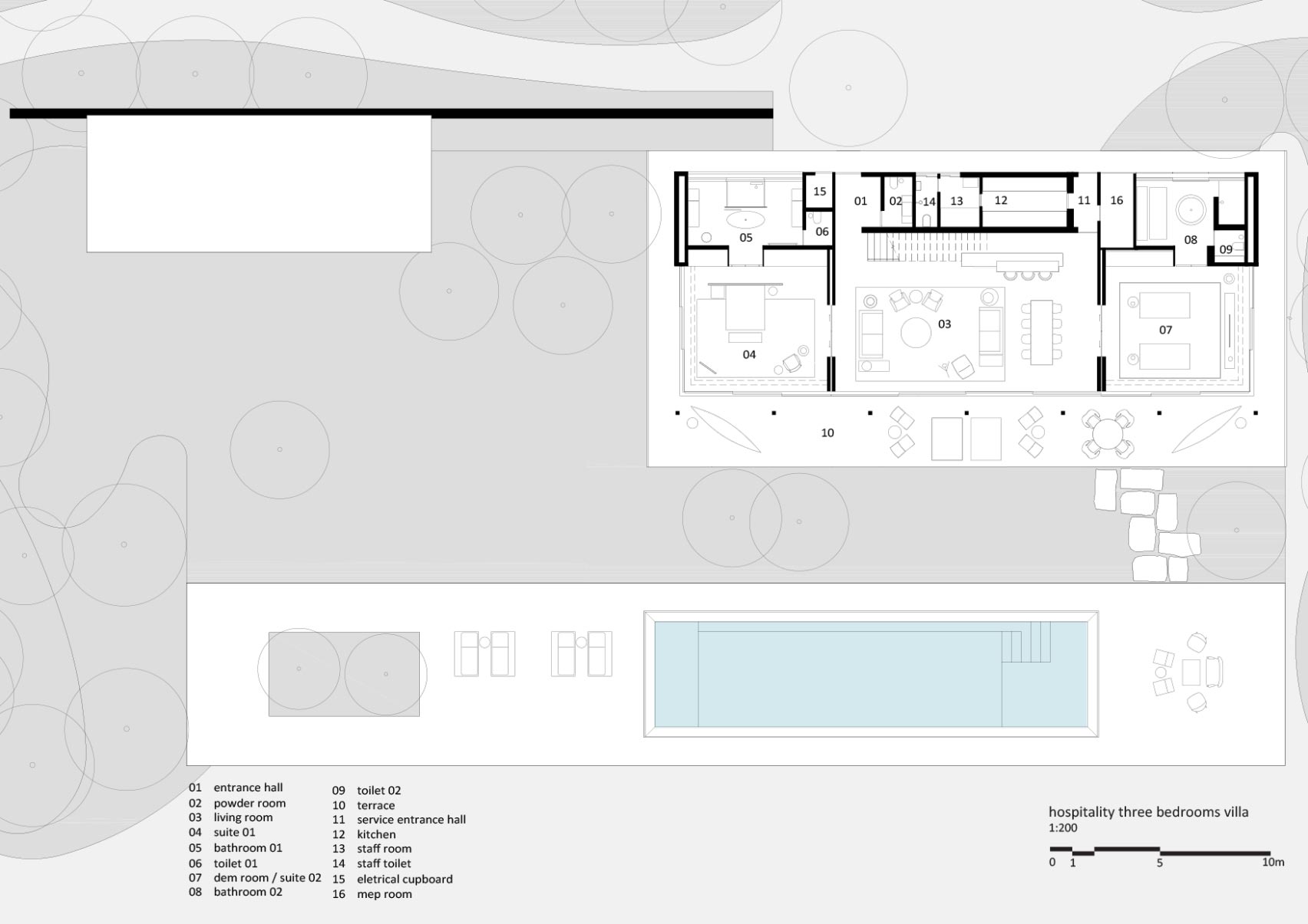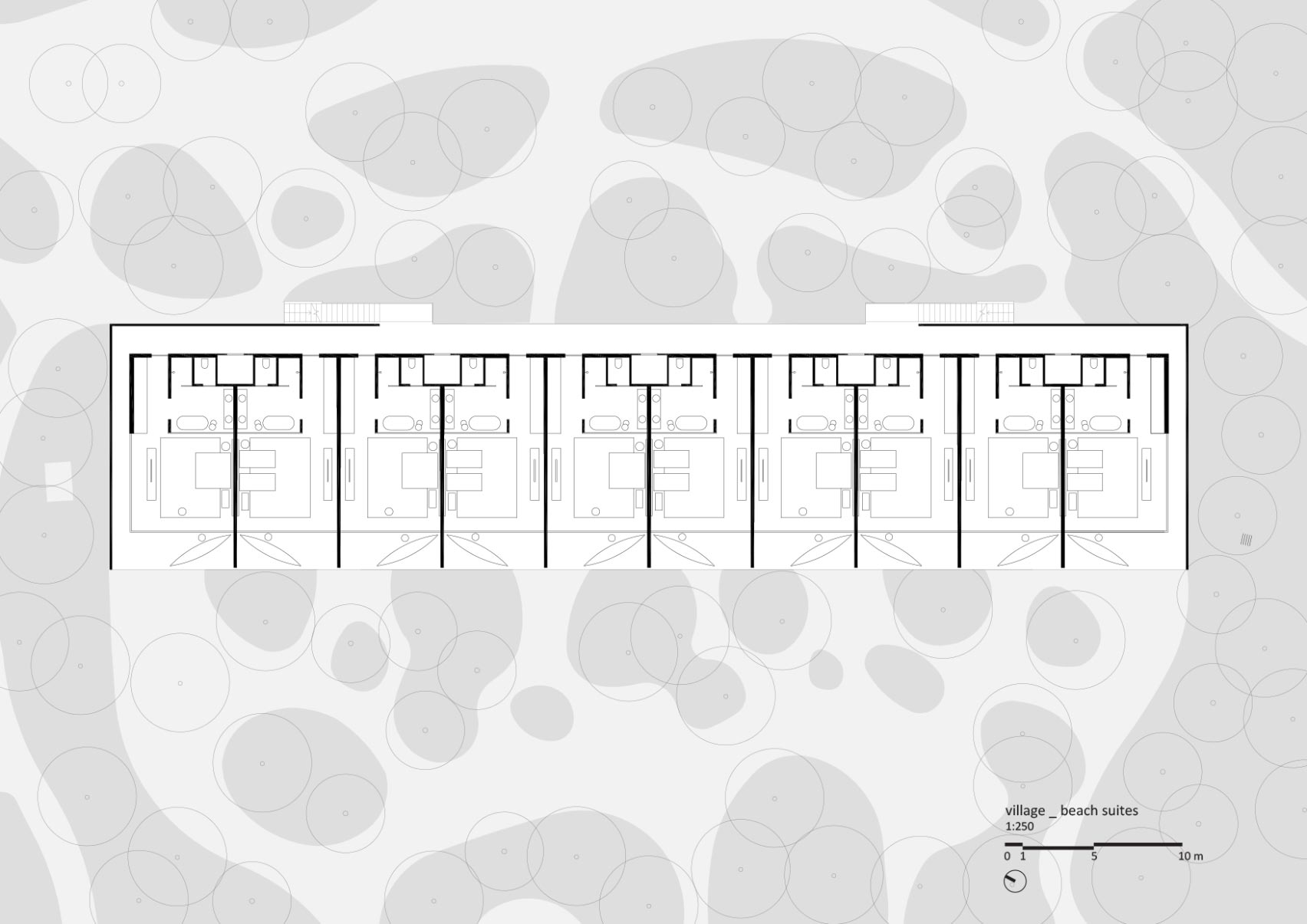 Never rising above the tree canopy, the buildings are dotted around the island in an arrangement designed to create areas of vibrant social activity and spaces of complete seclusion.