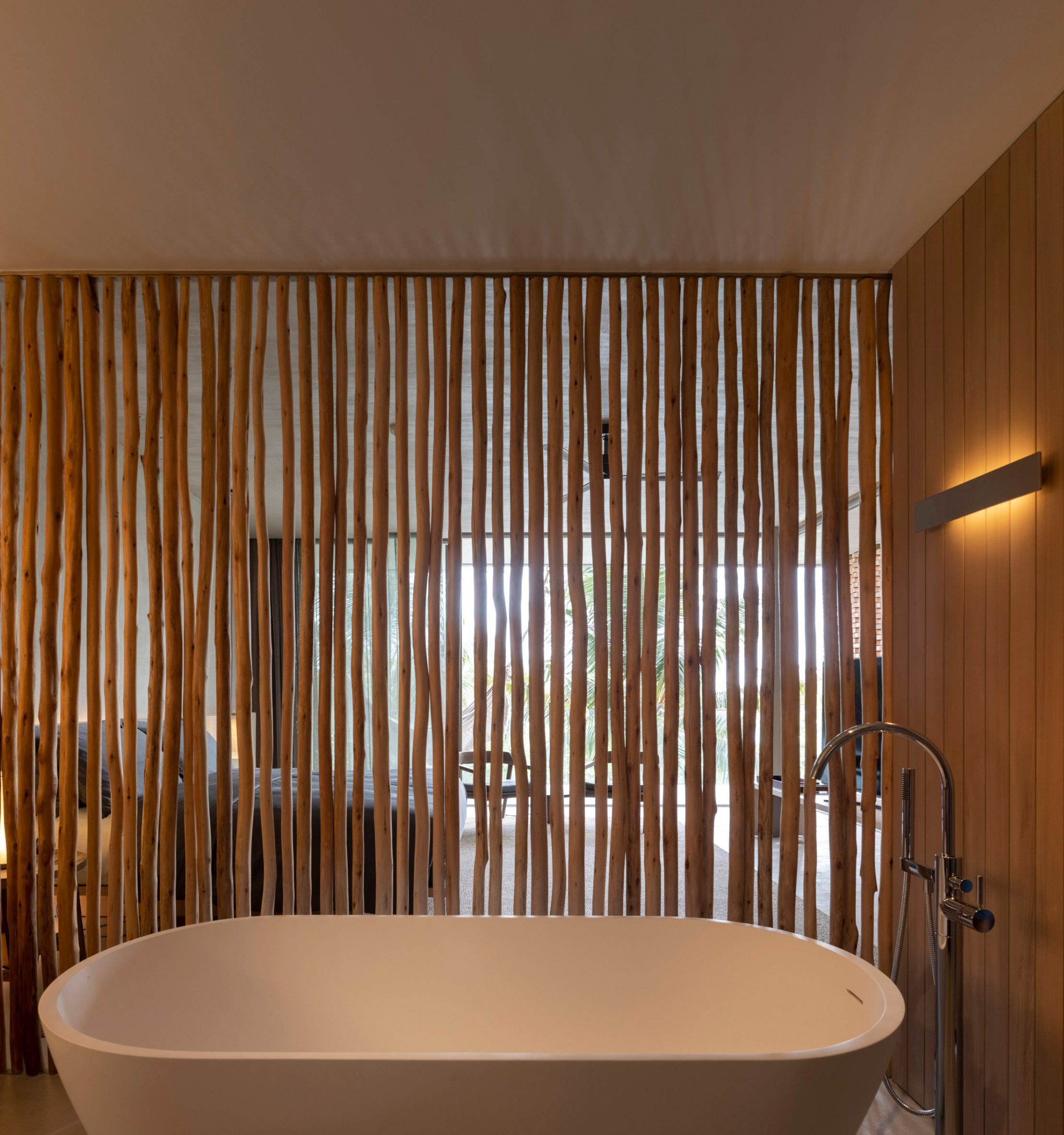 Studio MK27 has designed architecture and interiors for buildings across the island, including an arrival pavilion, a spa, a kid's club, and a cluster of bars and restaurants.