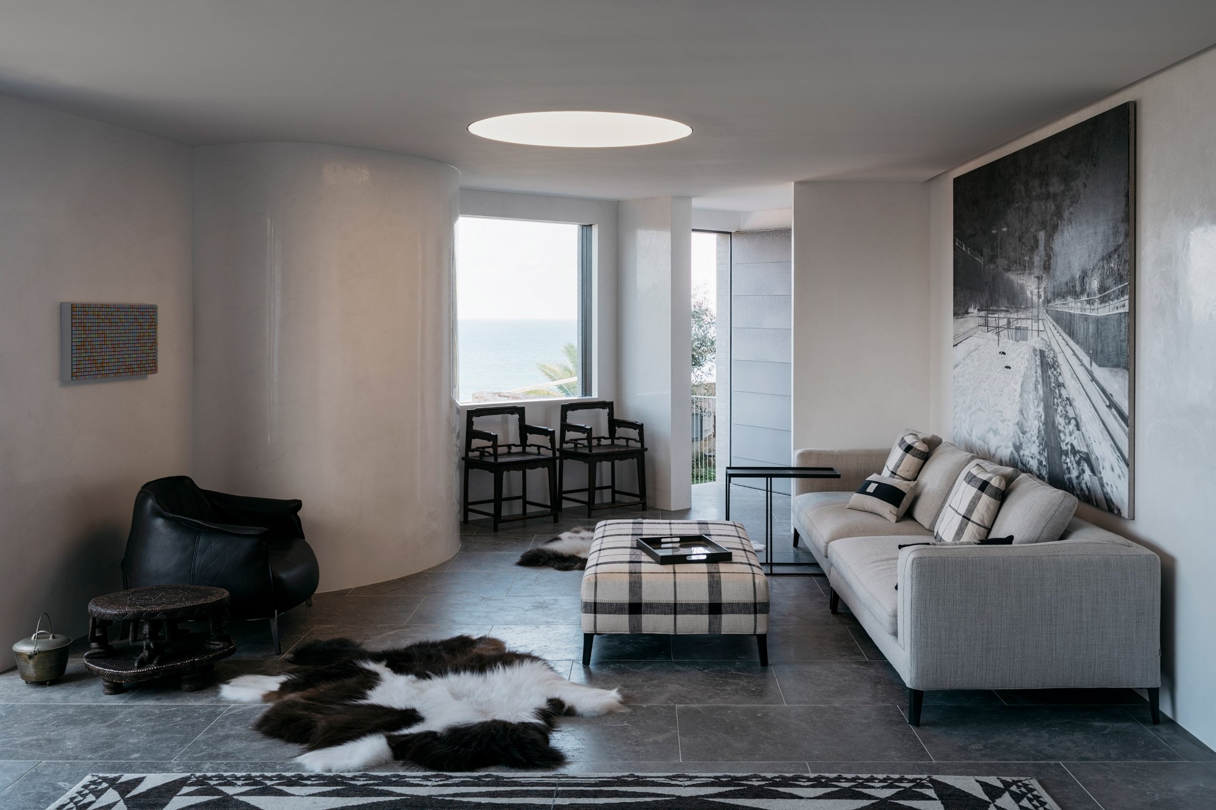Called Matopos, the home designed for the gallerist Judith Neilson involved a complete overhaul of an existing structure on the 178-square-metre corner plot, which overlooks a beach in the Sydney suburb of Freshwater.