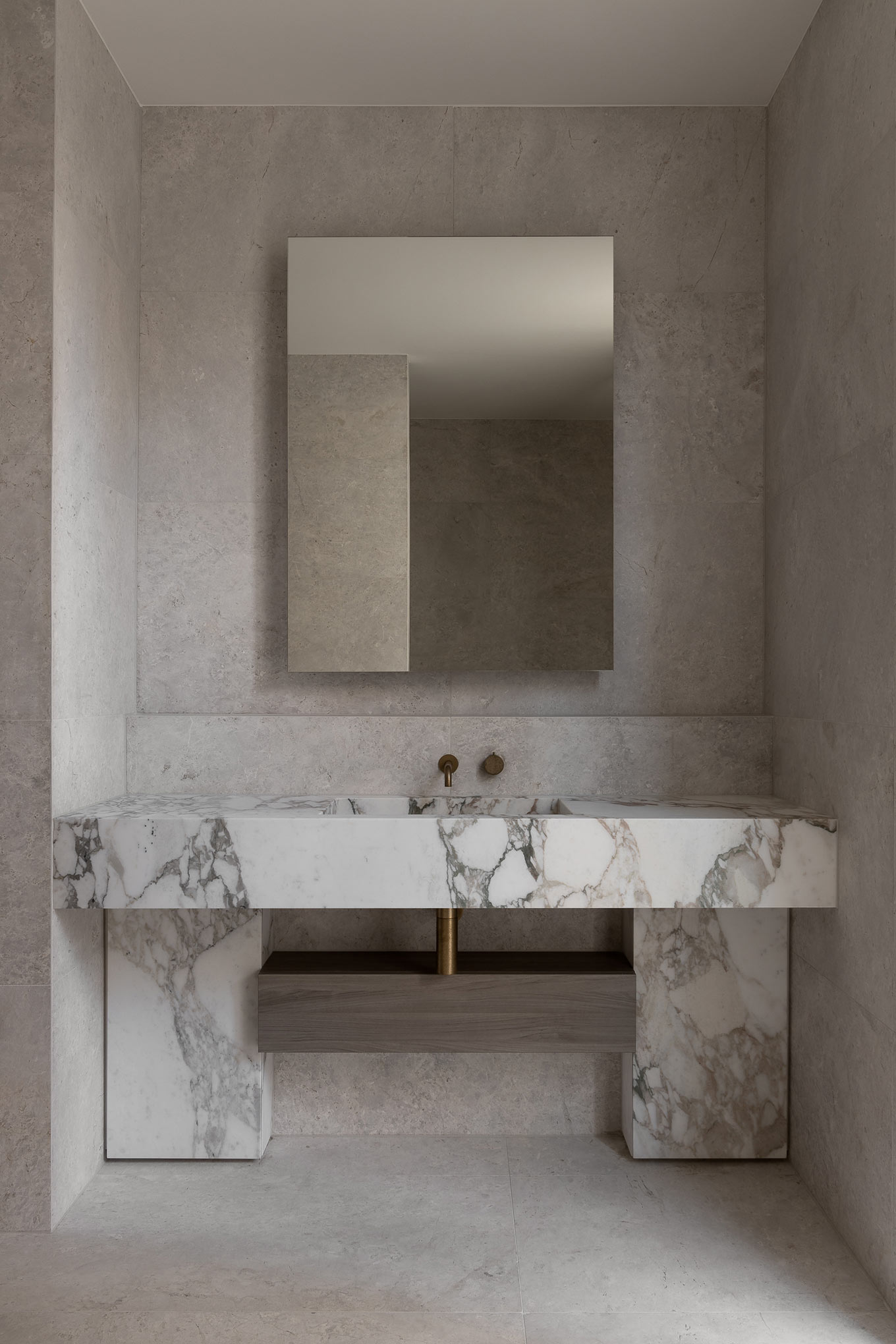 Split across four levels to navigate the expansive, sloping site, the layout is oriented by a central axis and vertical stairwell, establishing an intuitive and rhythmic journey throughout. The ambition to celebrate the journey through the home became a driving principle, guiding a nuanced approach to the sequencing of spaces.
