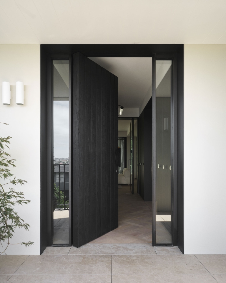 1층 후면에 위치한 주방은 버건디 글래스와 주문제작된 윈도우 프레임을 이용해서 부드러운 곡선으로 표현된다.