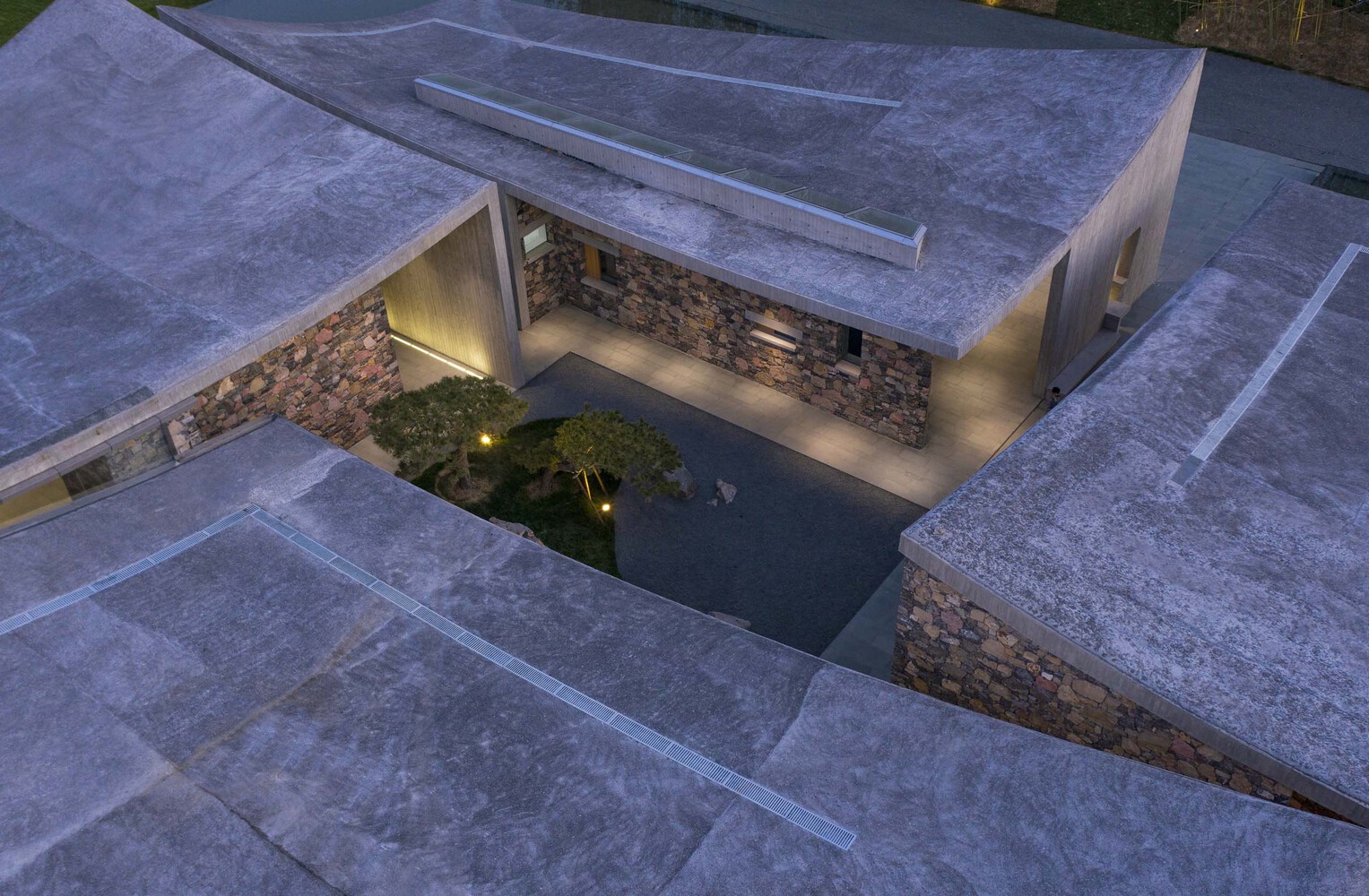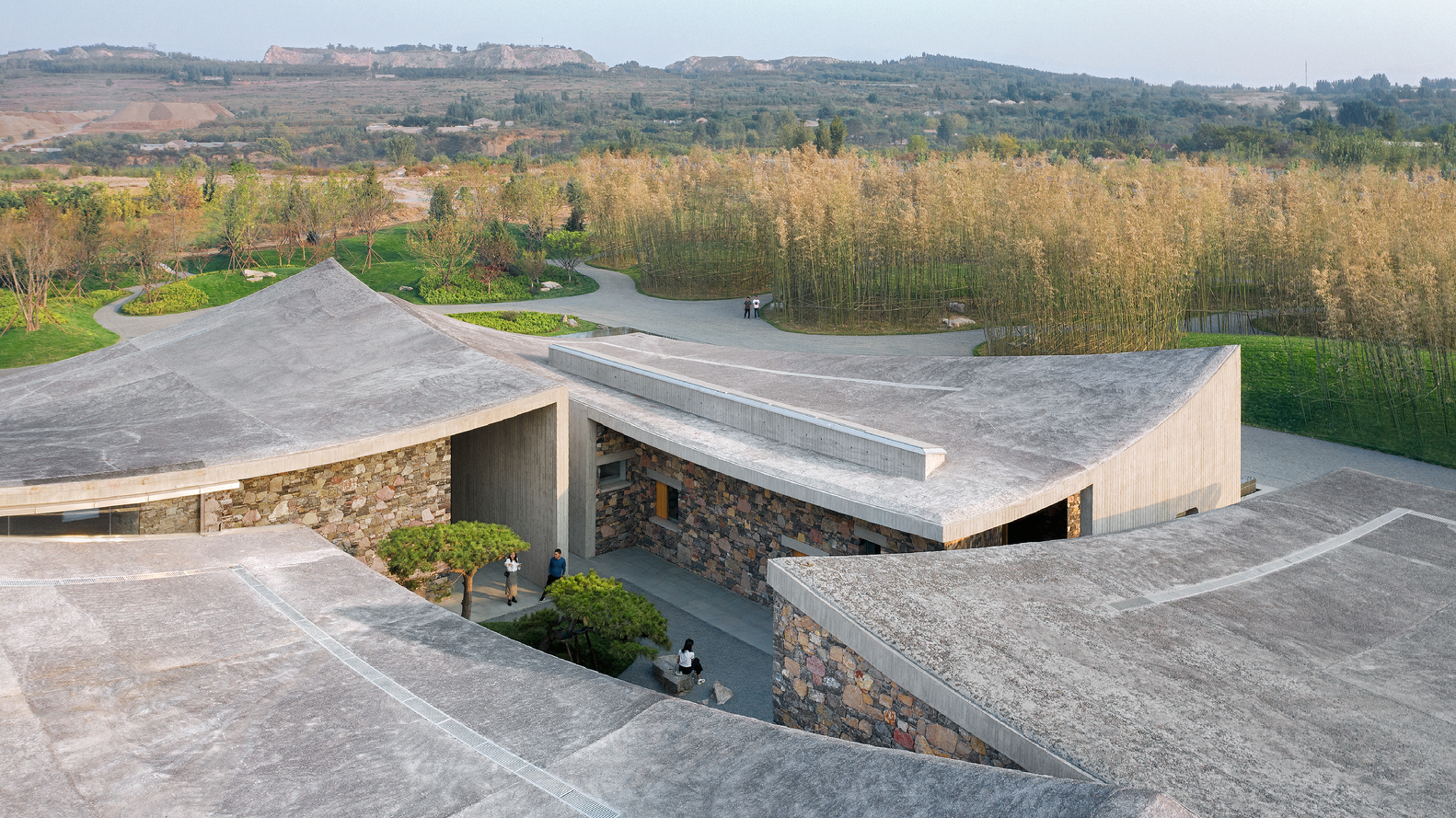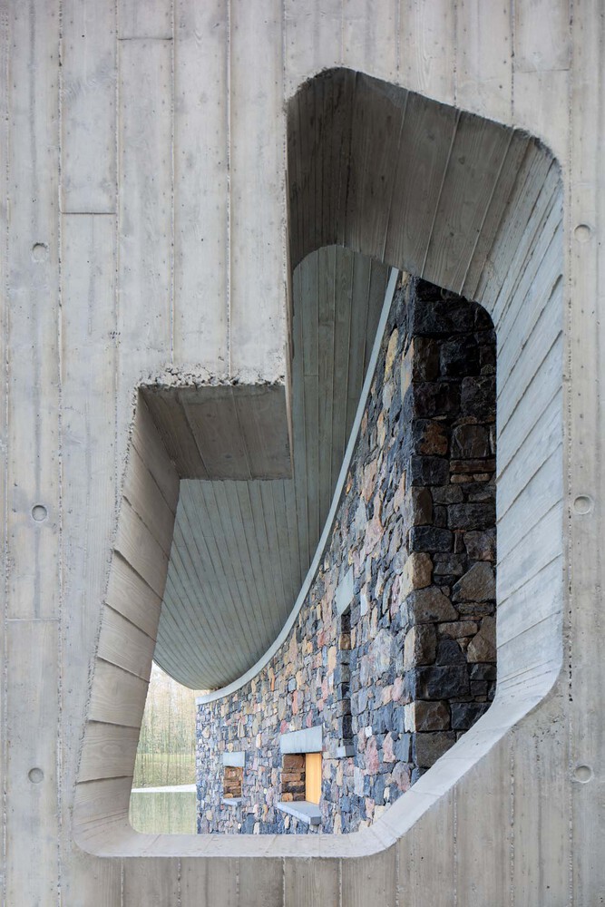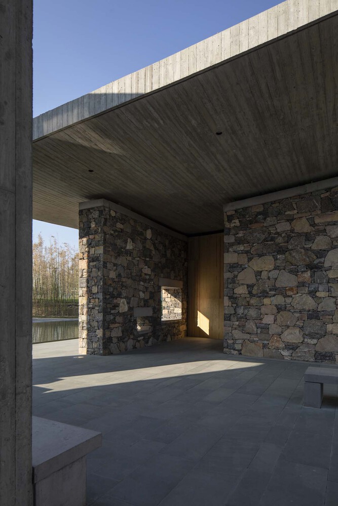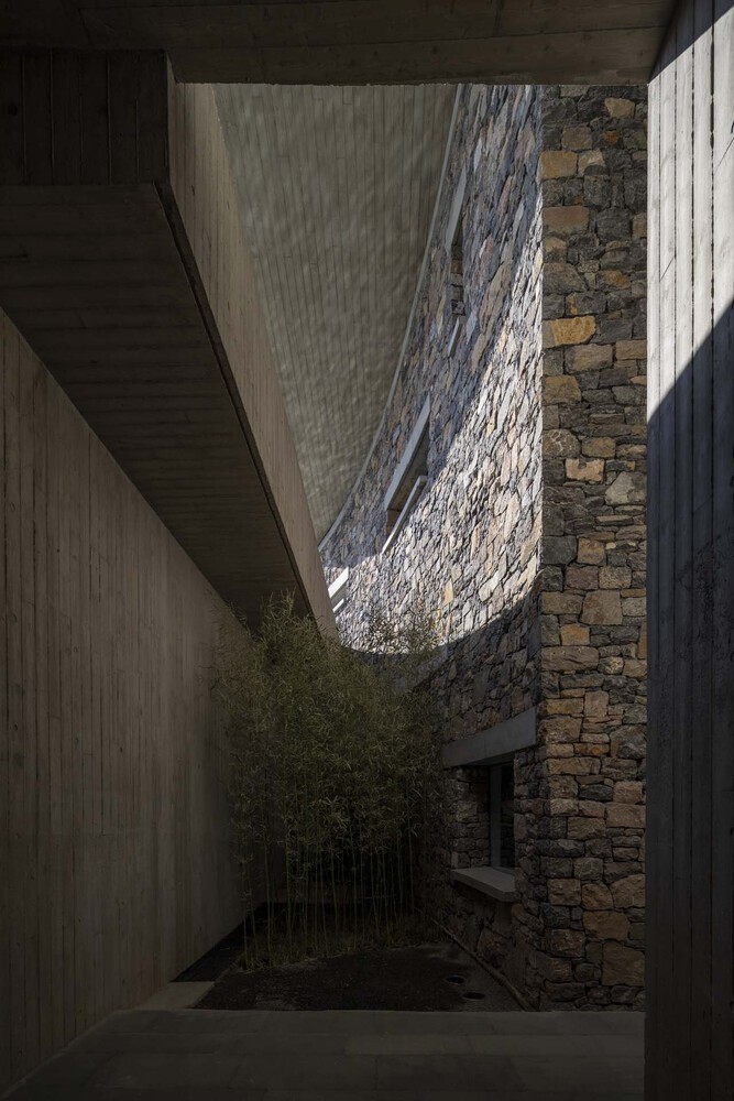 Some places will be tight, and some will be loose, reflecting the sense of movement and strength of the building. The roof is made of rough fair-faced concrete poured on site. The method of laying the walls is based on local rough masonry stone walls commonly used by locals, which is characteristic of northern China, especially in Shandong Province.