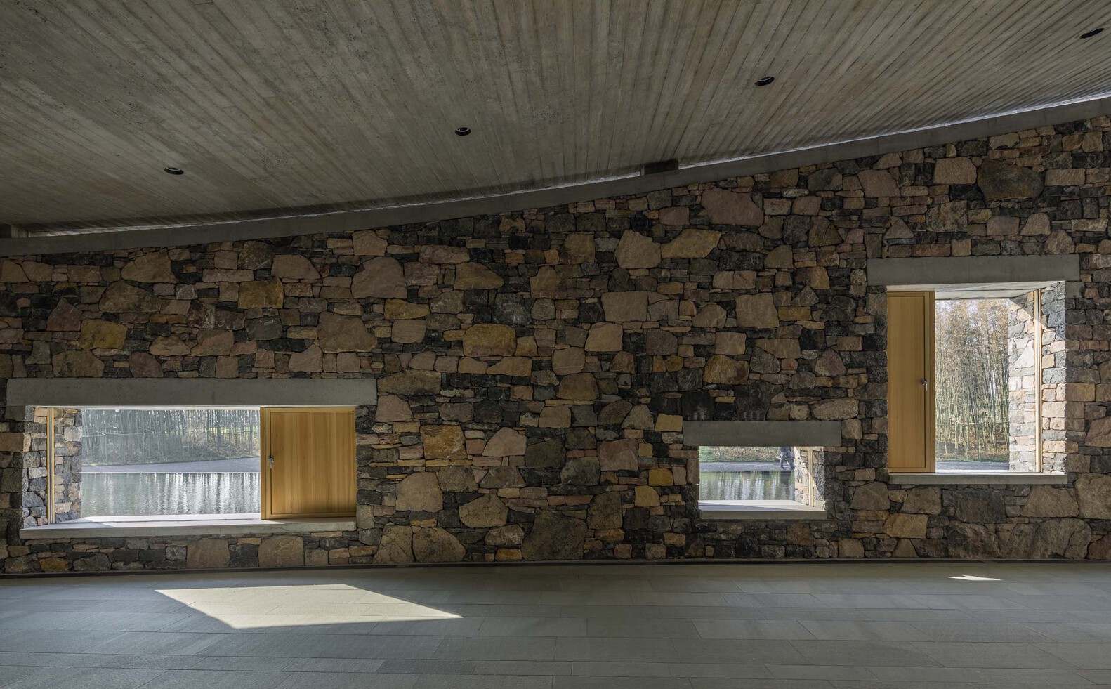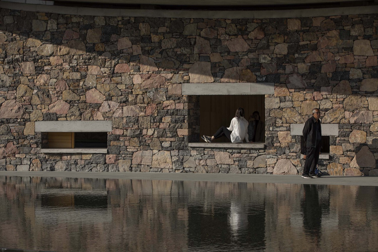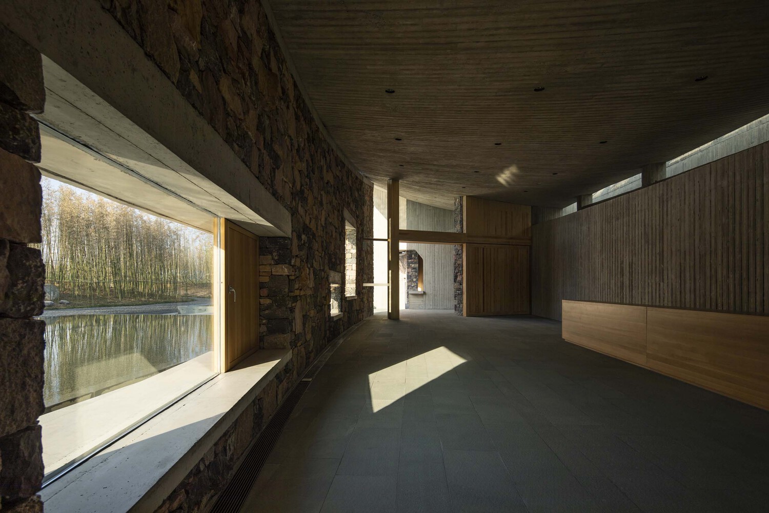 Some places will be tight, and some will be loose, reflecting the sense of movement and strength of the building. The roof is made of rough fair-faced concrete poured on site. The method of laying the walls is based on local rough masonry stone walls commonly used by locals, which is characteristic of northern China, especially in Shandong Province.