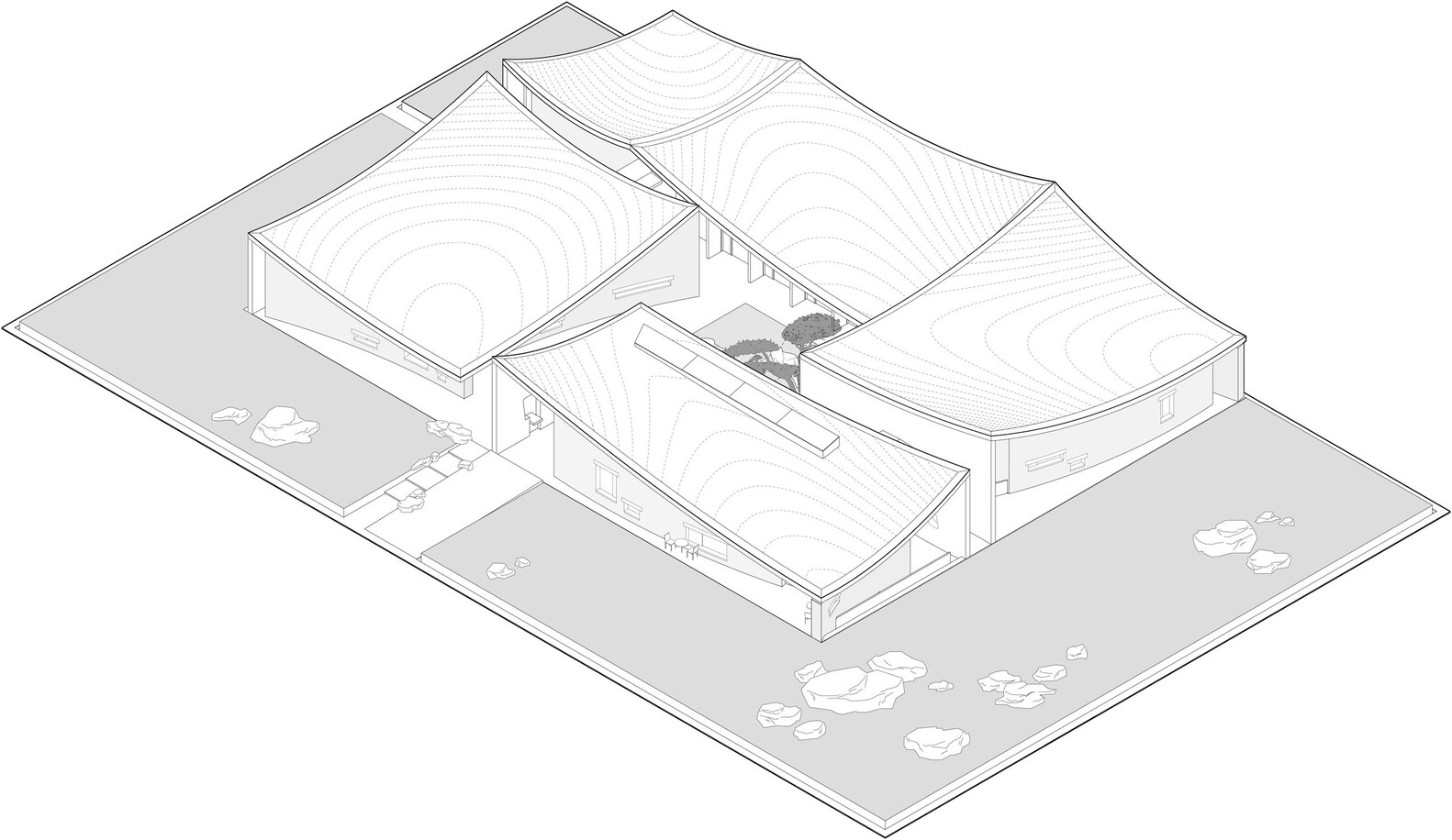 건축물의 독특한 지붕 형태와 보이드는 지역문화를 모티브로 디자인되었으며, 지역기후와 호흡하는 공간으로 제안된다.