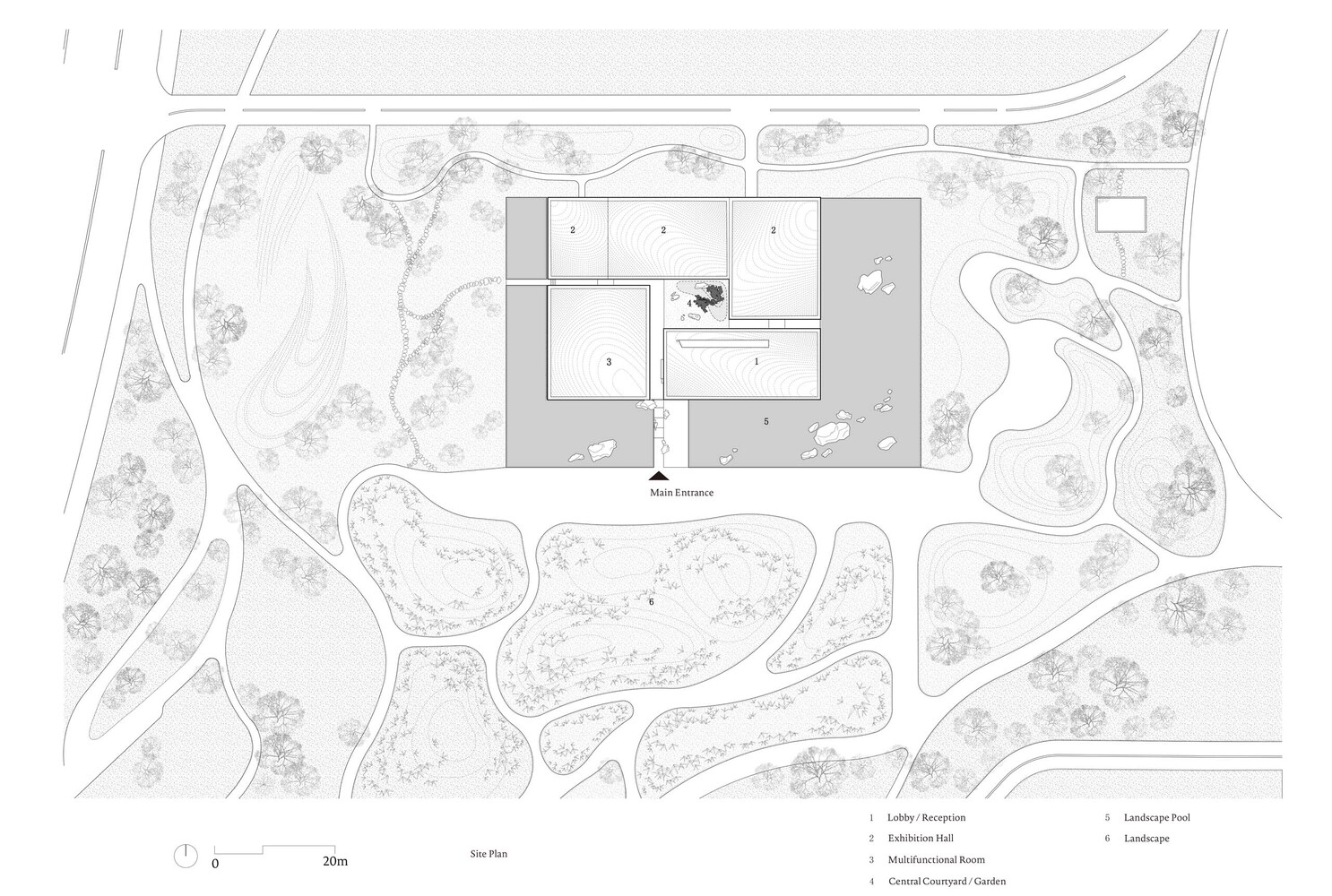 Zibo OCT Art Center, an introverted experimental work, is in an open area far away from the city. Its architectural form is conceived from the traditional Chinese academy-“Heyuan”, a central courtyard surrounded by several houses.