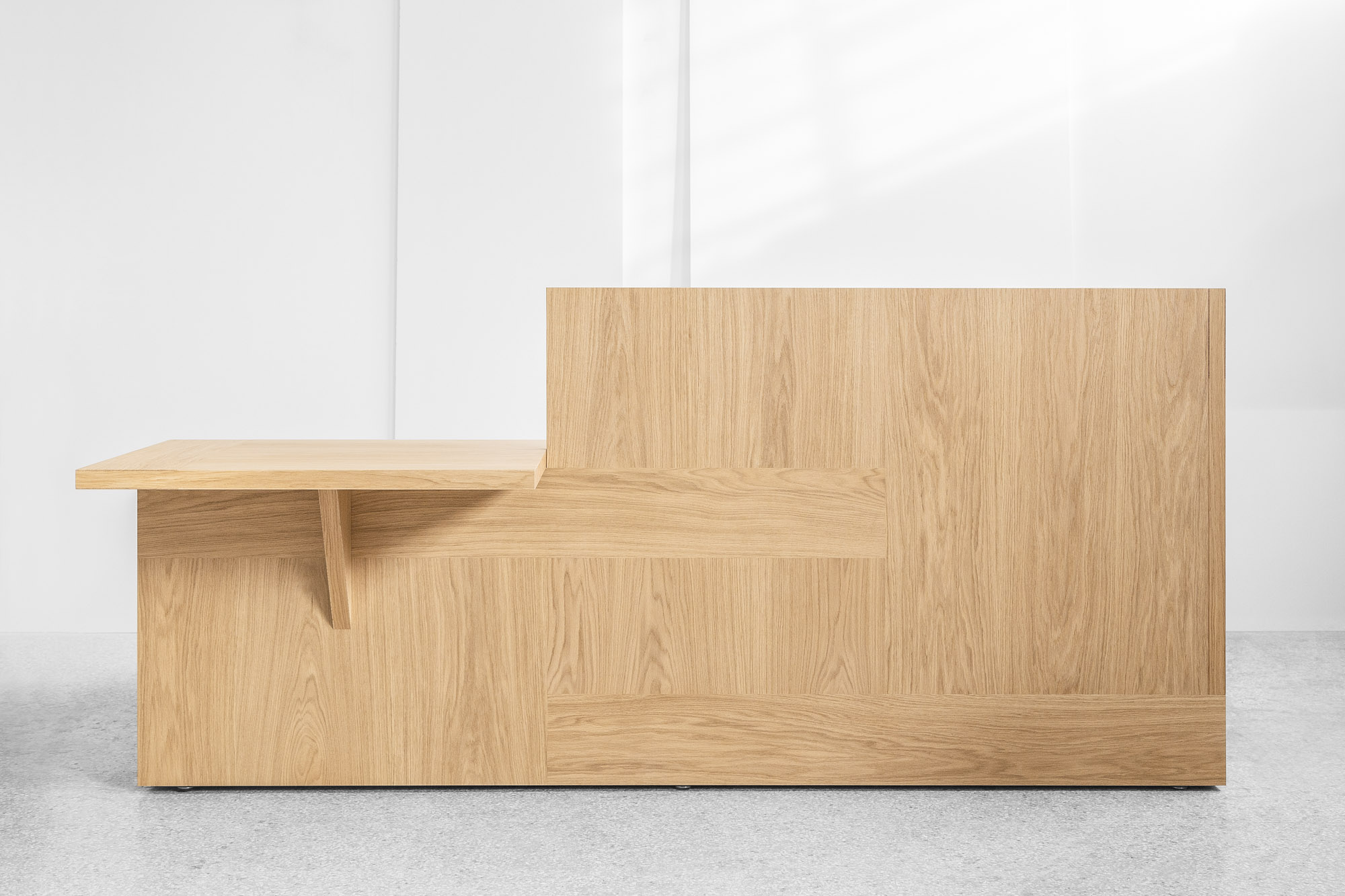 사각형태의 플랫폼과 두개의 측면 판재로 구성된 나무박스는 매트리스를 담는 바탕으로 제공된다.
