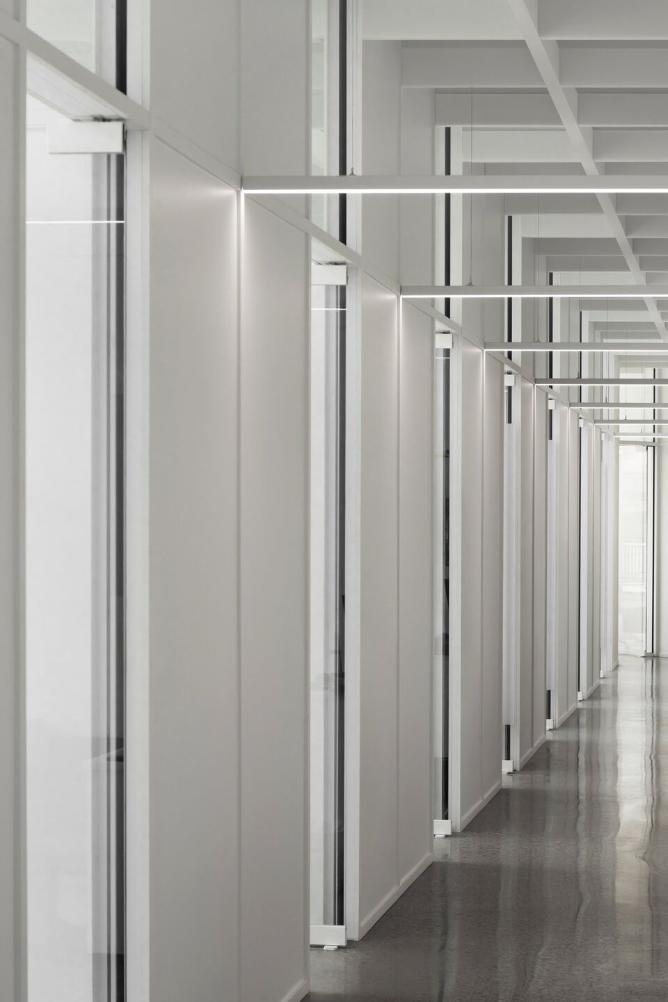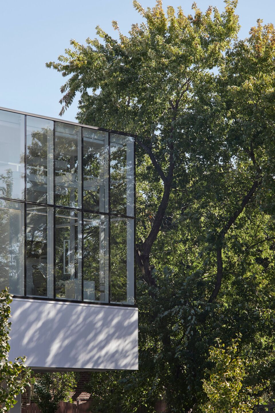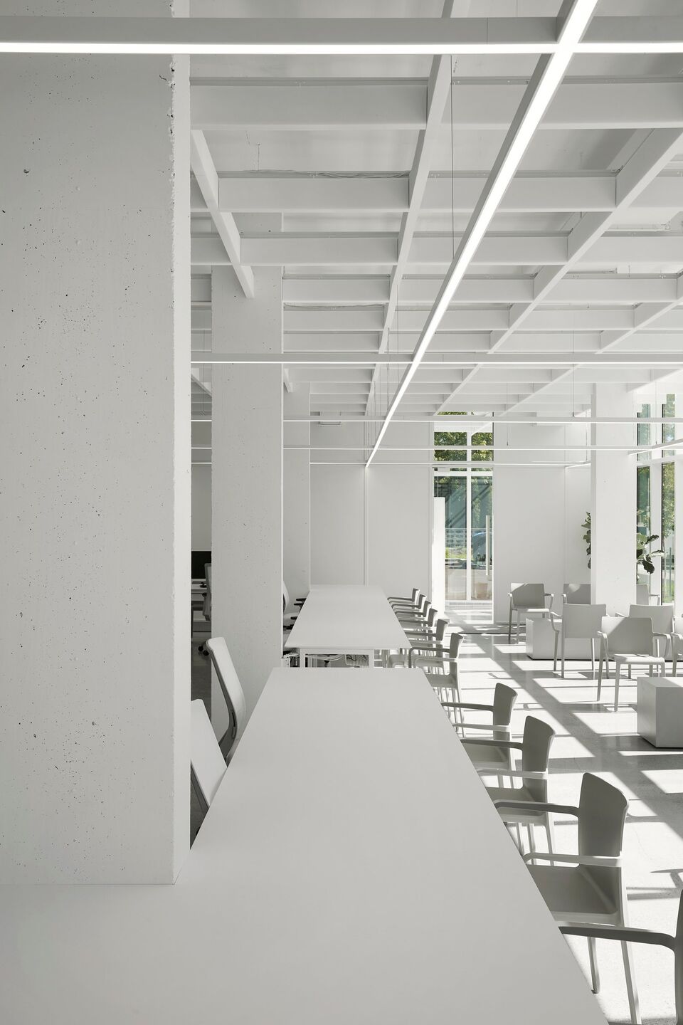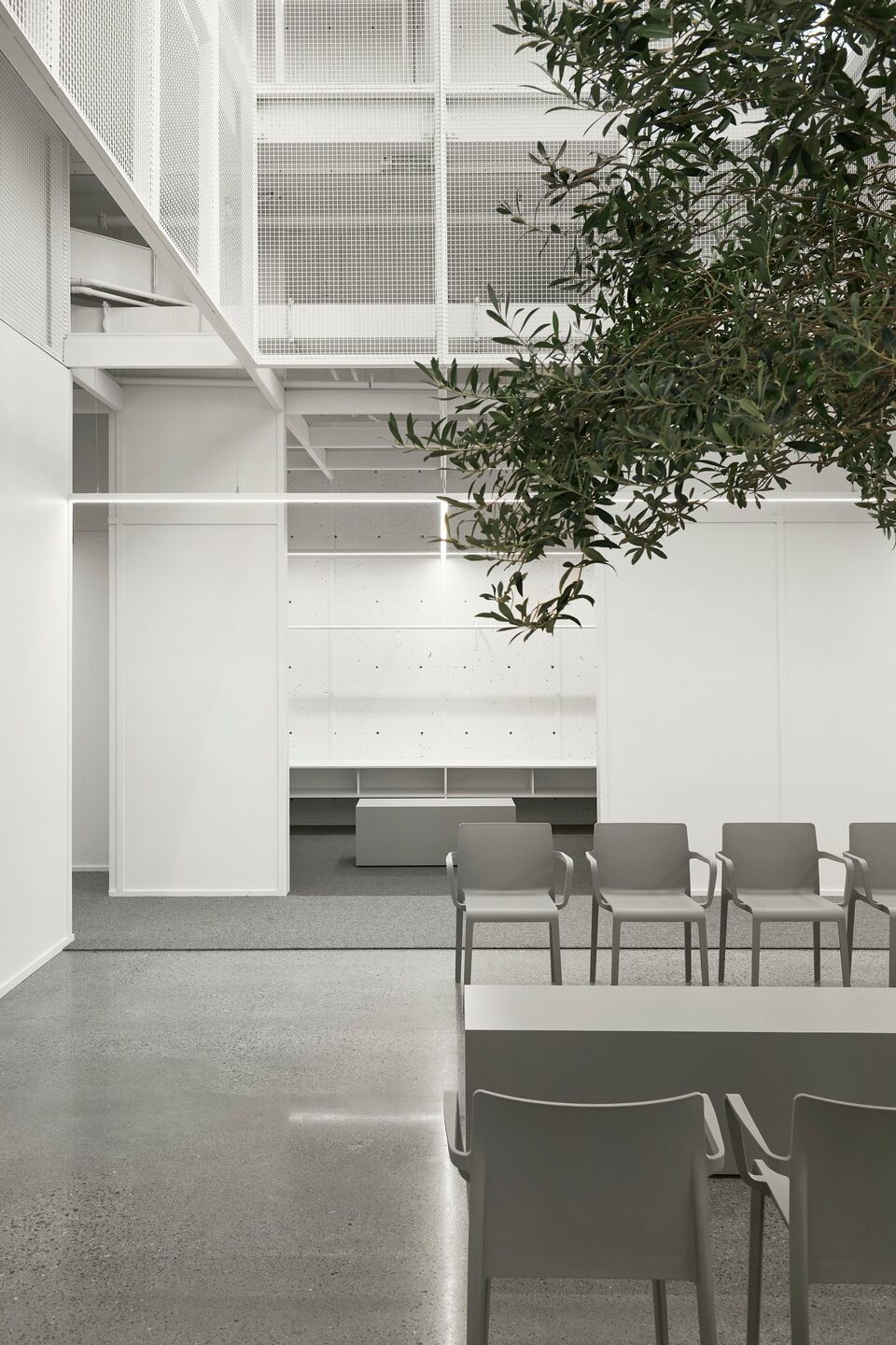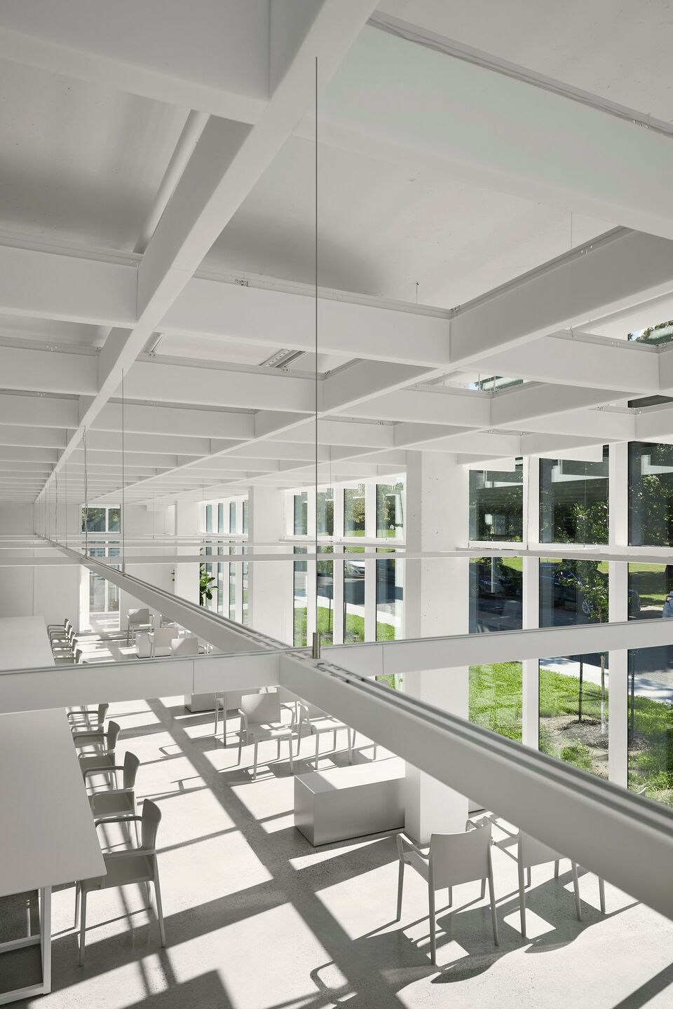 With natural elements being recognized as factors that reduce psychophysiological stress, the architectural proposal maximizes sunshine, luminosity, and the presence of vegetation. Covered in curtain walls, featuring ultra clear glass surfaces with high-performance low-emissivity film, the clinic is bathed in an enveloping light that provides a soothing atmosphere. Transparency creates visual permeability on both the green and urban environment, with seasonal changes and weather moods, as well as pedestrian flows, providing benefits for both clients and the entire clinic team. In correlation, a permanent connection with the exterior also provides an openness on the professional activities and interactions taking place inside of the clinic.