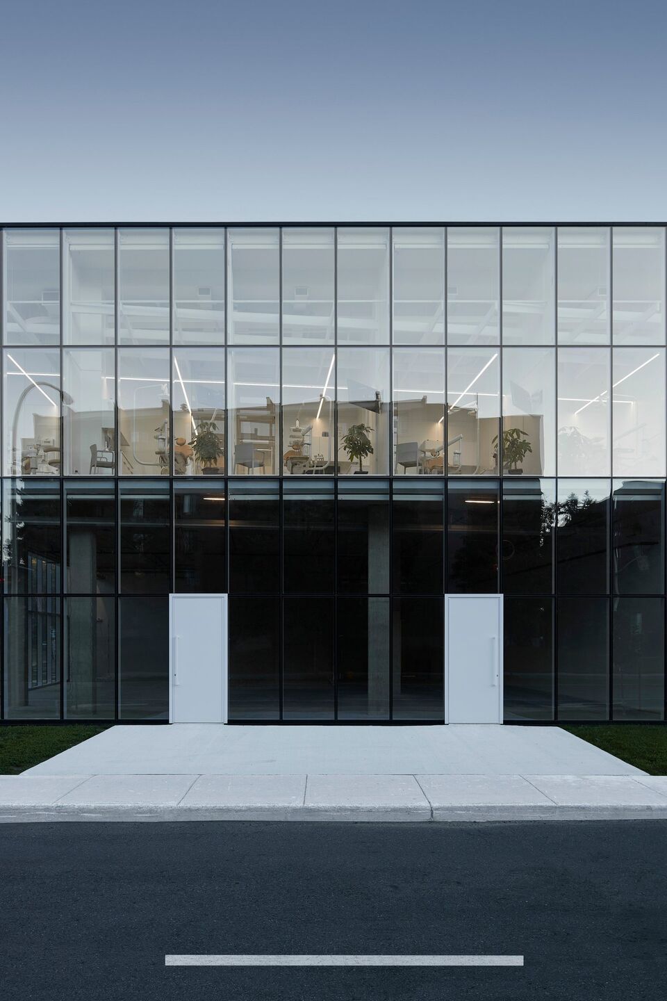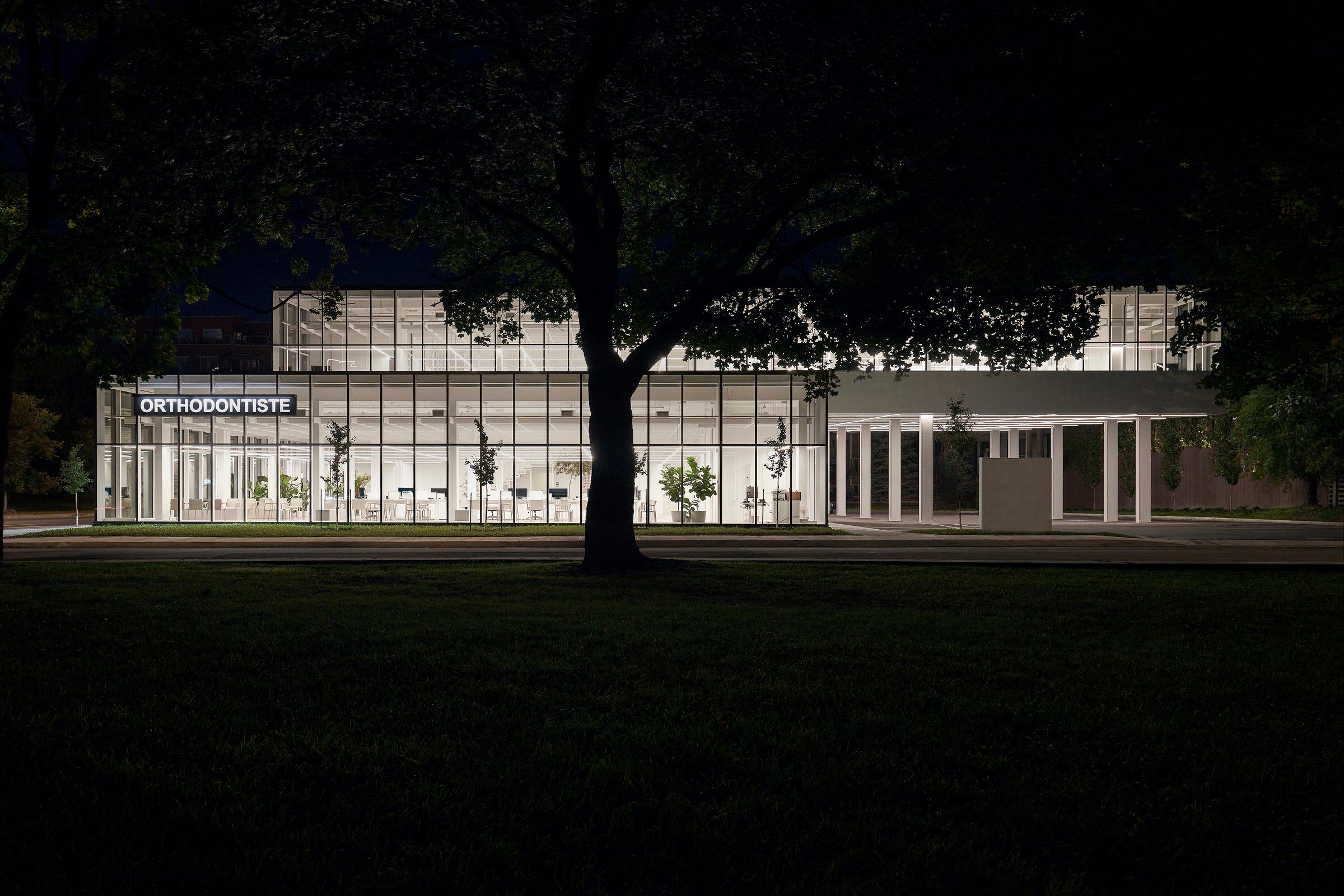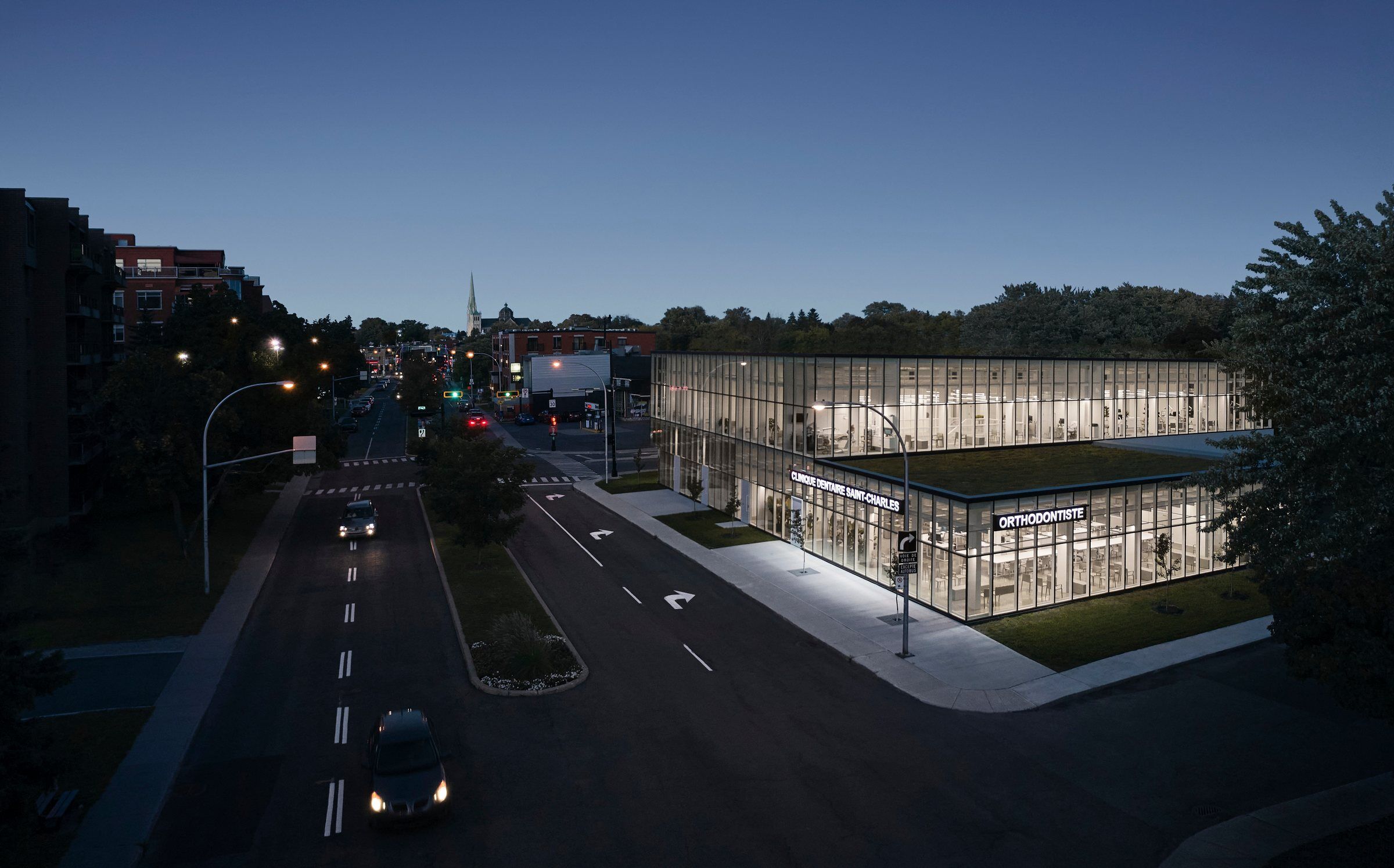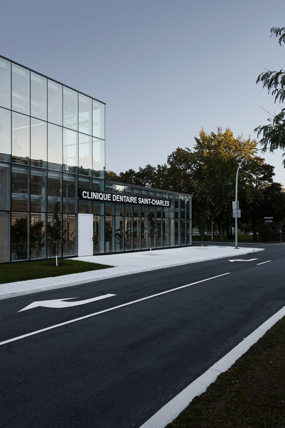 At the entrance to Vieux Longueuil, situated between its residential and commercial areas, on a piece of land left uncultivated for many years, Studio Jean Verville architects has erected a 2,600 square meter dental complex based on the concept of biophilia.