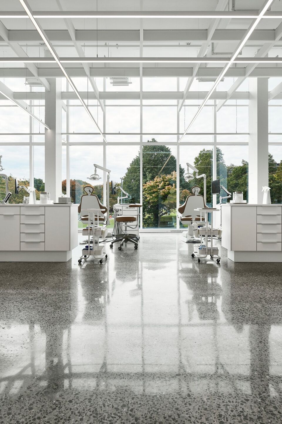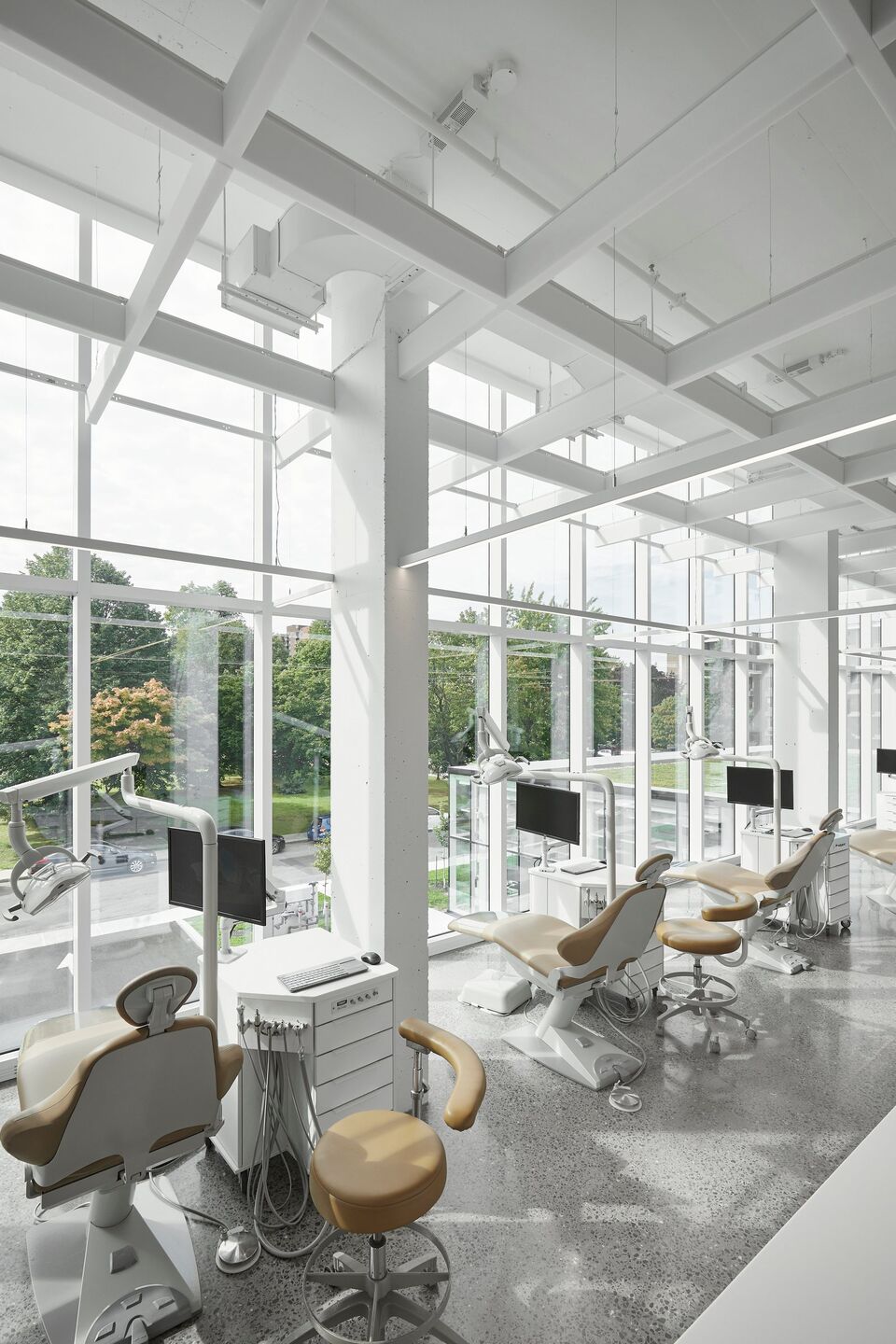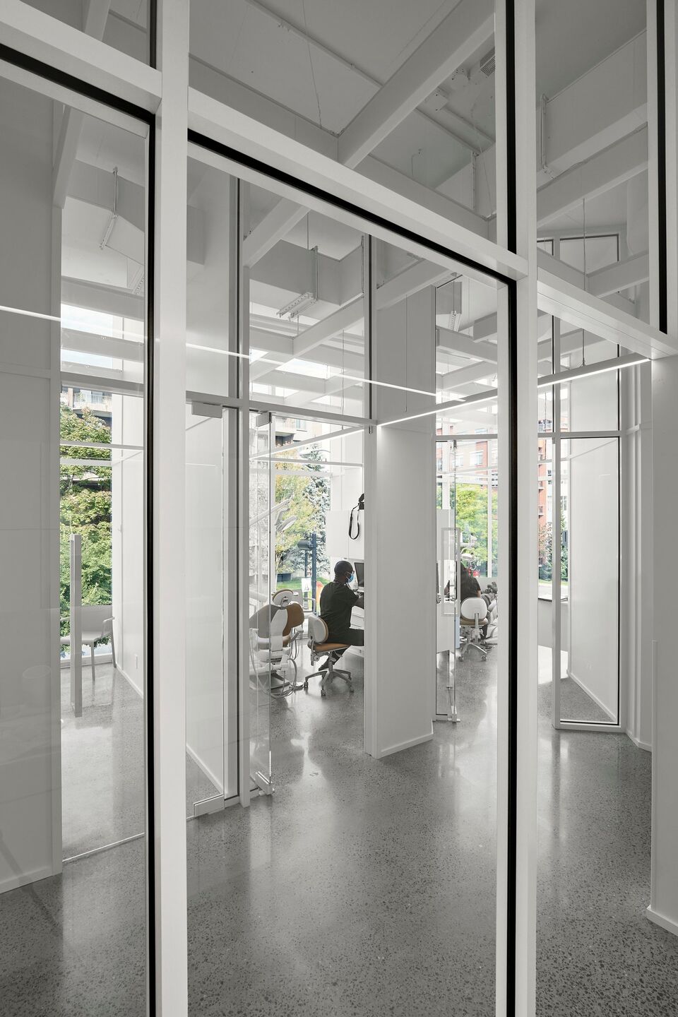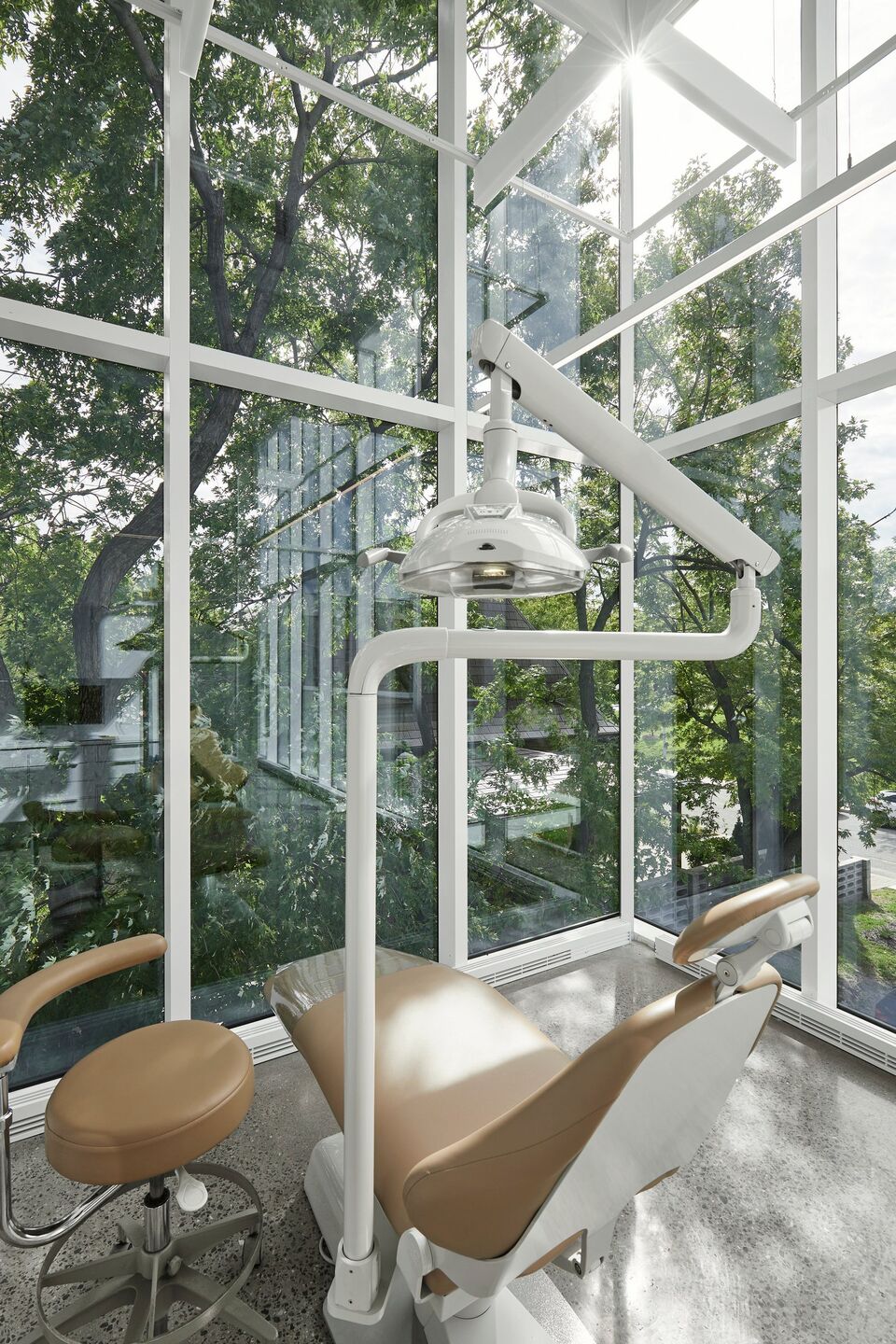 Responding to the needs of Dr. Anh Tuan Nguyen and his team - mainly to have a light and airy clinic - while also respecting the philosophy of 'minimal means for maximum effects', the Studio favoured a simple intervention based on the ingenious use of materials and meticulously executed construction methods. Clinique dentaire St Charles presents an architecture that highlights the green spaces and activities of adjacent Catherine-Primot Park, as well as the urban vitality of this coveted sector of the City of Longueuil.