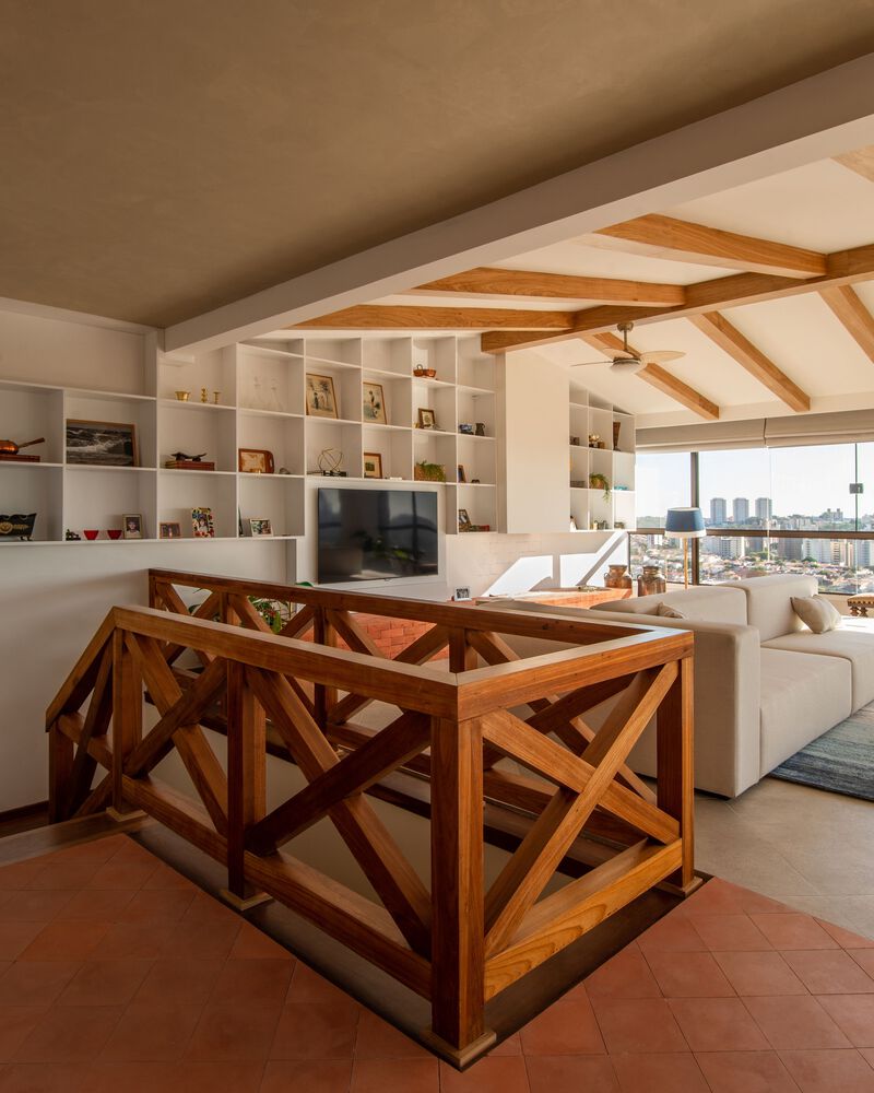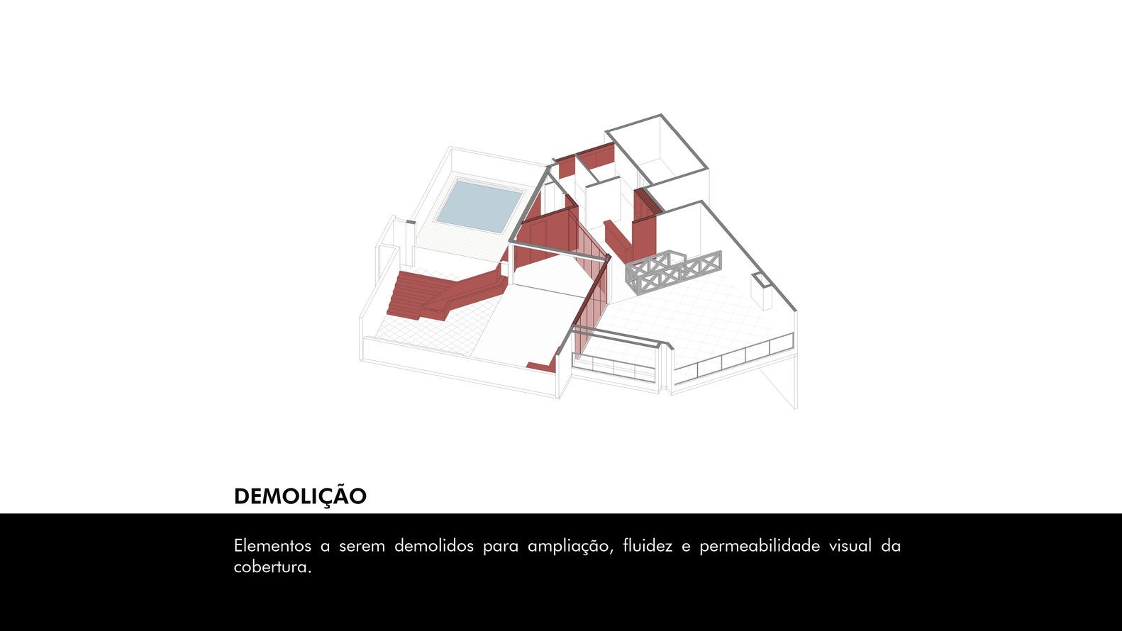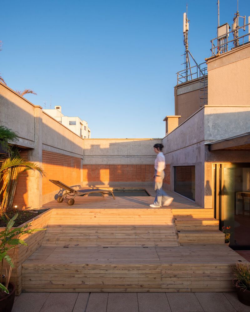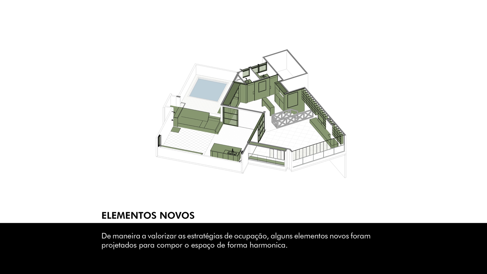 For internal use, a reading area was proposed in a carpentry niche, with a viewfinder for the pool, creating a visual permeability from the internal area to the external area, which was originally physically and visually disconnected. The result of the refurbishment was the enhancement of the 160m² roof floor with a panoramic view of the city skyline and completely changed its use and access by the family. The new possibilities of use, together with the space for valuing the family's memory, create an environment of warmth and intimacy.