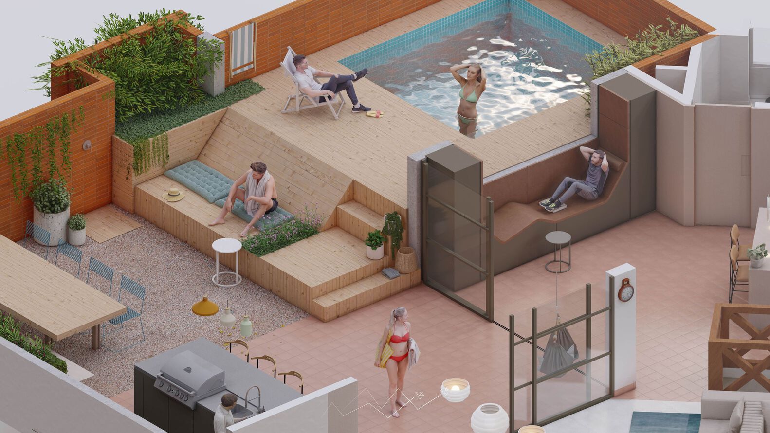 루프탑 리노베이션 프로젝트는 건물의 잠재력을 최대한 끌어 낼 수 있는 효과적인 방법을 위해 기획된다. 이를 위한 키워드로 기능, 미학 그리고 새로운 조건을 만족시키는 업데이트 요소를 적용한다. 생활을 위한 공간과 여가를 위한 공간을 하나의 연속된 지붕으로 연결, 고유한 캐릭터를 갖는 루프탑으로 설정한다.