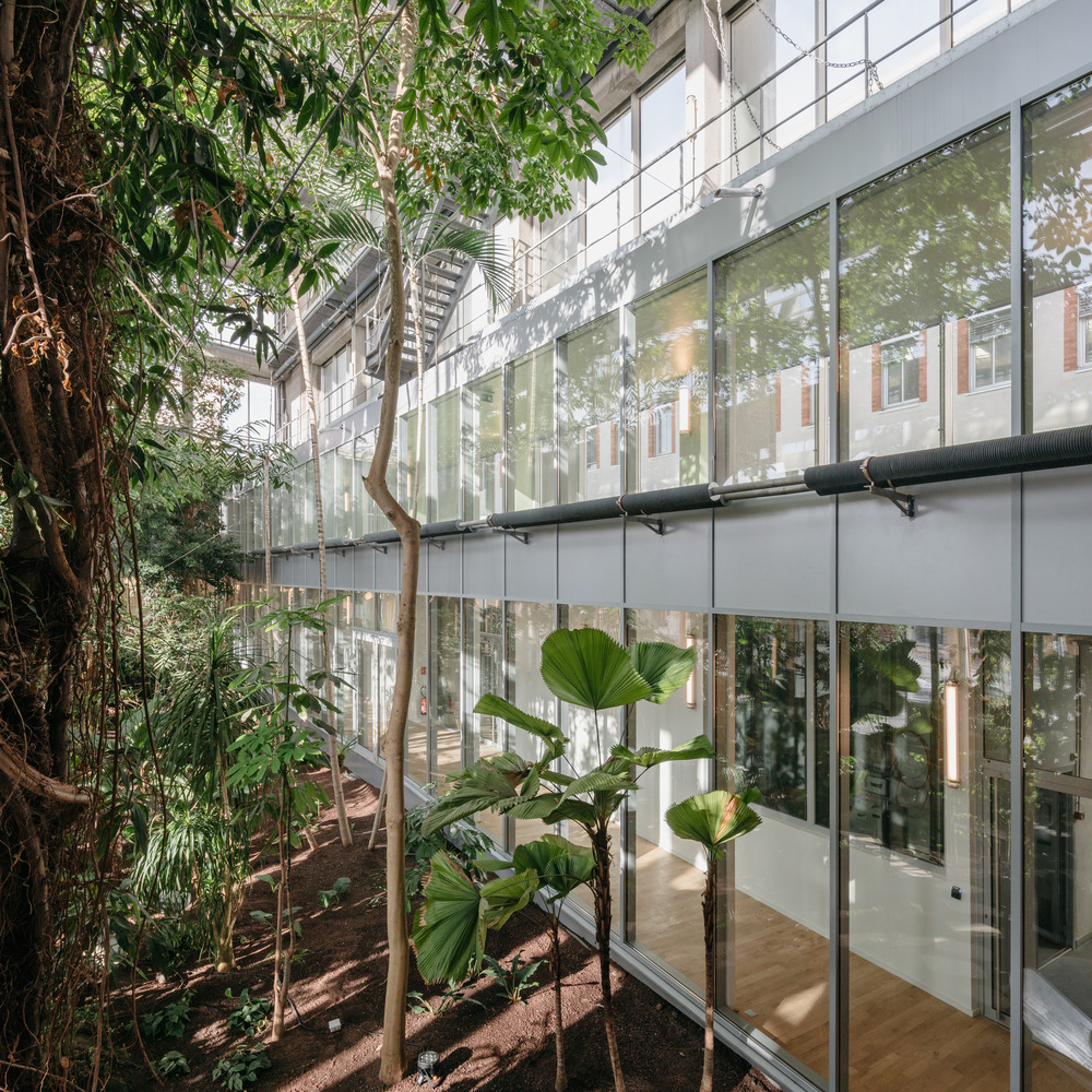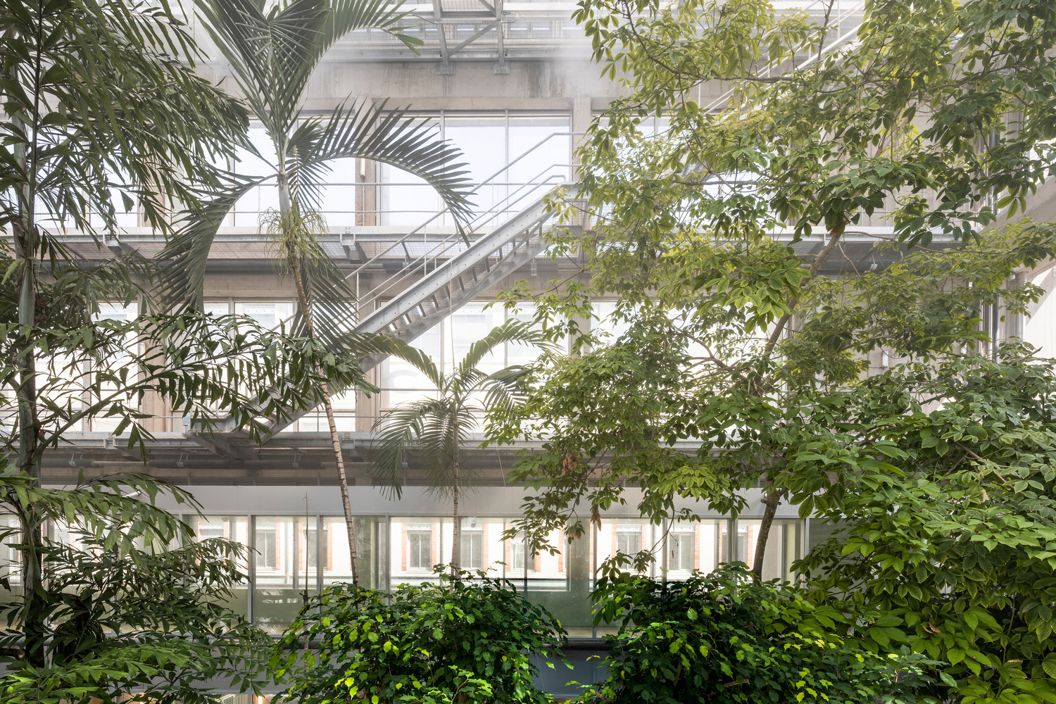A multi faceted and inventive program. The main challenge the project addressed was that of connecting heterogeneous spaces between themselves in a consistent union intended to receive thousands of visitors daily. The tropical glasshouse, initiated by Edouard Michelin on the plaza in the early 2000s, held an uncertain future; it was preserved in the architectural program and integrated into the visitor’s experience. The glasshouse features the logo, acting as a symbol of the group’s values of transparency and openness towards the city and the world.