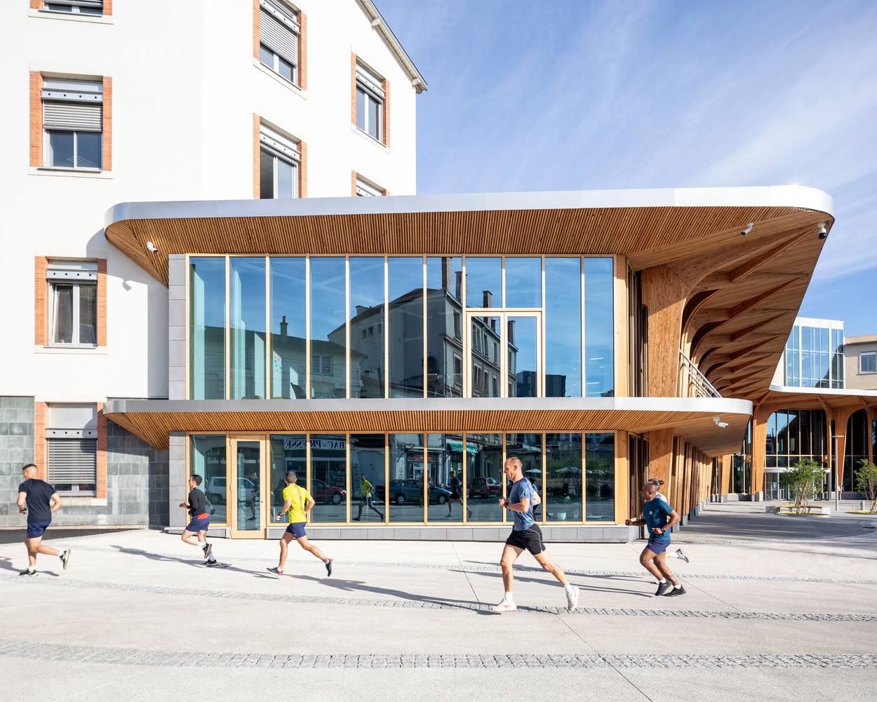 A new identity. In order to respond to Michelin’s wish of renewing itself without erasing its past, the project’s committed position is to offer an extension of the current headquarters over two levels. The extension is provided with an energetic new façade that seeks to appreciate its historic structure. The new project connects the current buildings, while simultaneously embodying a reception area and the group’s main entrance. It also acts as a permeable interface between the company’s private spaces and the public square, the latter of which was also renovated in a development plan conducted by the city and Michelin Group. From outline to delivery, the conception of the architectural program, and of the project’s design, unfolded within the remit of an architectural consulting period. This method of continuous presence and on-site follow up allowed for a greater understanding of the group’s identity while introducing a mindful practice that recognized the residents’ needs and adapted the program accordingly.