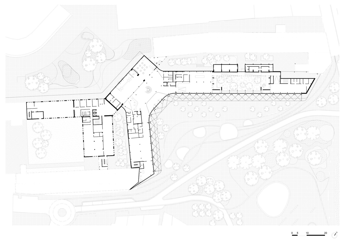 현대적인 디자인의 새로운 해석으로 제안된다. 리셉션 빌딩과 광장 사이에 위치한 캐노피가 두개의 서로 다른 공간을 연결한다. 그리고 이 캐노피는 두가지 중요한 지점을 목표로 한다. 투명성과 접근성 그리고 저탄소 건축을 지향한다. 정면의 글래스 파사드와 나무를 이용한 캐노피 디자인은 헤드쿼터의 지속가능한 디자인 방향을 보여주는 역활을 수행한다.