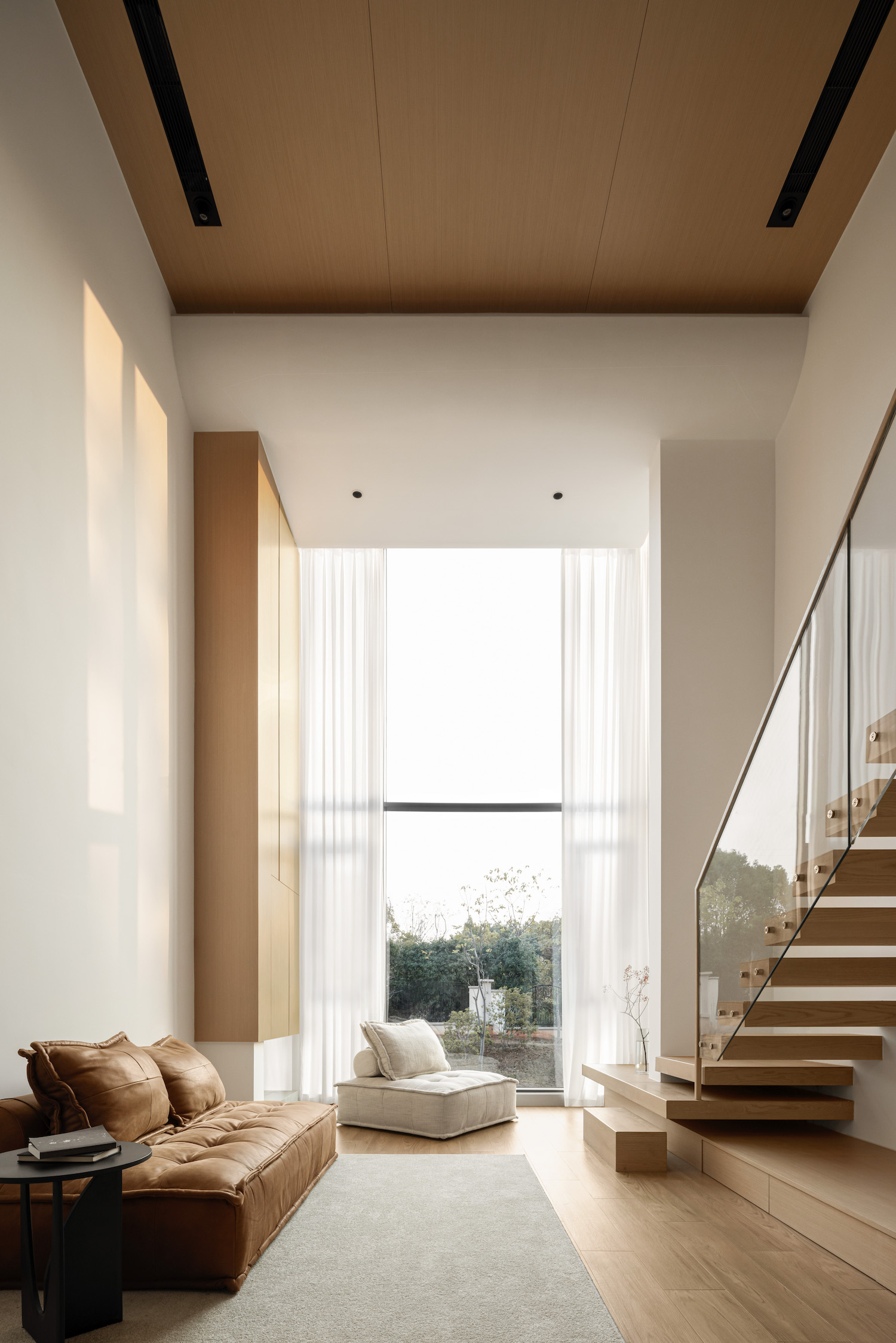Triplex Villa is a minimal home located in Hunan, China, designed by Jingyu Space Research Laboratory. One of the key challenges of this project was to effectively utilize the limited space of less than 60 square meters to accommodate the various needs and desired improvements of the homeowners. The male homeowner preferred a transparent and comfortable space, while the female homeowner placed a greater emphasis on living details and desired a more simple and refined, yet not rigid, style. She believed that details greatly impacted the quality of life and saw the home as a place for serious, daily living rather than just a destination. The final design was subtle, relaxed, and warm, with a focus on creating a comfortable, leisurely space that allowed for independent growth for children and family members. The materials used included high quality logs and furniture, resulting in a textured and timeless home. To accommodate the homeowners’ living habits, the design included a central island and a long table, creating a homely atmosphere in the space. When aesthetics, practicality, and adaptability were successfully integrated, the result was a leisurely, comfortable space.