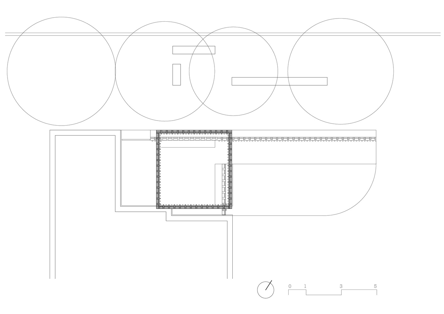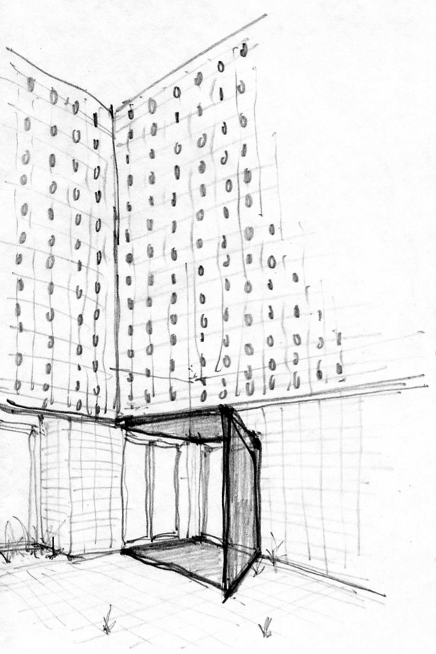 여유와 휴식을 제공하는 도시쉼터로 제공된다. 붉은색 벽돌로 변주된 건축공간은 물리적인 구획으로 바운더리를 만들지만, 시각적으로 열린 공간을 생성한다.
