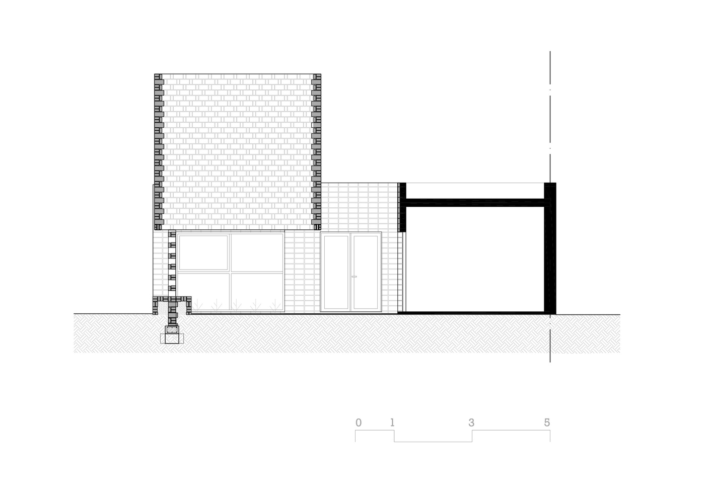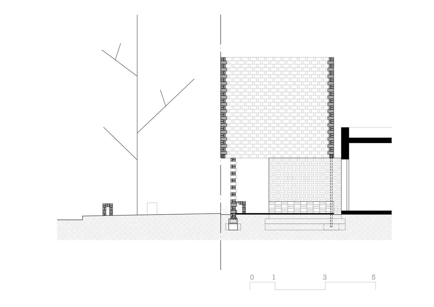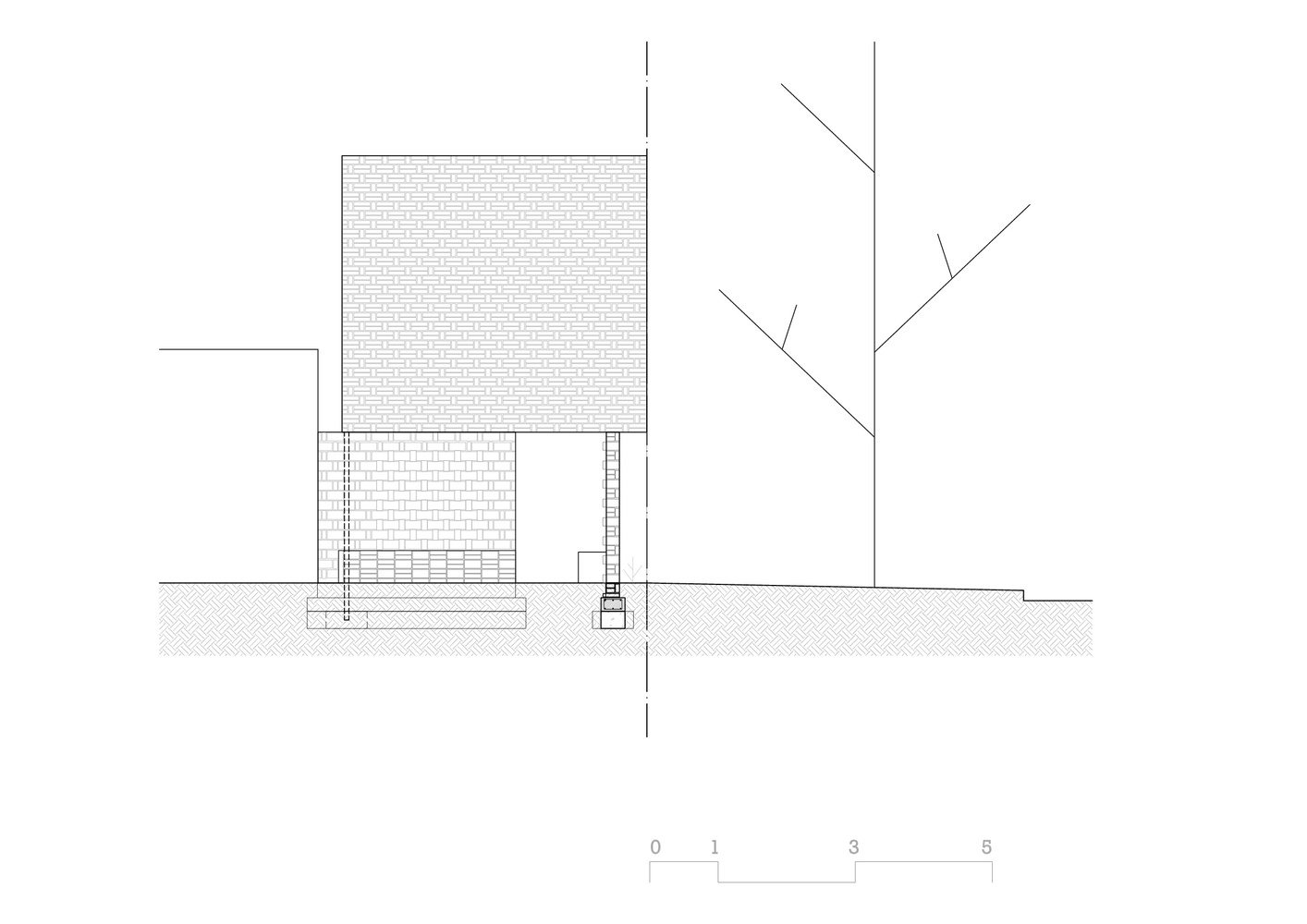 It is a very small intervention at the entry of Casa Velatoria, with the objective to generate a COURTYARD, which in addition to being a space of TRANSITION, forms a PLACE of accompaniment and reflection, in contact with the SKY. A space that provides a certain degree of intimacy to the street and with the intention that each visitor directs their gaze upwards almost inevitably, as when one enters the church. In this case not to see frescos and domes, but to notice the absence, the VOID.