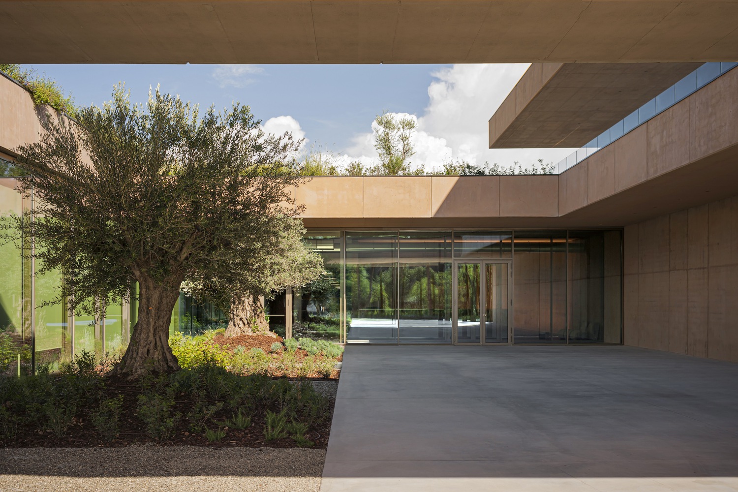 The project concept, defined in the initial phase together with landscape architect Antonio Perazzi, aims to define the conditions for a renewed visual collaboration between architecture and the environment. The characteristics of the site, impacted by the logic of relying on the brick industry and the quarry once functioning on the lot, required restoration work and prompted the idea of interpreting the construction of the production complex as an opportunity to establish positive land management dynamics. "Working with Piuarch is always very stimulating: it is easy to get on the same wavelength straight away, building together a project that respects ecological and aesthetic themes, capable of designing cultured and refined landscapes." Antonio Perazzi, landscape architect.