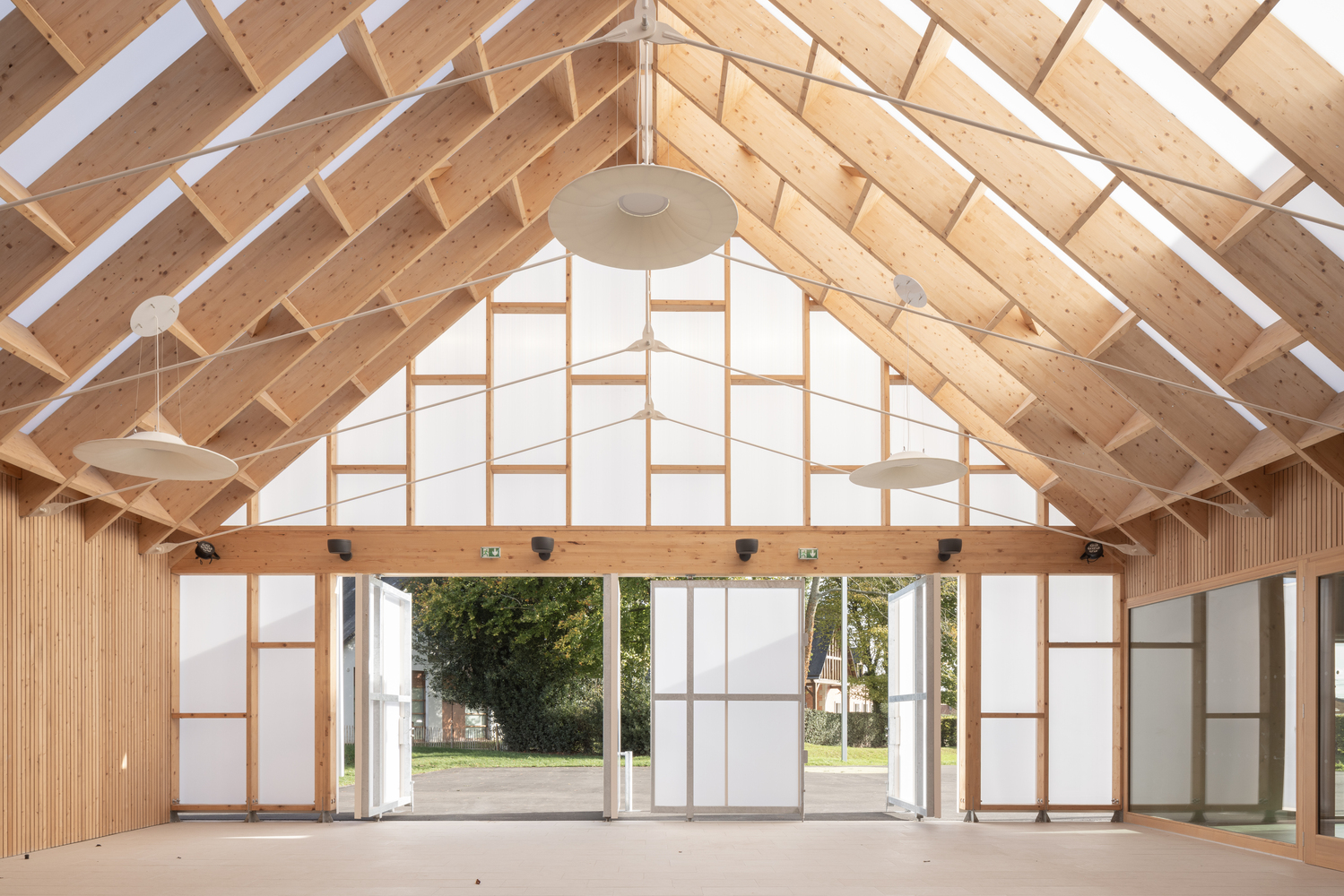The polycarbonate courtyard, placed in the heart of the building is a living and gathering place, offering a lot of different use for teaching to young children. It also has a bioclimatic role, by heating the school passively thanks to the greenhouse effect during winter, and by ventilating naturally the building during summer.